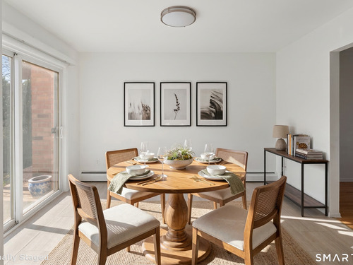 Move into this Beautiful updated townhouse! the living room has hardwood floors, Up dated eat in kitchen with new stainless steel appliances, sliders leading to patio Upstairs 2 good size bedrooms both with hardwood floors. Updated bath. Close to Shopping and highway. Heat and hot water included in common charges All you need to do is bring your furniture and enjoy living in this great unit.