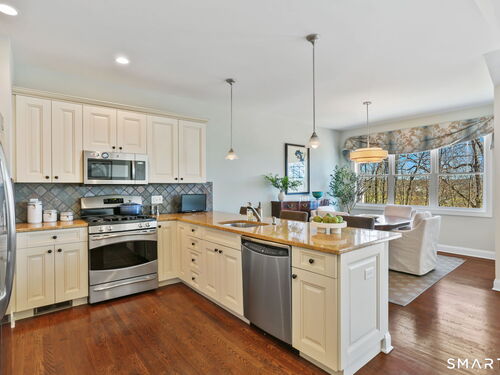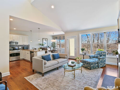 Step inside and feel it immediately - space, light, and just the right amount of understated elegance. This expansive condo offers something rare: the luxury of choice. A primary suite on the main level or upstairs - both equally inviting, both finished with rich hardwood floors, generous walk-in closets, and double-sink vanities designed to make mornings feel effortless instead of rushed. The heart of the home is pure wow. Vaulted ceilings soar above an open-concept living space anchored by a warm, welcoming fireplace. Sunlight pours in, illuminating a fresh, modern palette that feels crisp yet calming. The oversized island - with seating for four - is made for lingering breakfasts, wine with friends, or late-night takeout that somehow tastes better here. And just beyond, seasonal views of the Housatonic River add a quiet, ever-changing backdrop. Downstairs, the finished lower level expands your possibilities - media room, gym, office, guest retreat - complete with a half bath and abundant storage that keeps life beautifully organized. A two-car garage seals the deal, offering convenience without compromise. Spacious. Sophisticated. Effortlessly livable. This isn't just a condo - it's a home that knows how to impress without trying too hard.