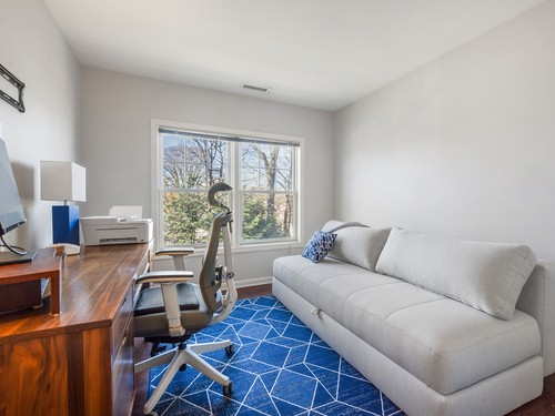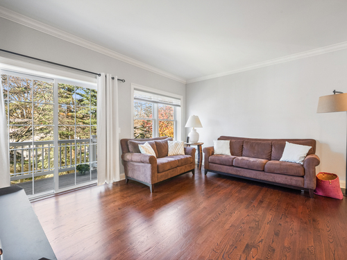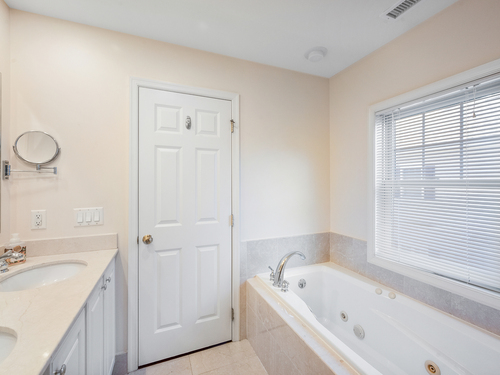 This beautifully designed 2-bedroom townhouse features quality craftsmanship throughout and is privately set at the back of the complex. A spacious foyer with a double closet provides direct access to the oversized two-car garage. The main level is filled with natural light and offers an easy, open flow-complete with a living room that opens to a deck overlooking the grounds. The large dining room, highlighted by a lighted tray ceiling, connects seamlessly to the kitchen with maple cabinetry, granite countertops, and stainless steel appliances. A powder room completes the main floor. Upstairs, the generous primary suite includes a walk-in closet and a luxurious bath with double sinks, marble counters and flooring, a jacuzzi tub, and a separate shower. Laundry is conveniently located on the second floor.