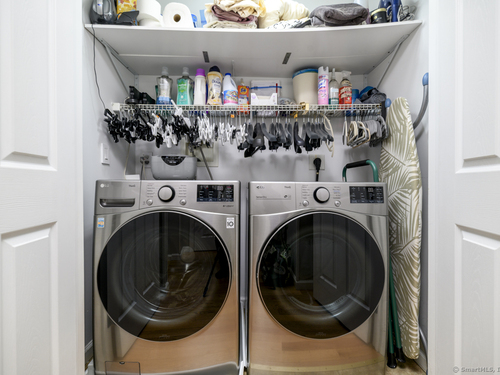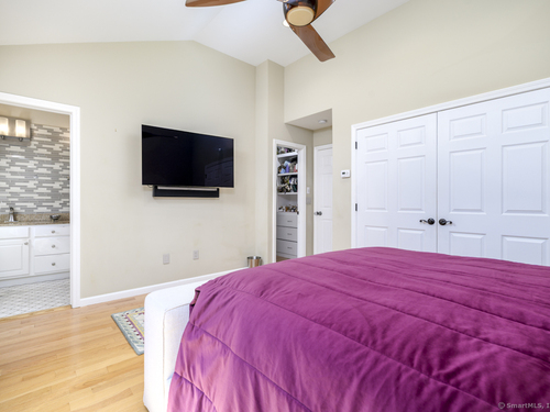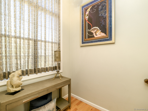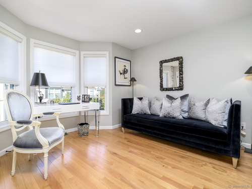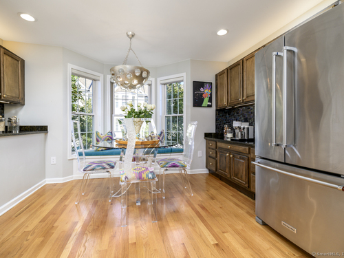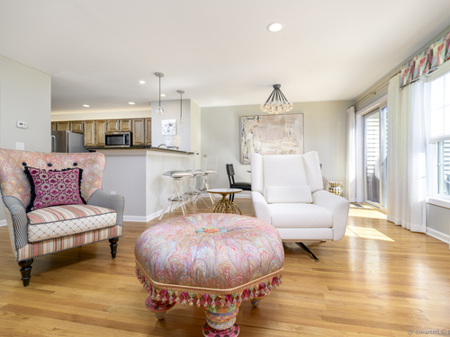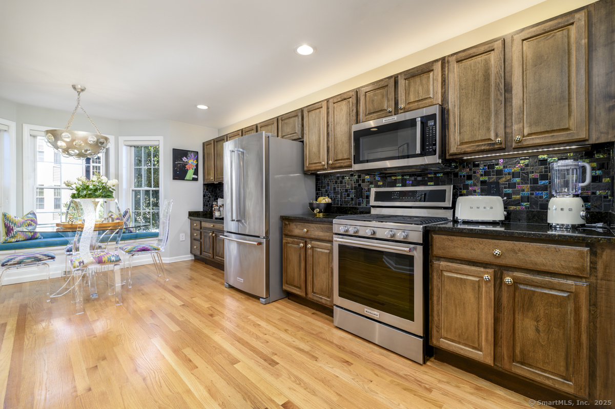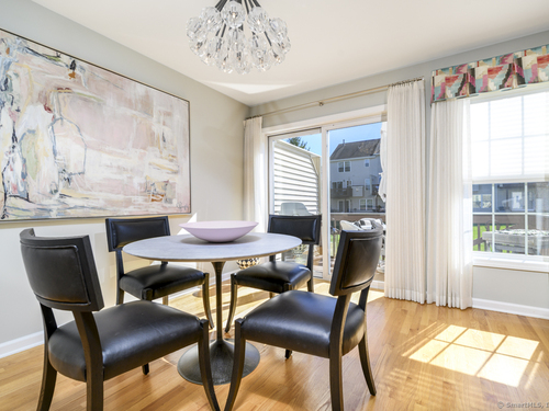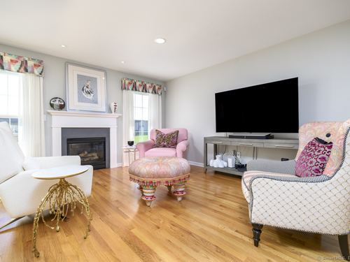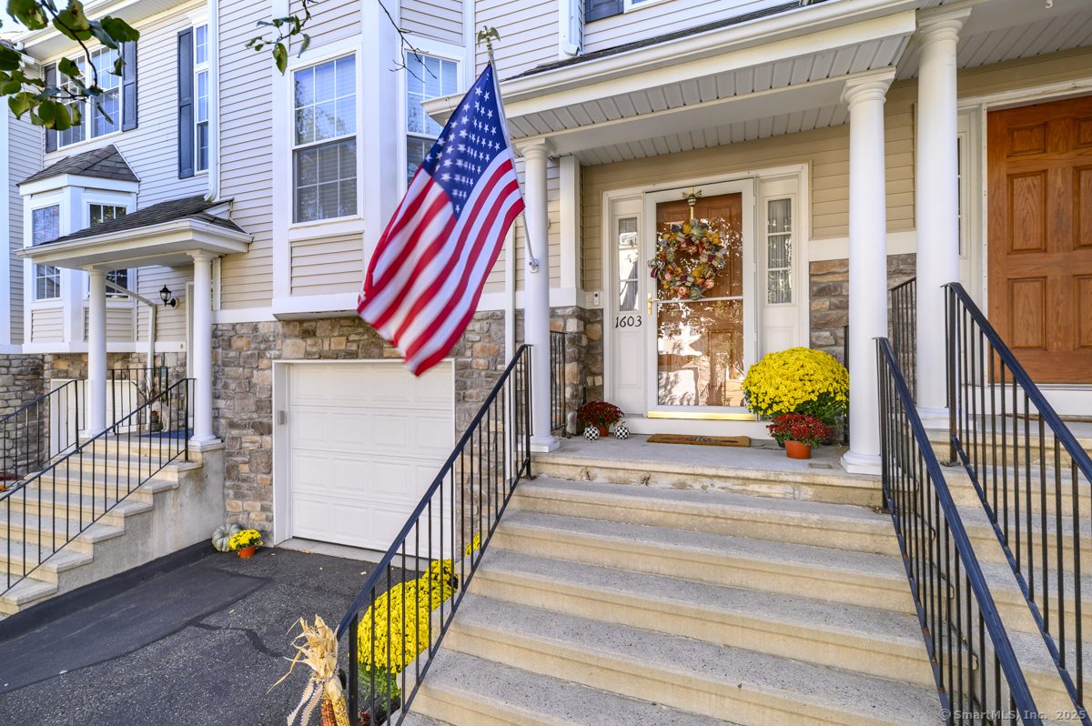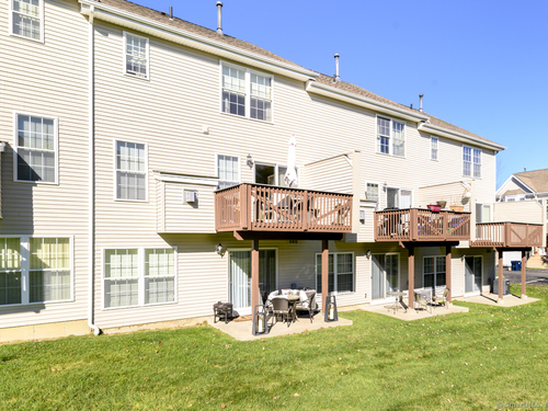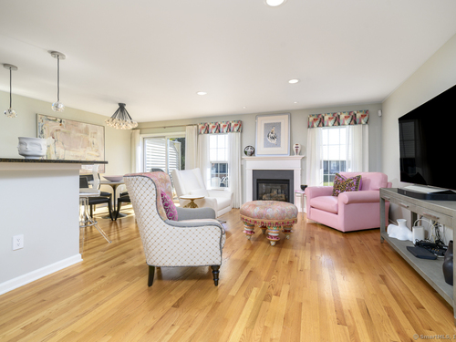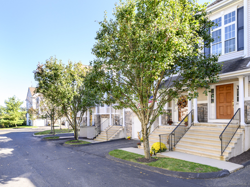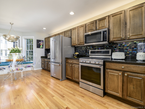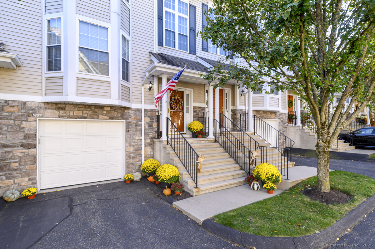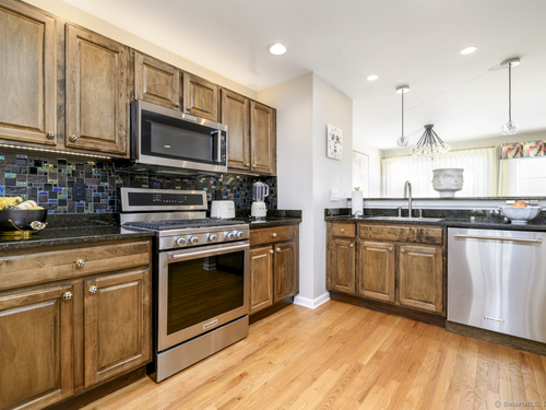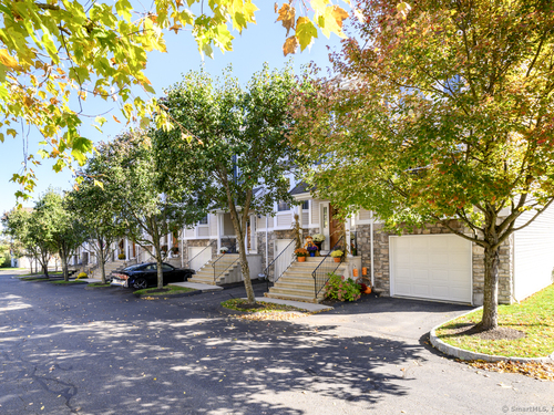 Welcome Home to 1603 Briar Woods Lane - a stunning, move-in ready townhome on Danbury's coveted West Side! Nestled within the beautifully maintained and highly sought-after Briar Woods community, this immaculate 2-bedroom, 2.5-bath tri-level townhouse perfectly combines modern luxury, timeless elegance, and everyday comfort. Step inside to a sun-filled, open-concept main level featuring gleaming hardwood floors, updated recessed lighting and stylish designer bespoke light fixtures. The inviting living room centers around a gas fireplace w/ custom mantle creating a warm and welcoming space for relaxing or entertaining. The chef-inspired kitchen impresses w/ granite countertops, an expanded breakfast bar, stainless steel appliances, stunning tile backsplash, designer cabinet knobs & pulls, abundant cabinetry, and under/over-cabinet lighting for a warm, inviting glow. A triple bow window with custom built-in window bench + storage fills the space w/ natural light while sliding doors from the dining area open to a private deck - perfect for morning coffee or sunset views. The upper level offers two spacious ensuite bedrooms including a primary suite w/ vaulted ceiling, walk-in closet and a luxurious spa-like bath with double vanity and oversized glass step-in shower. The second ensuite bedroom offers its own full bath and generous closet space - ideal for guests or family. Laundry closet with full-size washer and dryer completes this level. The finished walk-out lower