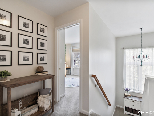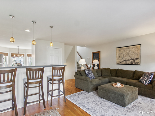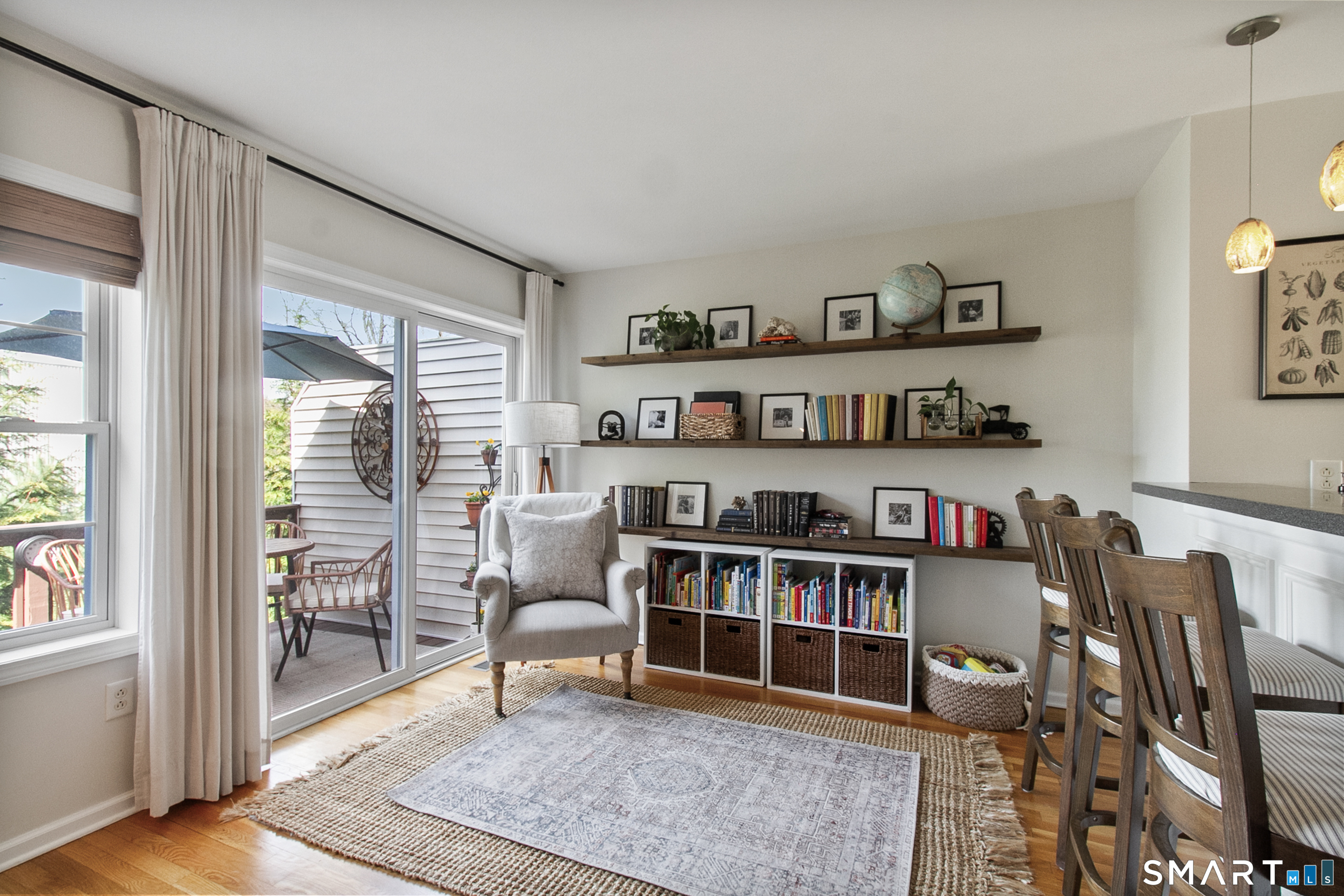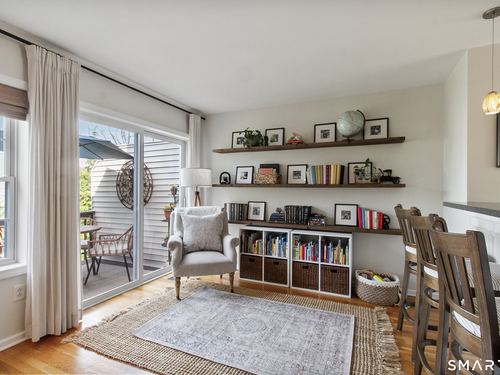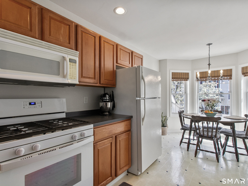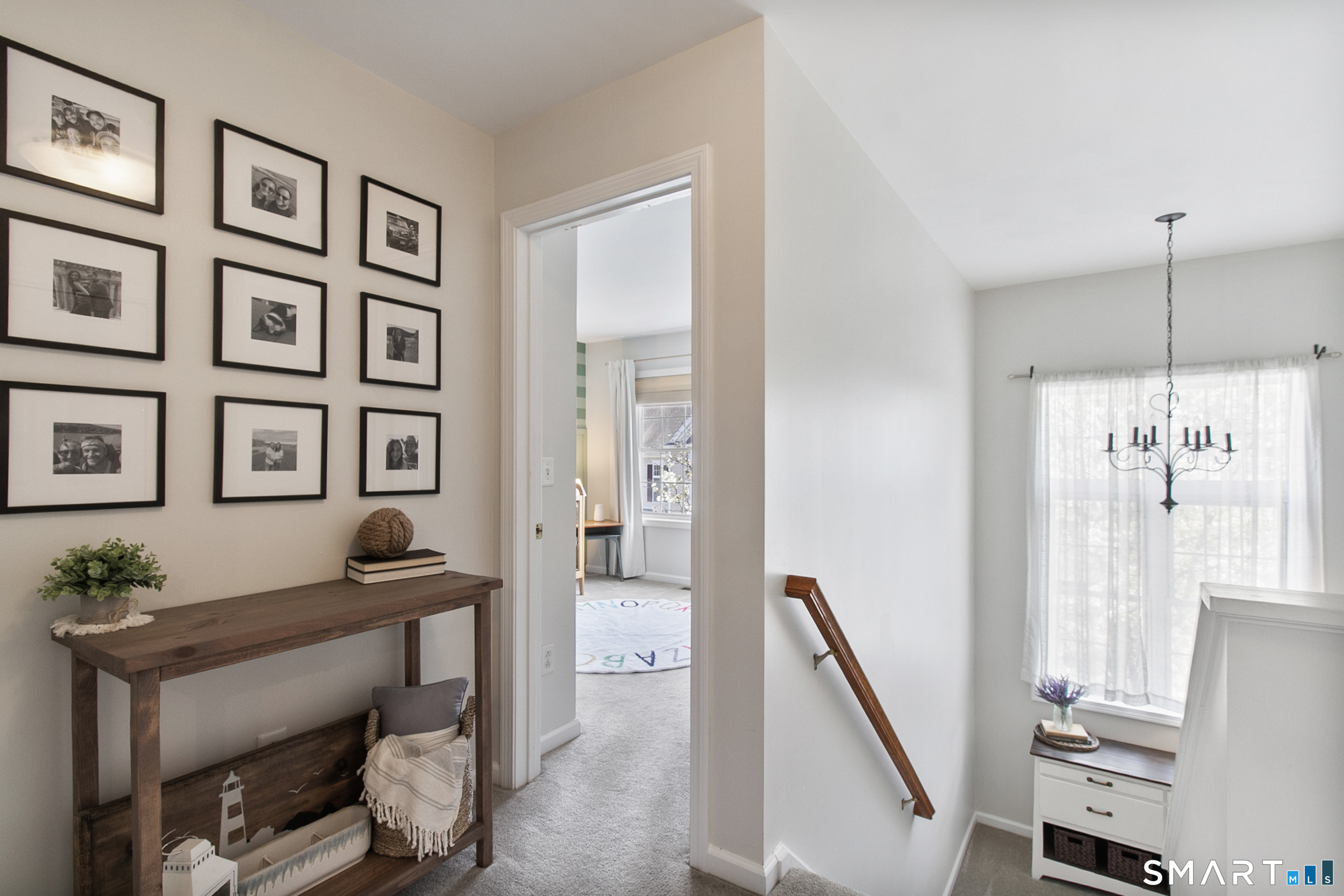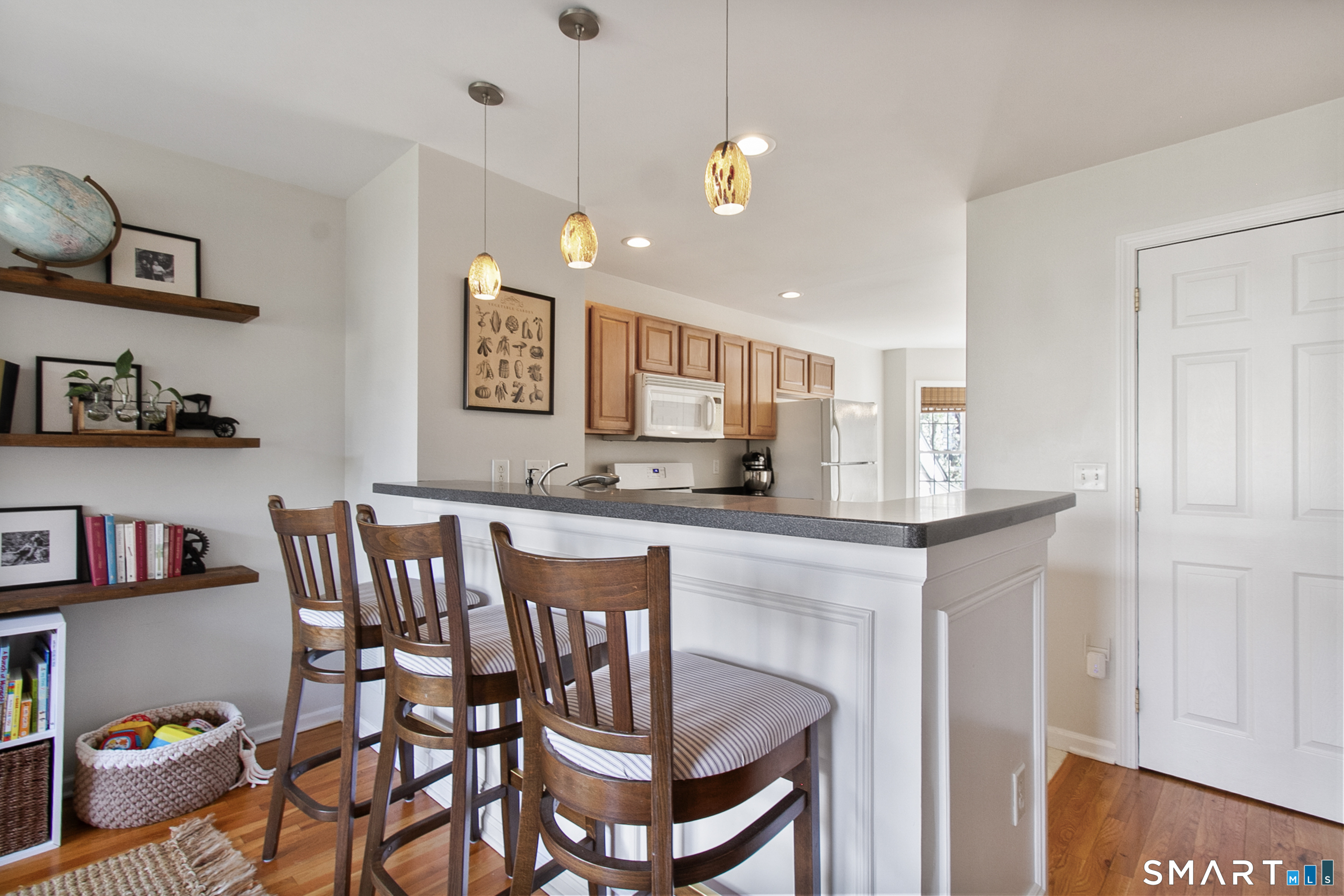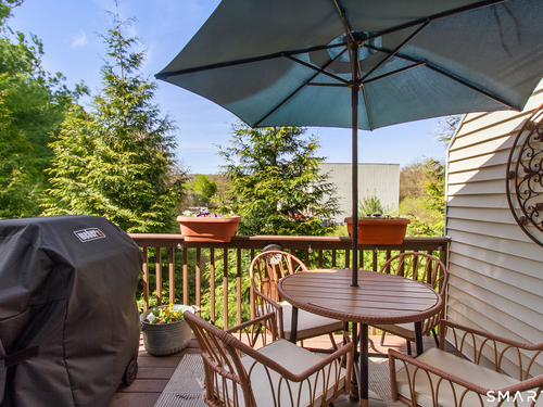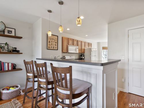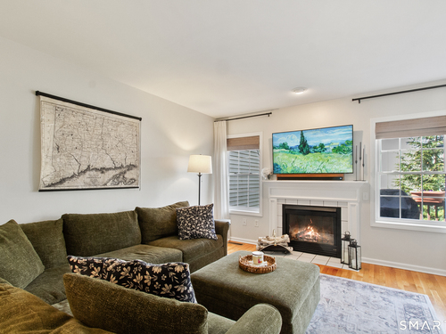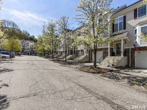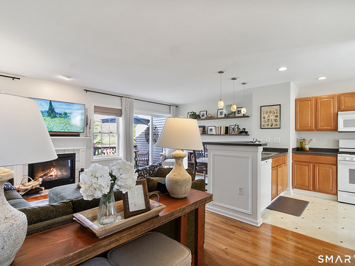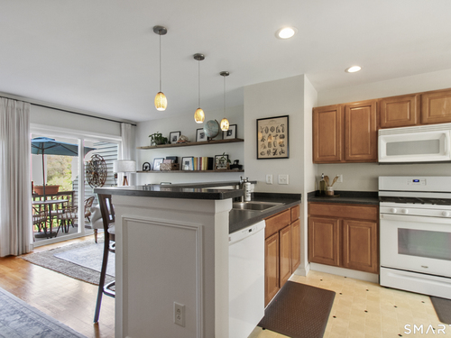 Welcome to Kensington Woods-where comfort, convenience, and style come together in one of Danbury's most desirable Westside locations. Ideally positioned just off Exit 2, this beautifully updated 2-bedroom townhouse offers an exceptional setting for commuters while keeping you moments from shopping, dining, and everyday essentials. Bright, open, and thoughtfully designed, the main living area features hardwood floors, a cozy gas fireplace, and seamless flow into the dining space with sliders to a private deck. The kitchen is both inviting and functional, offering generous counter space for seating, classic oak cabinetry, a gas range, pantry closet, and bow bay windows that fill the space with natural light. Upstairs, oversized windows illuminate the landing, leading to a primary bedroom with vaulted ceiling and walk-in closet. The fully renovated bathroom offers a fresh, modern feel with double vanity sinks, and the spacious second bedroom is filled with natural light and offers great flexibility. The finished walk-out lower level adds valuable living space-perfect for a family room, gym, or remote work setup. Recent upgrades include a brand new HVAC system and hot water heater, offering comfort and peace of mind. Residents enjoy access to a clubhouse, pool, and playground, completing the lifestyle this community offers.