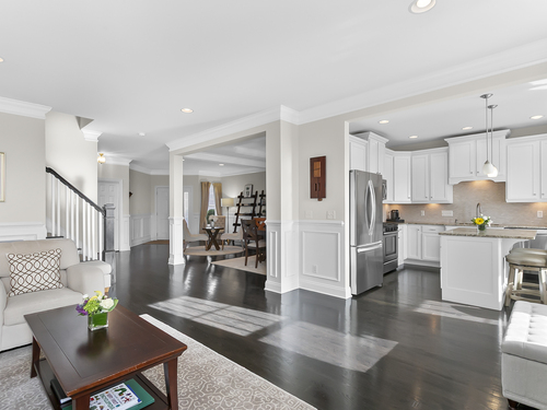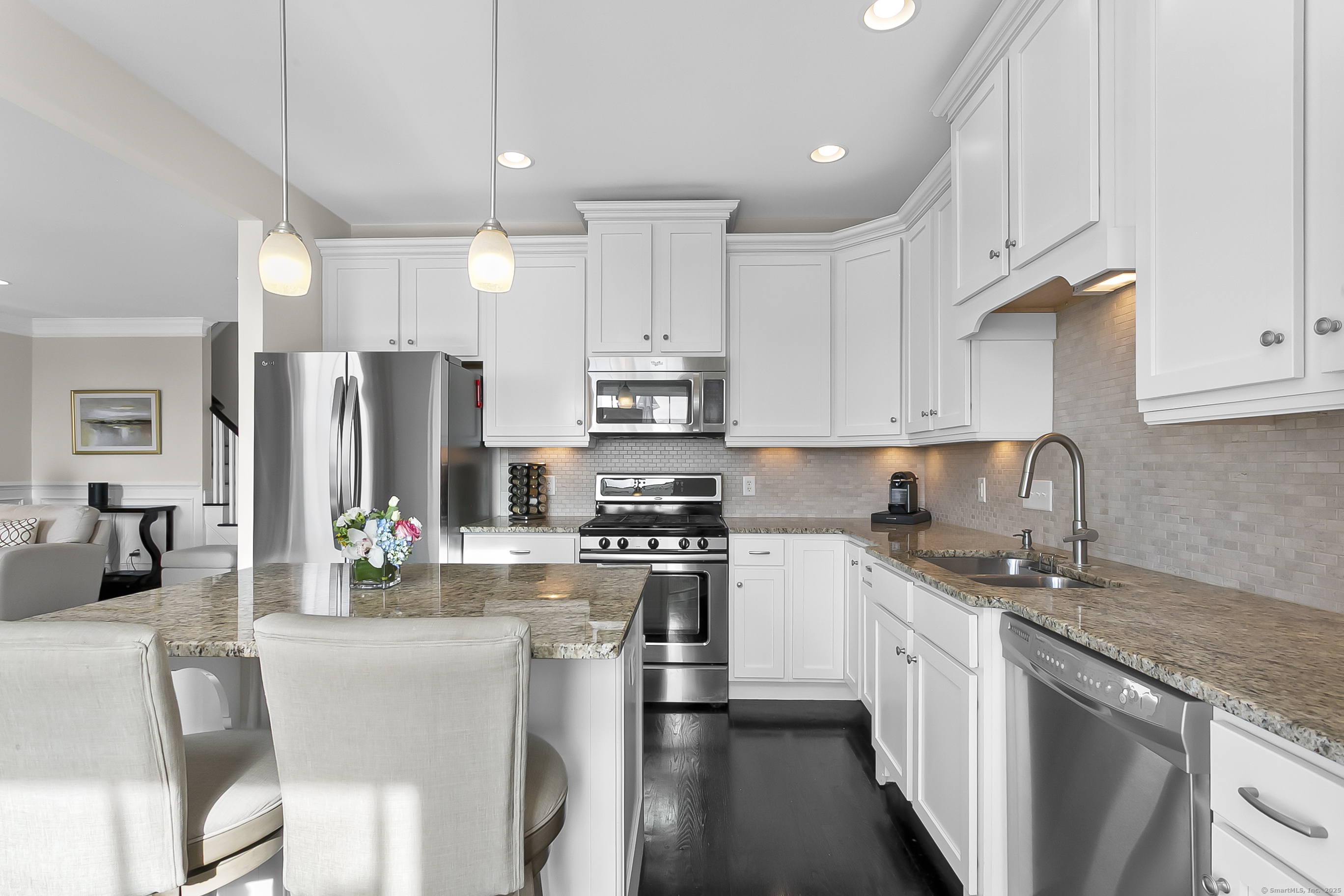 Gorgeous, updated townhouse home in a resort-style gated luxury community with a pool, clubhouse and tennis courts offers the perfect combination of elegance and comfort - Welcome Home to 17 Briar Ridge Drive. Step inside to a welcoming entry way with beautiful hardwood flooring, designer lighting and flooded with an abundance of natural light. Features that make this townhouse home a standout include three levels of spacious living, each with 9-foot ceilings, 3 full and 1 half baths, 8 generous sized rooms, 3 bedrooms - including a primary suite with a sitting room, walk-in closet, and spa-like bath. The bright, open first level showcases a dining/living room combination that flows seamlessly into the cozy family room with a fireplace and an eat-in kitchen. The eat-in kitchen has an ideal design for meal prep, gatherings and casual dining with both an island and dining area. From the kitchen step outside to your private deck overlooking breathtaking, unobstructed scenery - especially magical in the Fall with the colorful foliage. The expansive, finished walk-out lower level adds even more living space with a recreation room, gym area, kitchenette, full bath and sliders that open to a peaceful outdoor sitting area. Additional highlights include great storage and a two-car garage accessible from the main level. Experience pure luxury and easy living every day. You will love everything that this beautiful home has to offer.