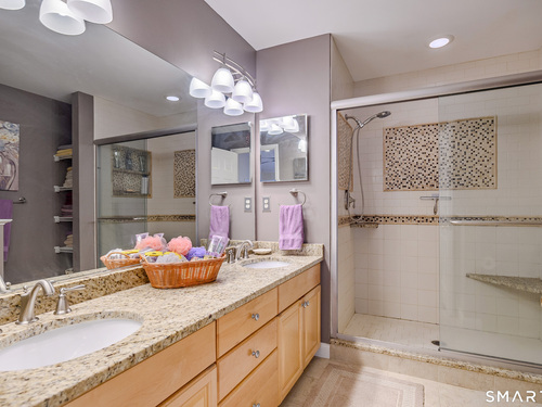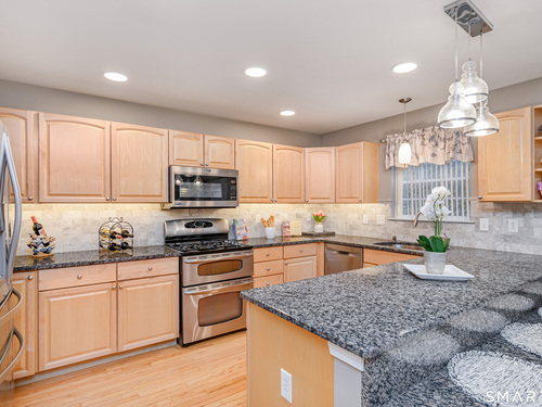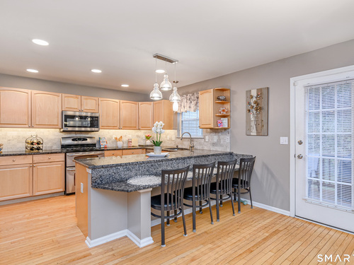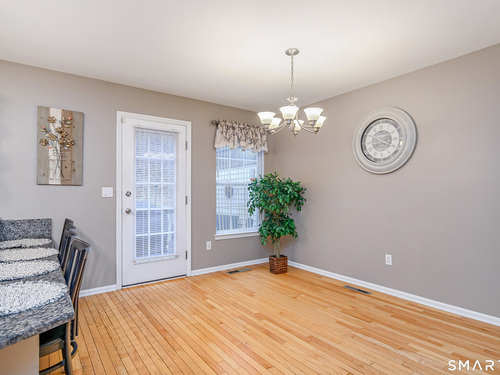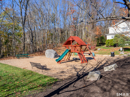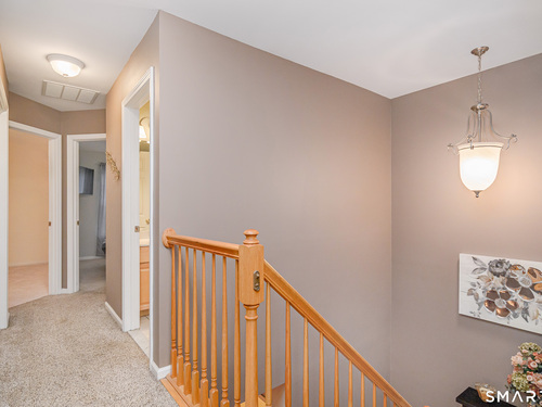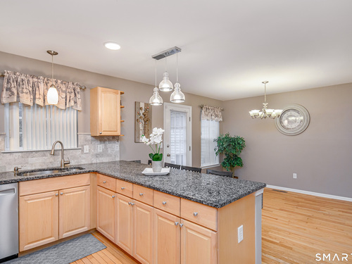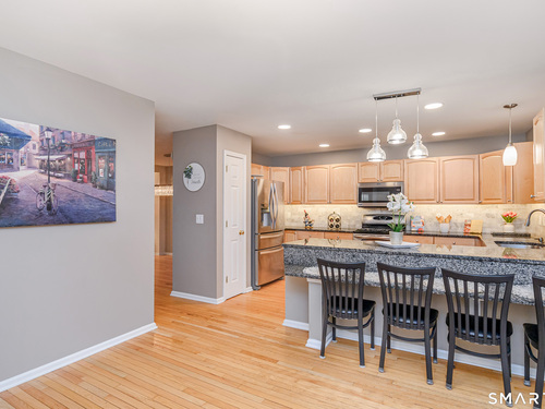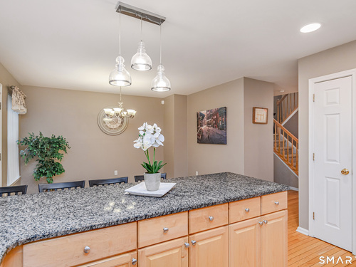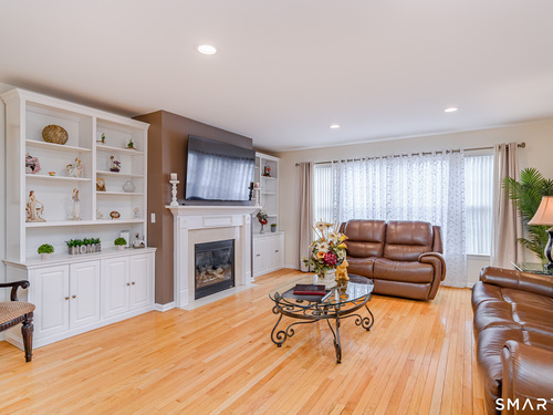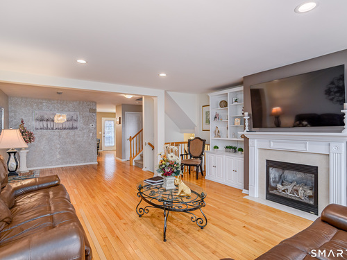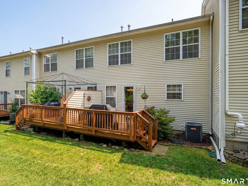 Beautifully maintained 3 bedroom home offering hardwood floors throughout the main level and a spacious, open layout perfect for everyday living and entertaining. The main level features a sun-filled living room with a gas-burning fireplace and custom built-ins, a formal dining room and a spacious kitchen complete with granite countertops, breakfast bar and room for a kitchen table. A convenient powder room and access to the rear deck with stairs leading to the common grass area (upgrade) complete this level. The upper level offers a generous primary bedroom, two walk-in closets, and a private full bath featuring double granite vanity sinks and a tiled shower. Two additional bedrooms, all with ceiling fans, and a full hall bath complete the upper level. The finished lower level provides a versatile family room, along with a laundry/mechanical room and access to the two-car garage. Enjoy community amenities including a pool, playground, and tennis courts. Conveniently located just minutes to I-84, major shopping, dining, and medical facilities nearby.