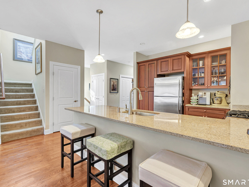 Welcome to the highly sought-after Crescent Village Townhouse community, where style, comfort, & convenience meet! This beautifully maintained end unit home features a desirable open floor plan with 9' ceilings & hardwood floors throughout the main level. The inviting living room w/ a door leading out to your own private balcony that has Housatonic water views! Large living room that seamlessly connects to the dining area & gorgeous kitchen w/ upgraded granite countertops, counter bar, gas stove, pantry, & pull-out cabinetry-perfect for both entertaining & everyday living. A sun-filled main level office, half bath, & laundry closet complete the 1st floor. Upstairs, you'll find a spacious primary suite w/ a walk in closet & a luxurious full bath w/ double sinks, a sit-down vanity, & a stall shower. The second bedroom suite offers its own private full bath & walk-in closet, ideal for guests/family. The enclosed loft provides a perfect additional living space for a private home office or den. The brand new finished lower level includes a bedroom & full bath. Lower level also features 2 car garage, ample storage space, & walk-out access to the backyard. Crescent Village is a beautifully manicured community offering a pristine in-ground pool, outdoor patio/lounge, club house, fitness center, playground, gazebo, & quiet streets for strolling. Located near an array of shops, restaurants, golf courses, parks & schools, this home also provides easy access to I-95, Route 15 & Route 8!