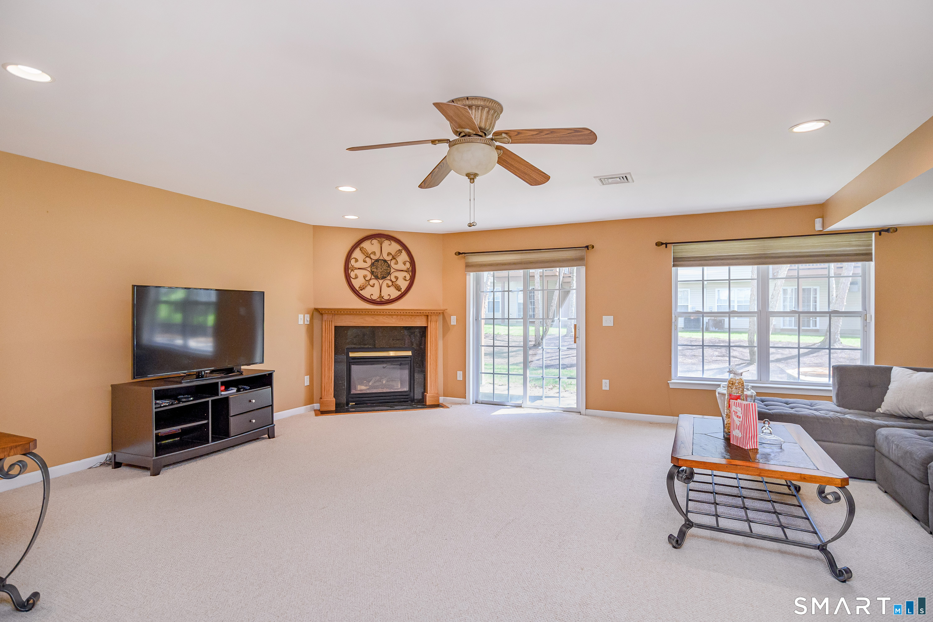 Ceiling Fan, Gas Log Fireplace, Sliders, Wall/Wall Carpet