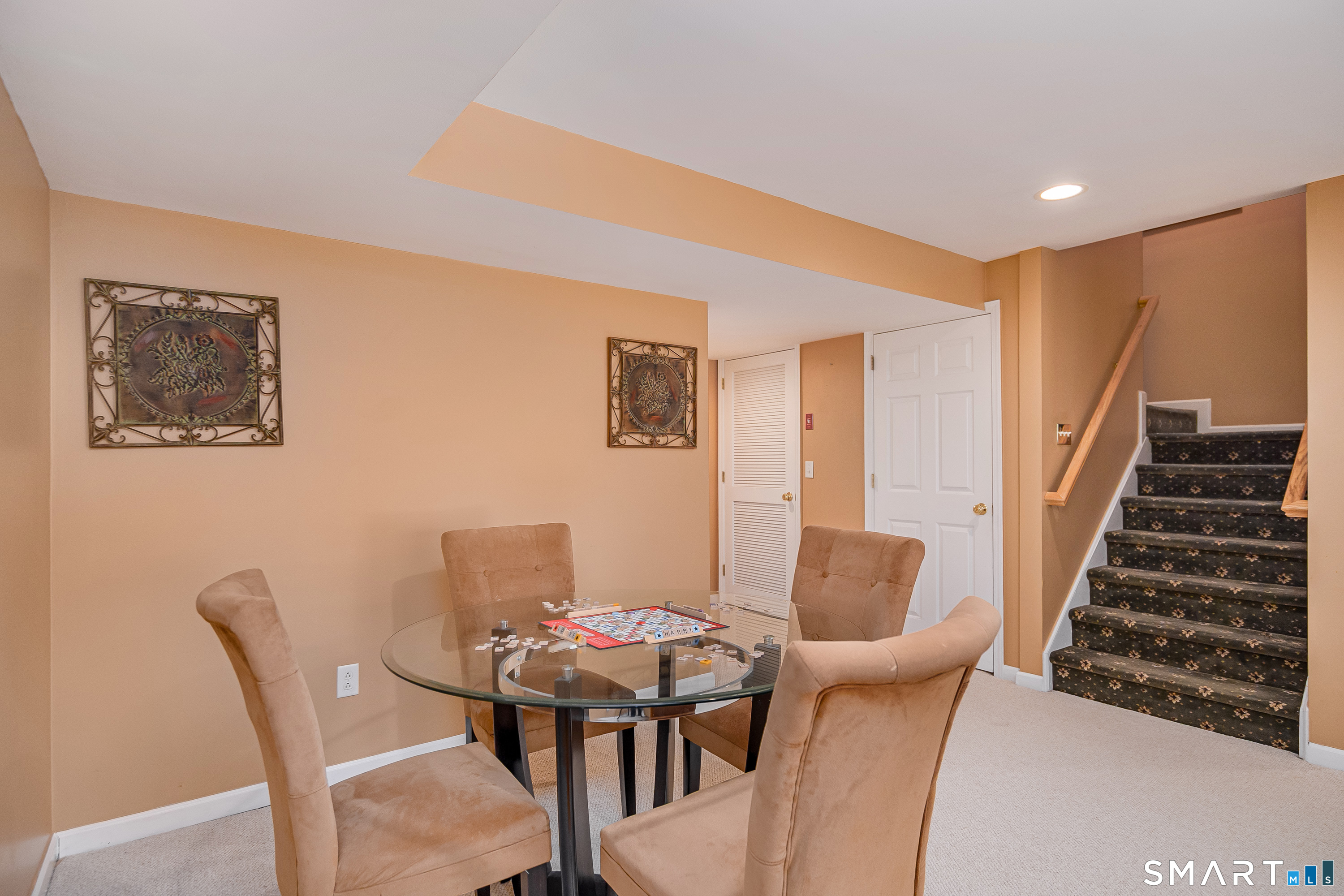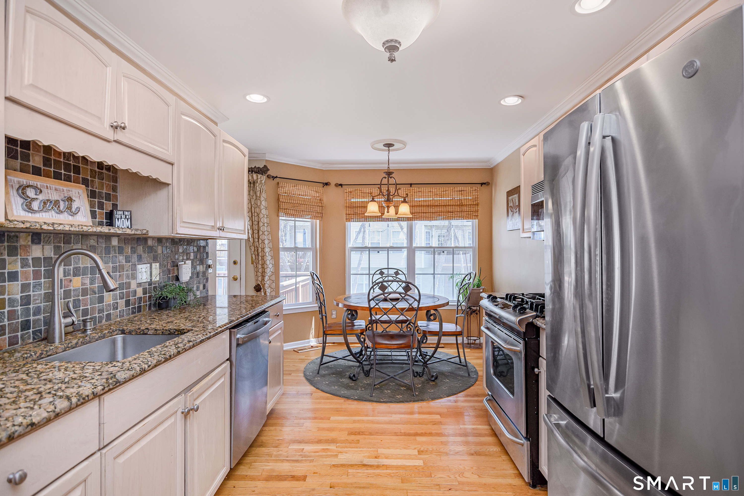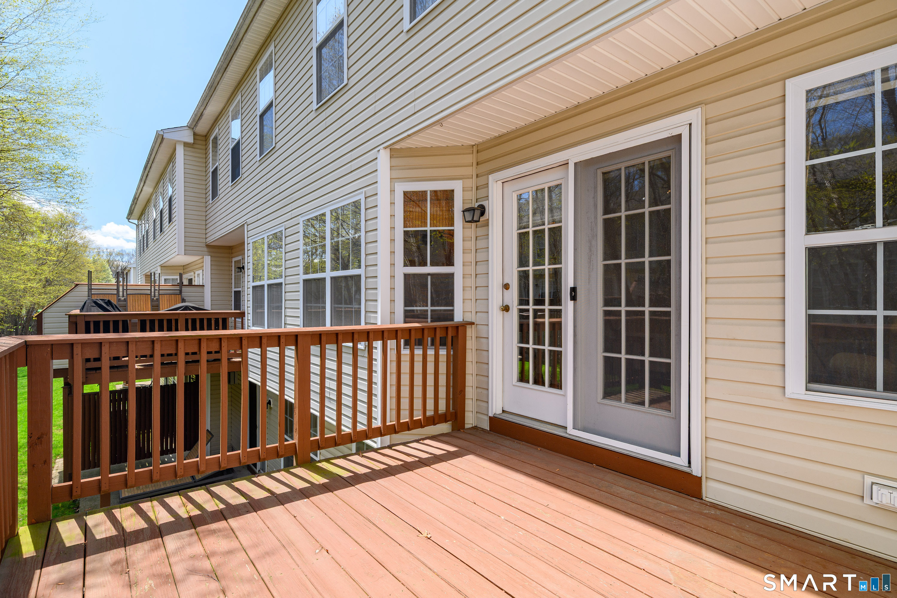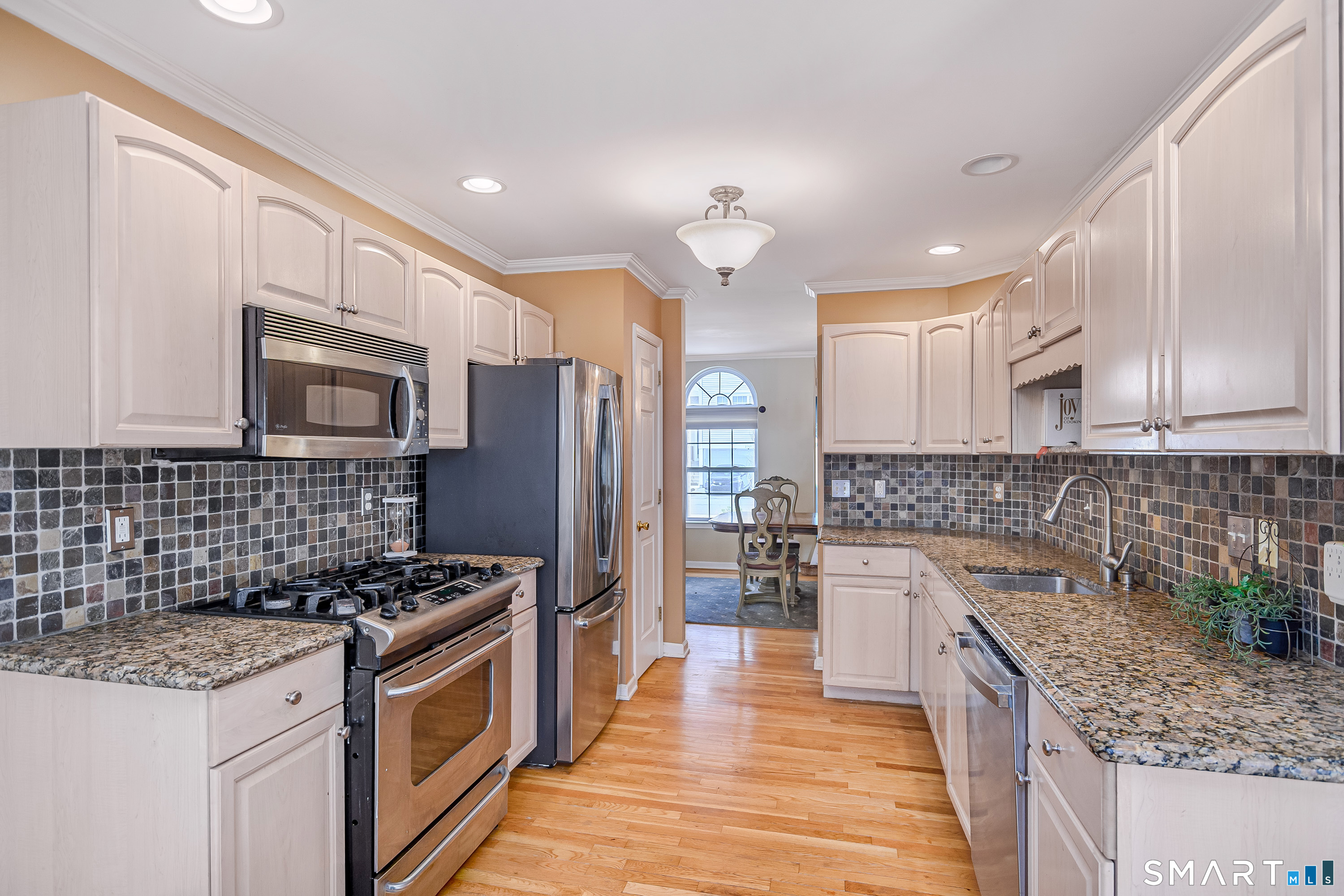Nestled deep within the highly desirable Lexington Mews community, this beautifully maintained 3-bedroom townhome offers the perfect blend of comfort, style & convenience. With 3 thoughtfully designed living levels, this home is ideal for both everyday living & effortless entertaining. The main level welcomes you with a spacious, open-concept layout where the living, dining, and kitchen areas flow seamlessly together. Step out onto the deck to enjoy fresh air & easy indoor-outdoor gatherings. The bright eat-in kitchen features stainless steel appliances, a gas range, granite countertops, a stone backsplash, & rich hardwood flooring, combining function with modern appeal. Direct access from the 2-car garage makes unloading groceries simple & convenient. Upstairs, you'll find 3 generously sized bedrooms, including an inviting primary suite with vaulted ceilings, hardwood floors, and a walk-in closet. The en-suite bath offers dual sinks, a tub, and tile flooring. A full-size laundry area with cabinetry is conveniently tucked away on this level. The walk-out lower level adds incredible versatility with a spacious family, game, fitness, or media room complete with a cozy gas fireplace, and sliding doors to the treed backyard. This home also comes with a central vacuum system.