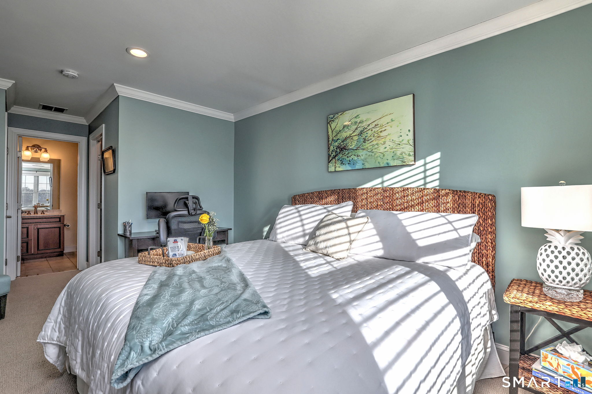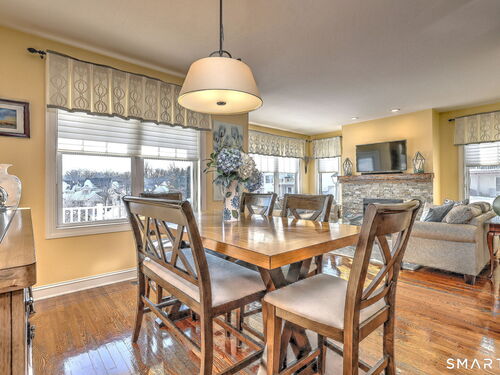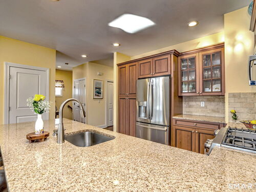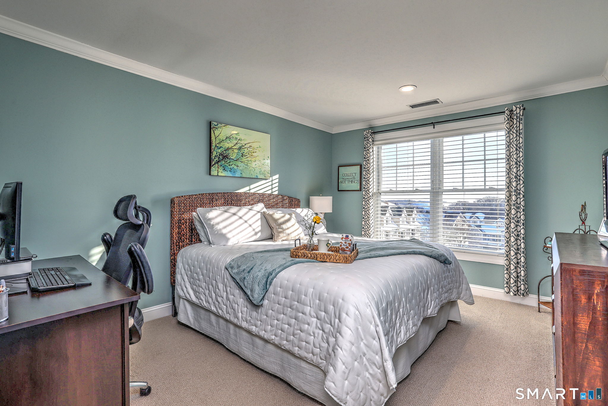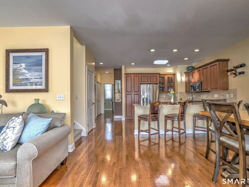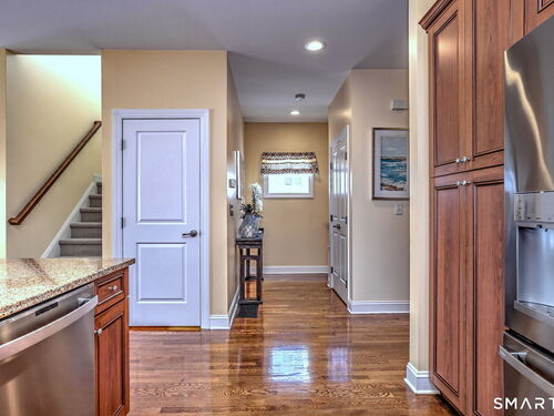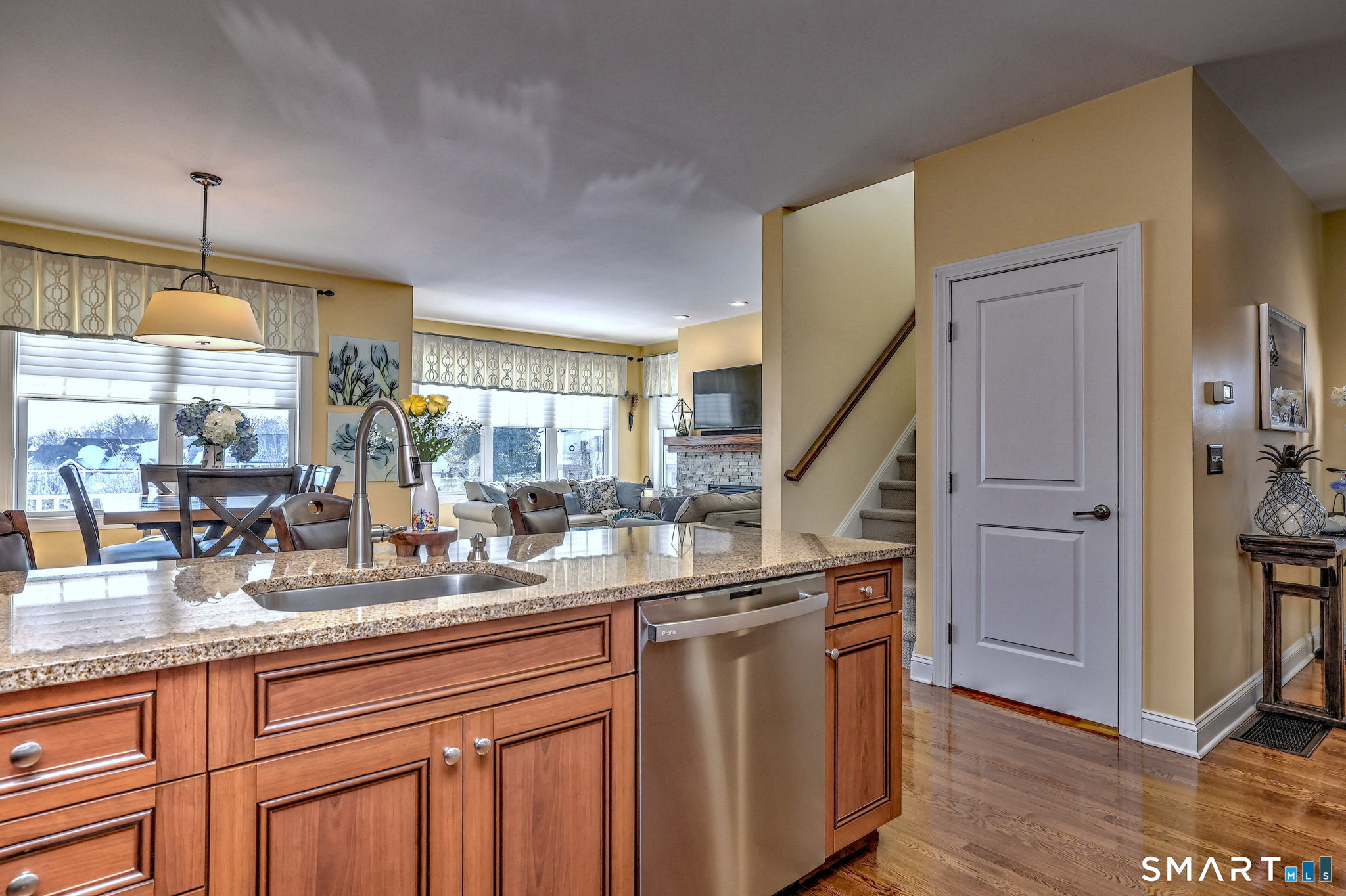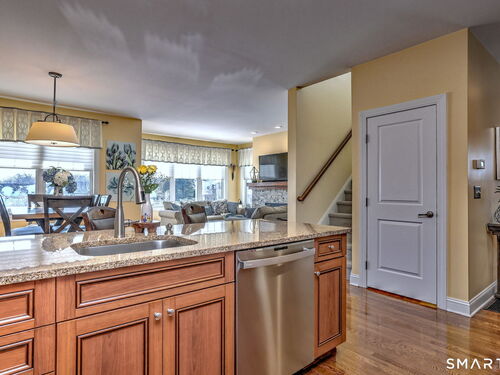 Welcome to sought-after Crescent Village! This beautiful sun-drenched 2-bedroom end-unit townhouse with a 2-car garage under offers the perfect blend of style, comfort, and convenience. Elegant custom shades & window treatments elevate this home's decor. The main level features an open floor plan w/gleaming hardwood floors, a chef's kitchen w/custom cherry cabinets, newer stainless appliances, an oversized peninsula, and granite counters. The dining area flows seamlessly from the kitchen, while the inviting living room showcases a stunning gas fireplace and leads to a quaint deck overlooking the peaceful courtyard with seasonal views of luscious plantings of hydrangeas, roses, hibiscus, & dahlias. A versatile den/office (currently a DR), half bath, & hidden laundry area w/full-size washer & dryer complete the main level. Upstairs, the primary ensuite boasts a walk-in closet & two additional well-planned closets. The primary bath features double sinks w/granite counters, a vanity area, & an oversized tiled walk-in shower. A spacious second bedroom includes a walk-in closet and is served by a full bath w/granite and tub/shower combo. A bright loft area-ideal for a workout space or den-plus another linen closet complete the upper level. The walk-out lower level offers a comfortable family room, half bath, and access to a patio. The fully painted 2-car garage, accessible through the lower level, includes extra storage & offers a custom durable tile flooring. Don't miss this home!