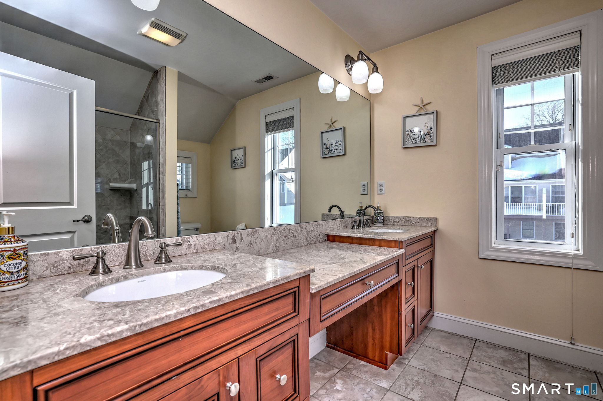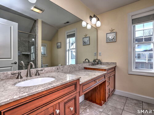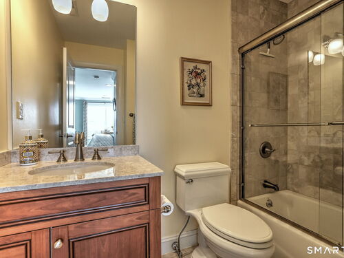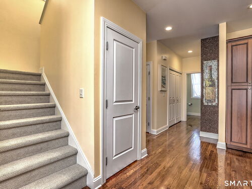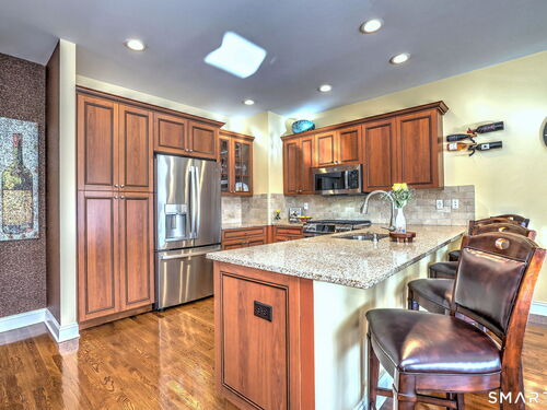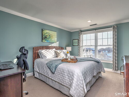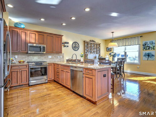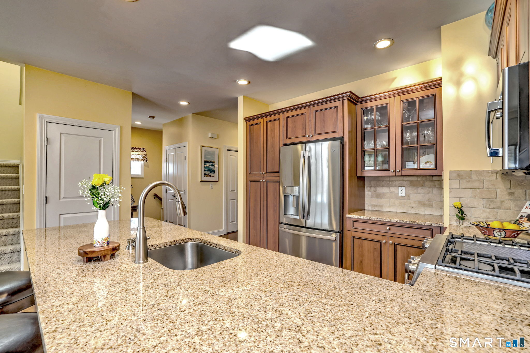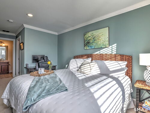 Welcome to sought-after Crescent Village! This beautiful sun-drenched 2-bedroom end-unit townhouse with a 2-car garage under offers the perfect blend of style, comfort, and convenience. Elegant custom shades & window treatments elevate this home's decor. The main level features an open floor plan w/gleaming hardwood floors, a chef's kitchen w/custom cherry cabinets, newer stainless appliances, an oversized peninsula, and granite counters. The dining area flows seamlessly from the kitchen, while the inviting living room showcases a stunning gas fireplace and leads to a quaint deck overlooking the peaceful courtyard with seasonal views of luscious plantings of hydrangeas, roses, hibiscus, & dahlias. A versatile den/office (currently a DR), half bath, & hidden laundry area w/full-size washer & dryer complete the main level. Upstairs, the primary ensuite boasts a walk-in closet & two additional well-planned closets. The primary bath features double sinks w/granite counters, a vanity area, & an oversized tiled walk-in shower. A spacious second bedroom includes a walk-in closet and is served by a full bath w/granite and tub/shower combo. A bright loft area-ideal for a workout space or den-plus another linen closet complete the upper level. The walk-out lower level offers a comfortable family room, half bath, and access to a patio. The fully painted 2-car garage, accessible through the lower level, includes extra storage & offers a custom durable tile flooring. Don't miss this home!