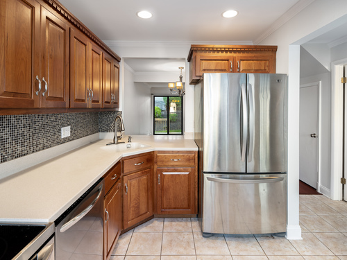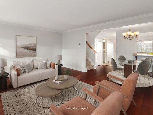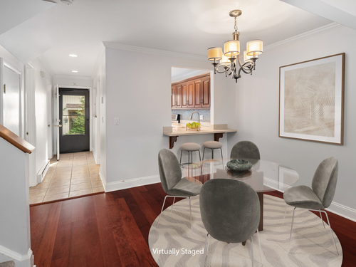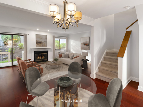 **Tucked-Away Gem in a Sought-After Community** Move right in and enjoy this charming townhouse offering comfort, style, and convenience. The inviting main level features a bright living/dining area with a fireplace, and sliders leading to a private deck or patio-perfect for relaxing or entertaining. The updated eat-in kitchen includes stainless steel appliances and a tile floor. A half bath and laundry room complete this level. Upstairs, two spacious bedrooms each feature en-suite baths and customized closets. Additional highlights include updated bathrooms, a newer washer and dryer, and abundant storage throughout. The home also offers a dedicated carport with locked storage plus an additional parking space. Set in a beautifully landscaped, well-maintained community close to trains, shops, schools, and restaurants-this townhouse combines easy living with an unbeatable location.