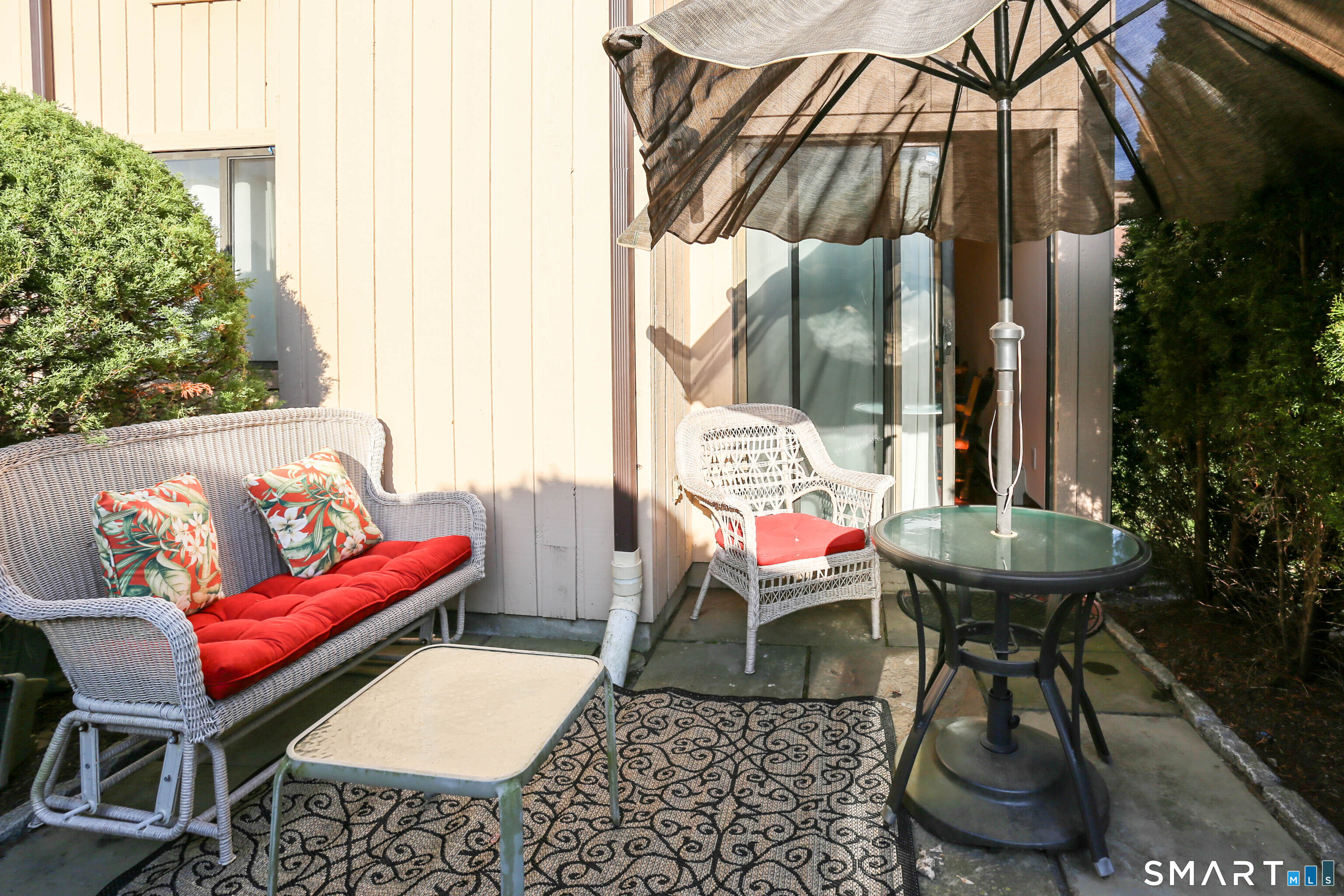 Welcome to sought-after Woodway Commons in Stamford's desirable Upper Springdale neighborhood, ideally located on the border of Darien and New Canaan. This exceptional corner unit offers one of the best locations in the complex, featuring extra windows for abundant natural light and a private patio perfect for relaxing or entertaining. The well-appointed kitchen overlooks a spacious open-concept living and dining area, creating a seamless flow for everyday living and hosting guests. A convenient laundry room just off the main entry includes a washer, dryer, and generous storage space. The inviting living room showcases a beautiful fireplace and polished hardwood floors, adding warmth and character to the home. Upstairs, you'll find two generously sized bedrooms, each with ample closet space. The third floor provides incredible flexibility-ideal as a third bedroom, home office, gym, or playroom-along with additional storage. The home features four bathrooms: two full and two half baths, offering added comfort and convenience. Additional highlights include a covered carport, plenty of guest parking, and a private storage cage about 6'x 4'. A perfect blend of comfort, convenience, and location-just minutes from the Merritt Parkway and Metro-North for an easy commute.