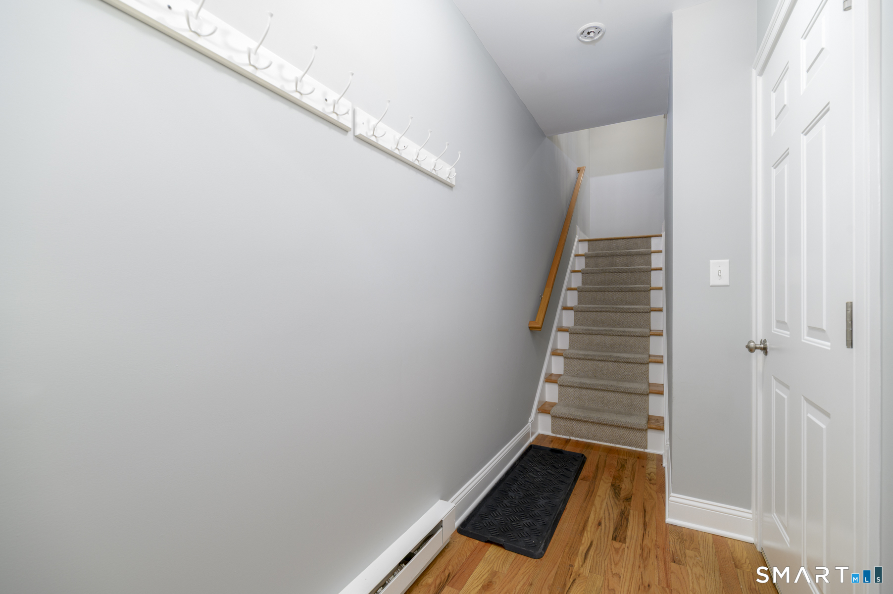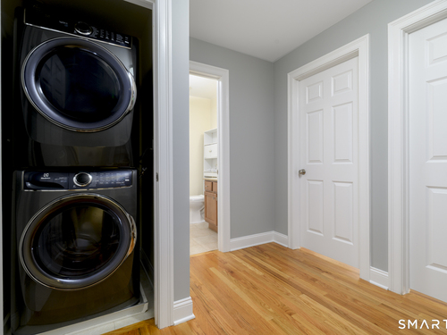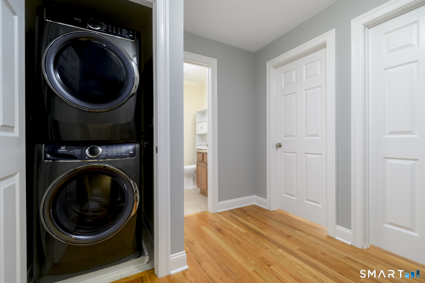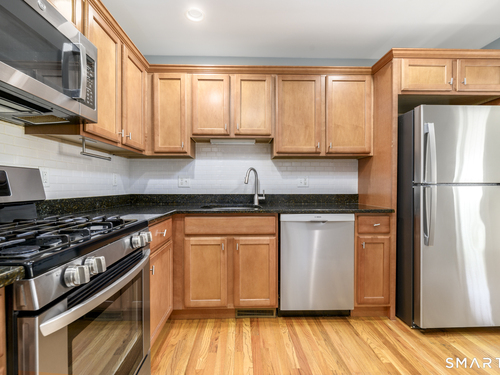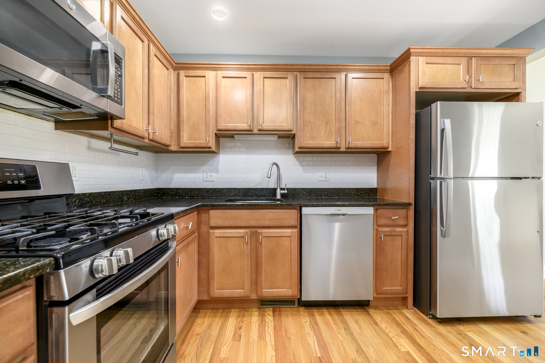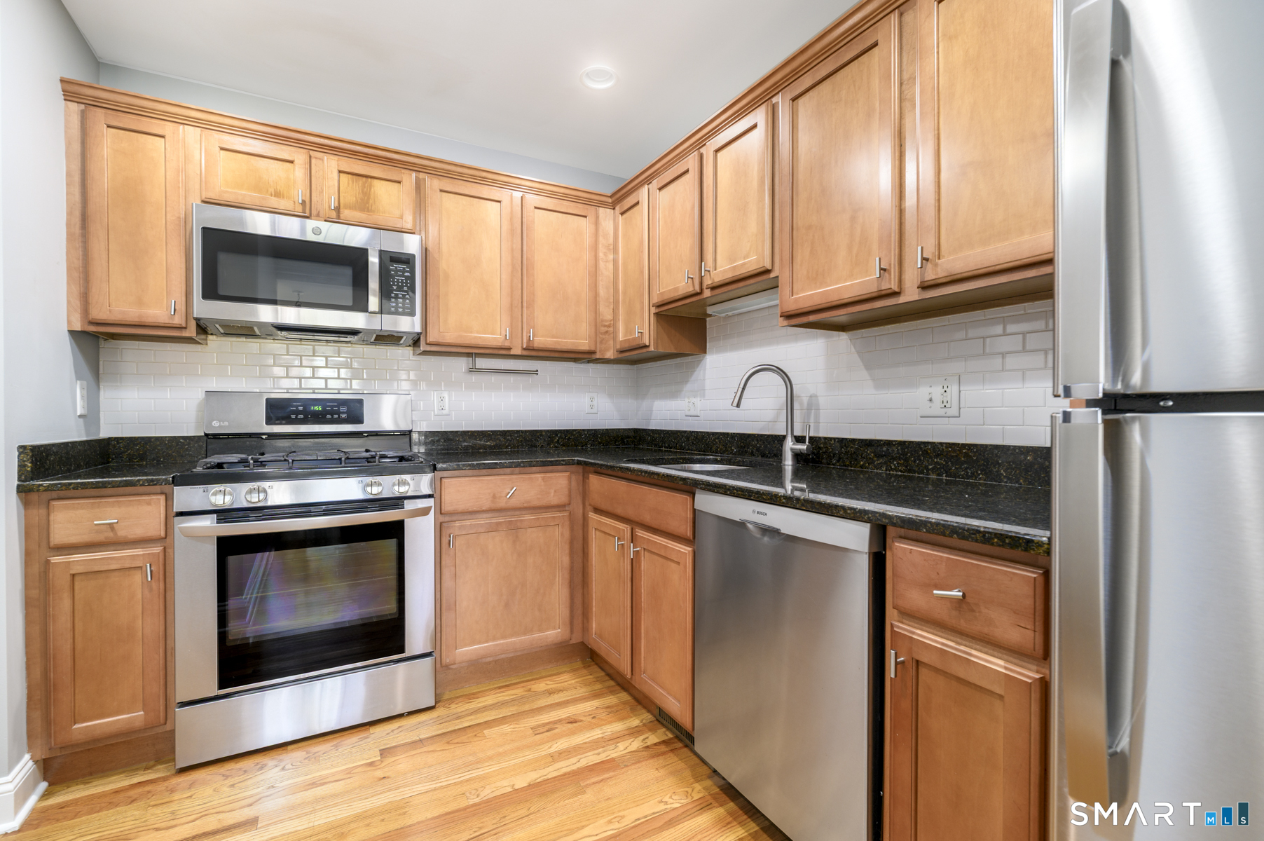 Tri-level townhouse within close proximity to downtown Stamford, train and Stamford Hospital. This condo offers 3 bedrooms and 2.5 baths. Two car attached garage and on-street parking. Kitchen with granite counters and stainless steel appliances. Some of the newer updates include: fresh paint throughout most of the unit, high-end large Electrolux washer/dryer on the second floor, refrigerator and microwave plus more! Garage was currently being used as a home gym but can also be used as a garage featuring high-end black PVC tile flooring, upgraded lighting and a large mirrored wall. This unit features hardwood flooring, an oversized master suite on the third floor, two zone gas heat and large attic for storage.