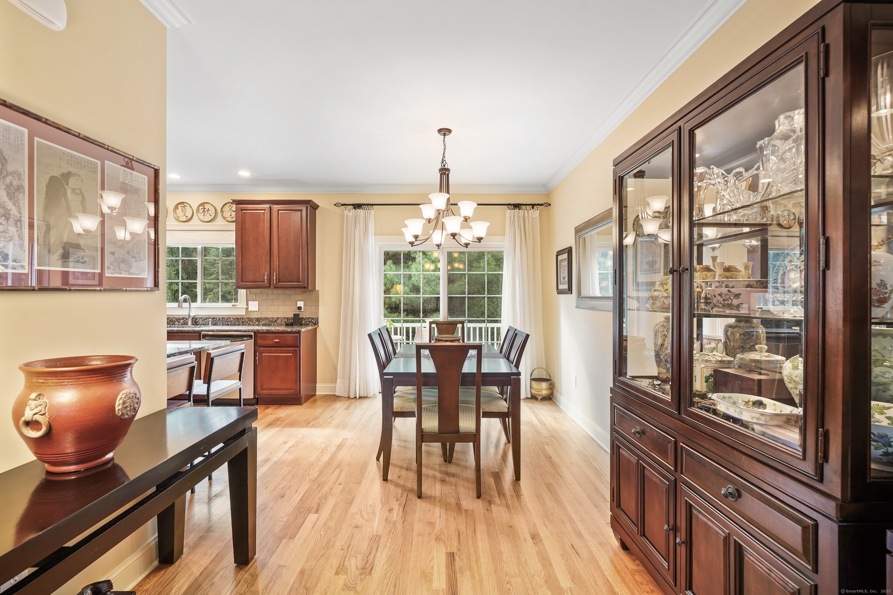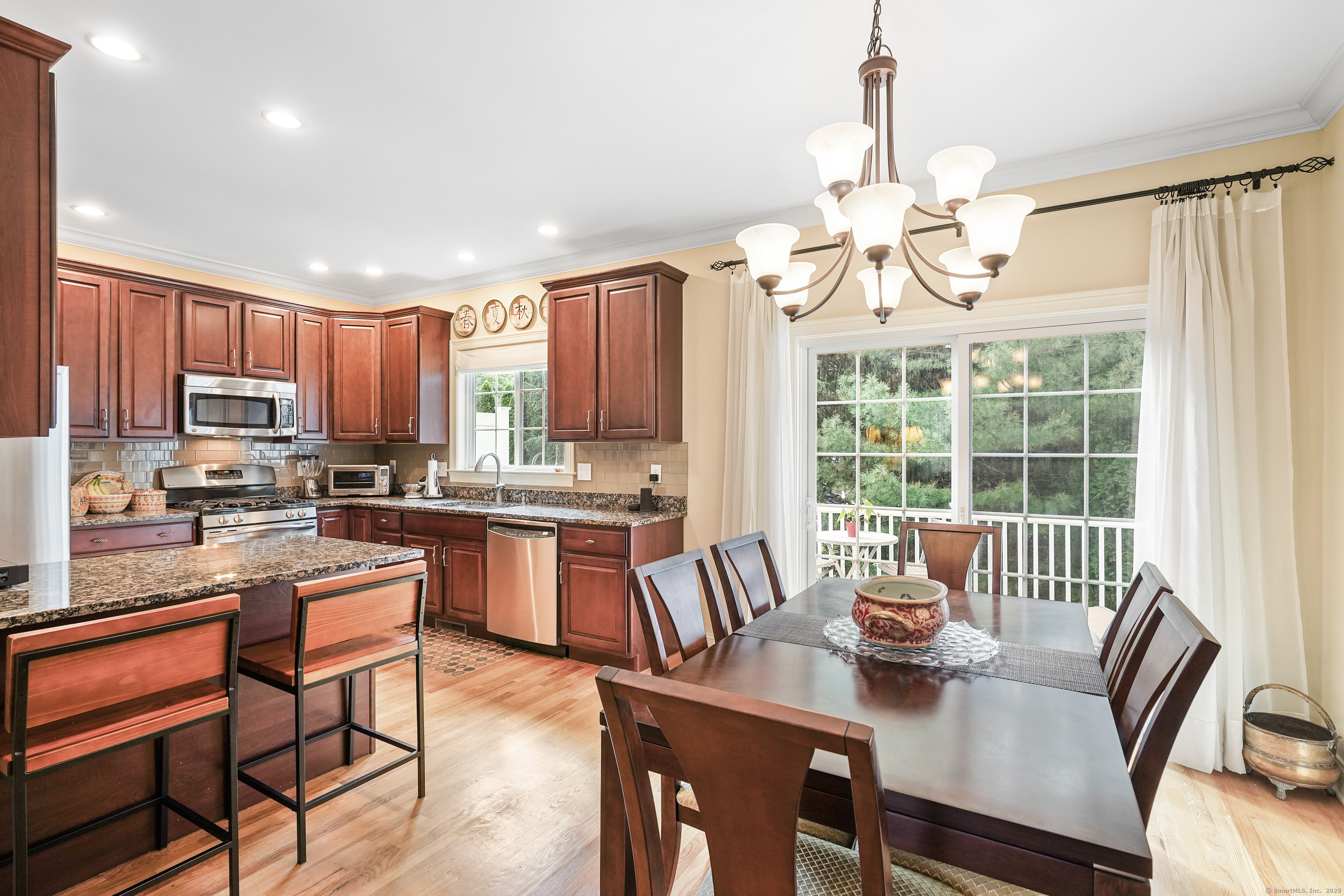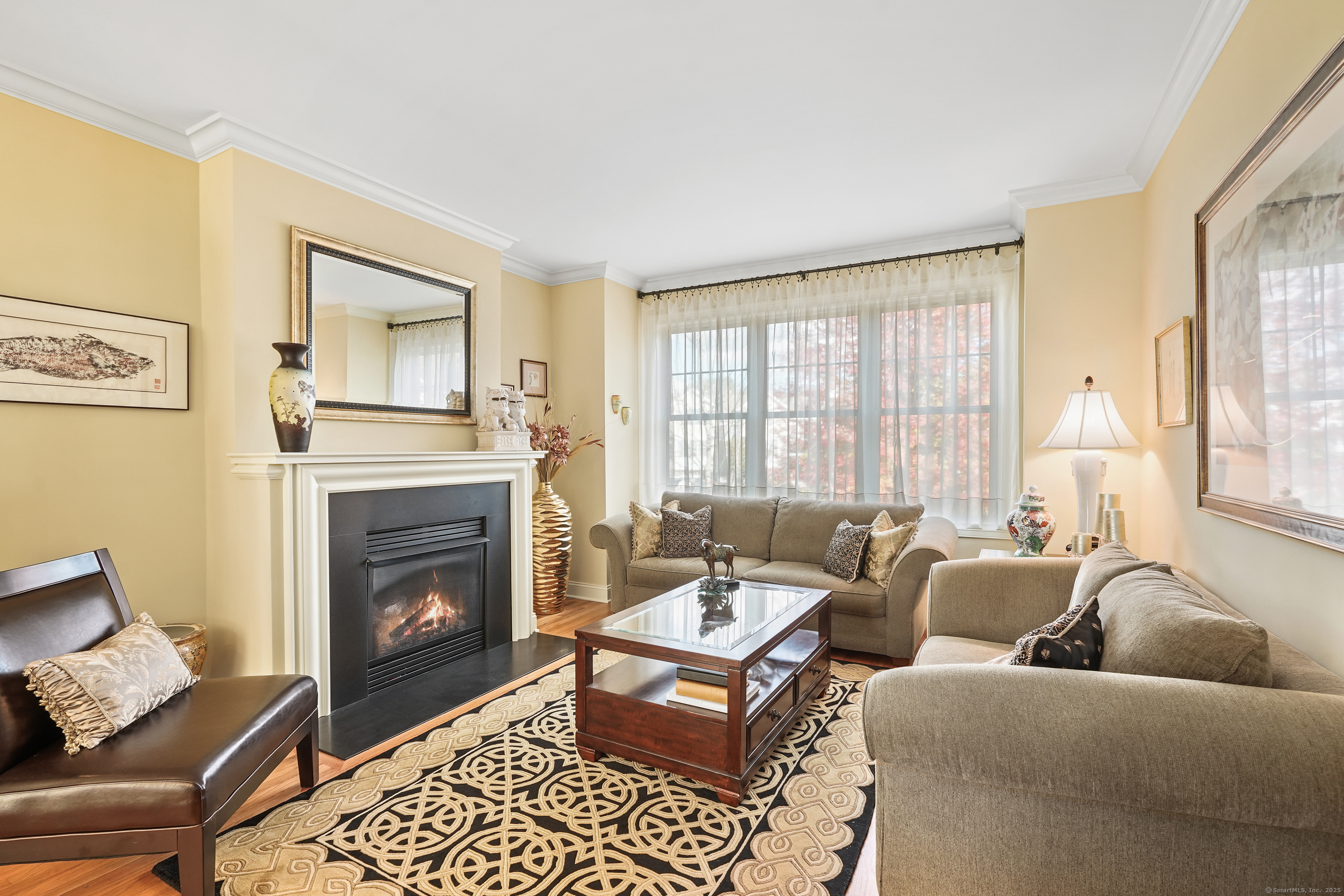 Nestled in a private gated enclave, this sophisticated Westport townhouse blends timeless elegance with modern comfort. Enjoy a coveted lifestyle with walkable access to Metro-North and Saugatuck's vibrant dining scene. Bradley Commons is a beautifully maintained, gated condominium complex offering an effortless lifestyle. Rich millwork, gleaming hardwood floors, large windows and an attached garage elevate this pristine home's appeal. The custom granite kitchen boasts premium stainless steel appliances and flows seamlessly into open-concept living and dining rooms, anchored by a cozy fireplace and glass doors leading to a sun-kissed deck. Two luxurious en-suite bedrooms. The first is the sun-filled primary suite, which has dramatic double doors, a tray ceiling with gorgeous mouldings, two fitted closets and a large spa-like bath with double vanity and glass shower. 2nd bedroom w/cathedral ceiling & full bath. Convenient bedroom-level laundry. The walk-out lower level offers a spacious family room perfect for entertaining or relaxing, and there is a space used as a convenient home office. Recent upgrades include new central air, heating, and hot water systems that are all less than 1.5 years old. Minutes from Compo Beach's scenic shoreline and Longshore Club Park's golf, tennis, sailing and marina amenities, the Saugatuck Rowing Club and beautiful river access, this residence offers the best of Westport living. A rare opportunity for refined coastal charm and convenience.