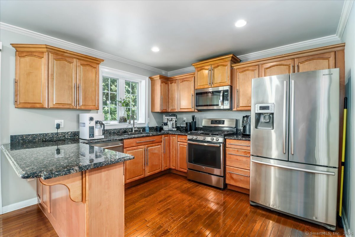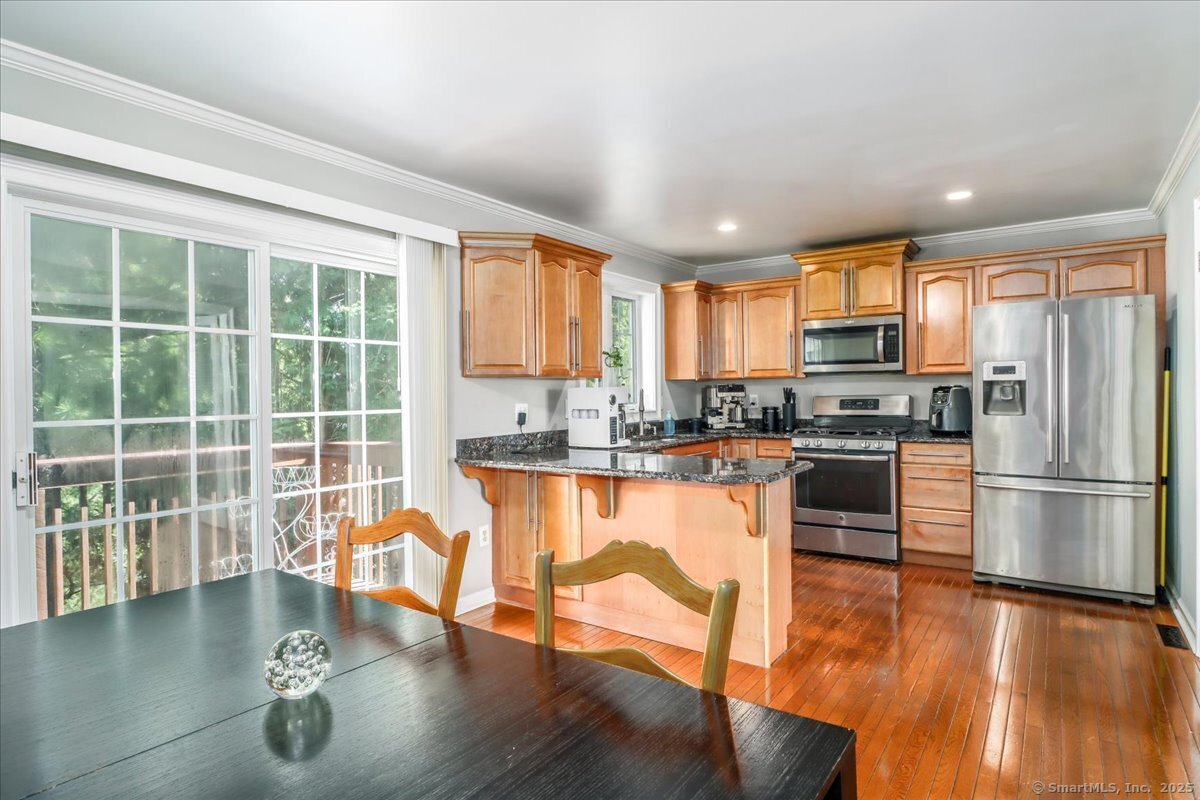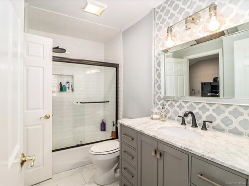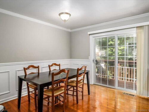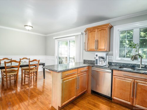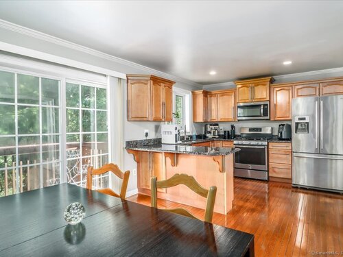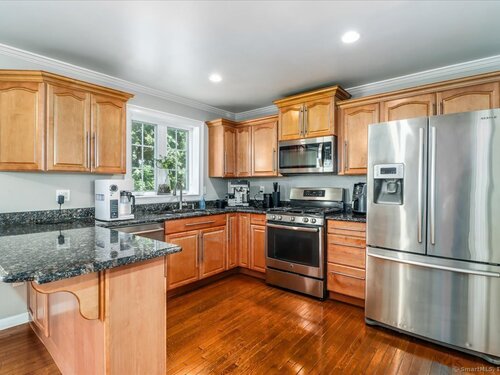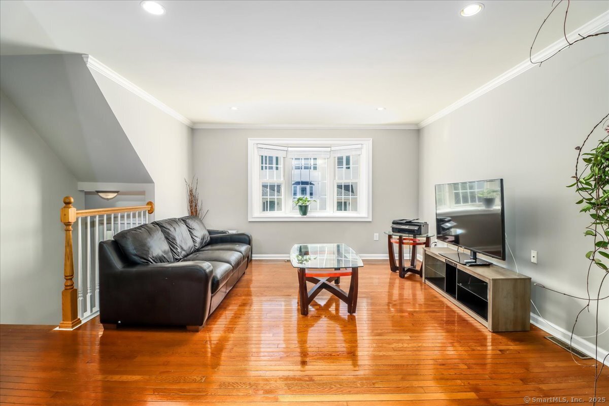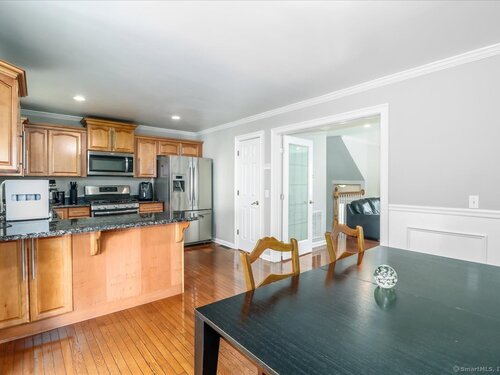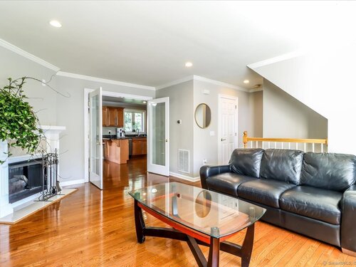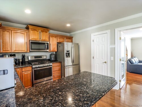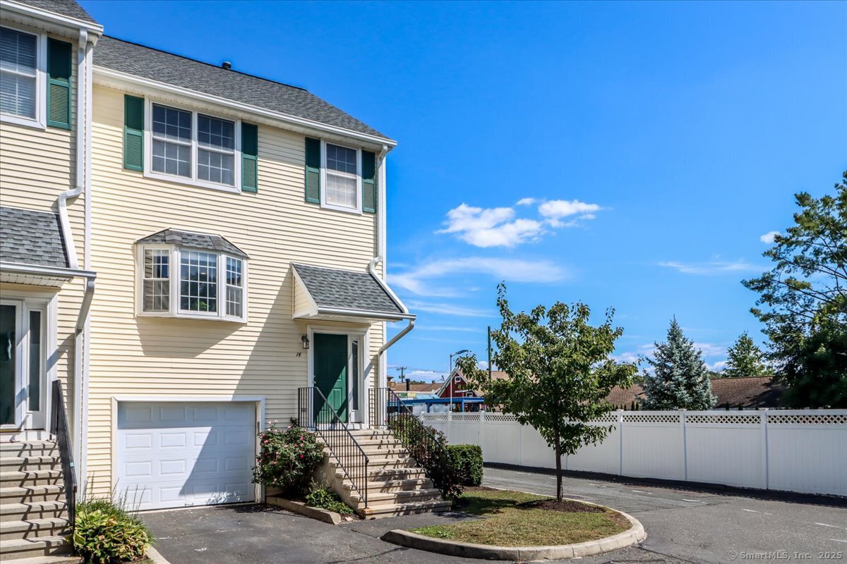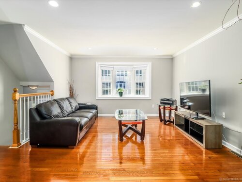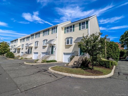 Welcome to The Enclave! Located in the heart of downtown Danbury, this move-in ready tri-level townhome offers the perfect blend of privacy and convenience. Take full advantage of the walkable proximity to all the amazing shops, restaurants downtown Danbury has to offer, as well as the Danbury Train Station, City Center Danbury, Rogers Park and multiple major commuter routes. Upon entering this tastefully updated end-unit townhome, you're greeted by a sun filled living room that boasts beaming hardwood floors, a large bay window, and cozy gas fireplace. The open floorplan flows seamlessly into the spacious eat-in kitchen complete with SS appliances, granite counters, hardwood floors & pantry. The dining area is just off the kitchen and has plenty of space to fit the full family, plus it has sliders that lead out to a private back deck. Upstairs, you'll find a beautifully updated full bathroom and two expansive, well-appointed bedrooms, both with brand new carpeting. The primary bedroom boasts vaulted ceilings, and a large walk-in closet with custom organizers. The finished lower level offers a versatile flex space that can work well as a home office, play/rec room, home gym, or even a third bedroom. Additional highlights include central air, high-efficient gas heating system and numerous updates throughout. This home is prime for a multitude of buyers, whether you're looking to downsize, or searching for your first home or just looking for a commuter-friendly location!