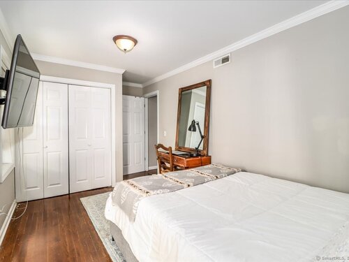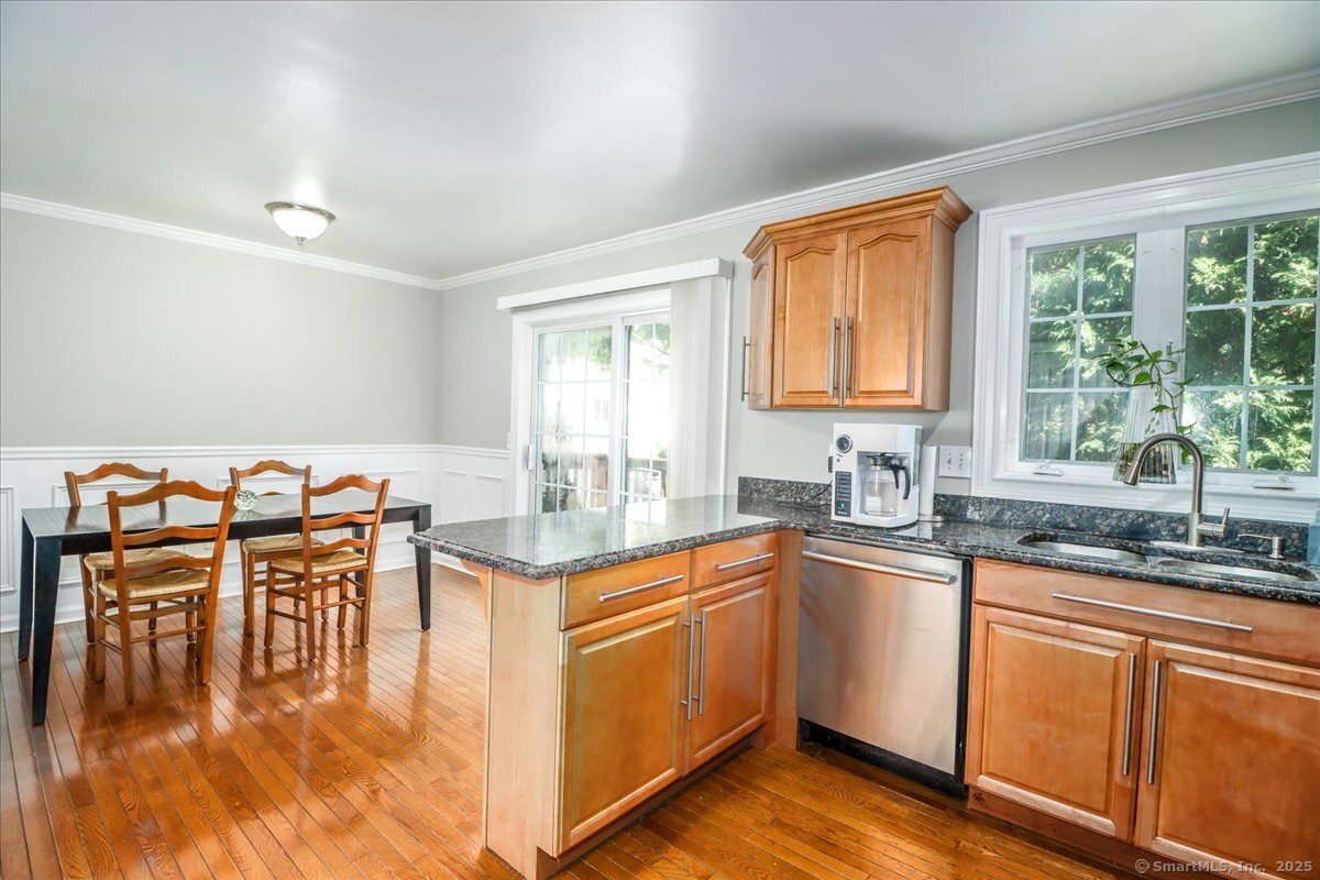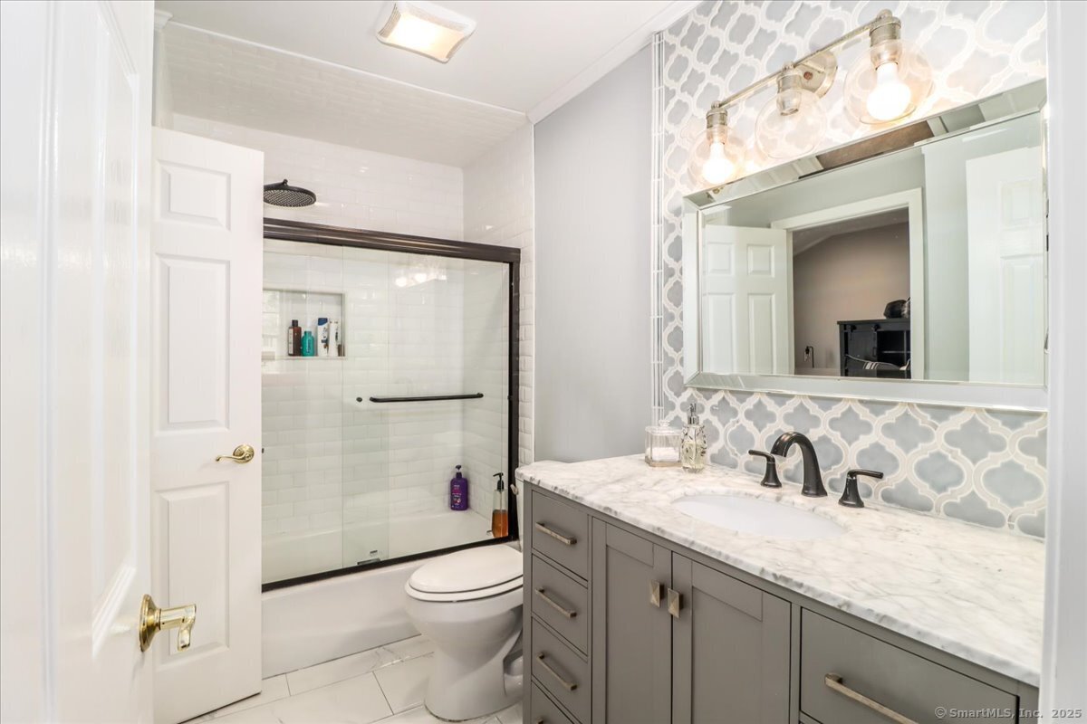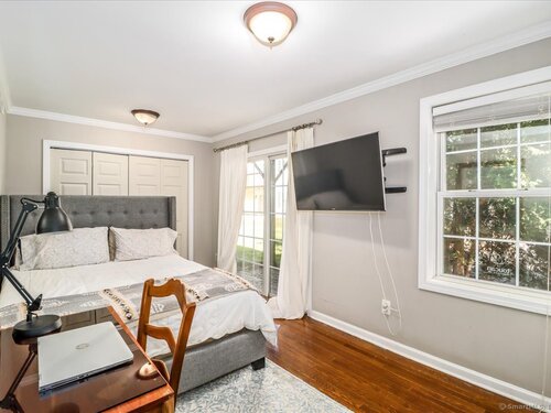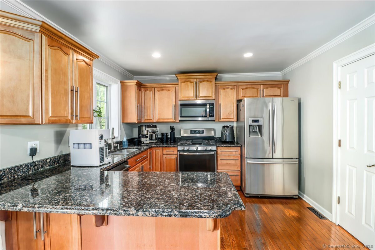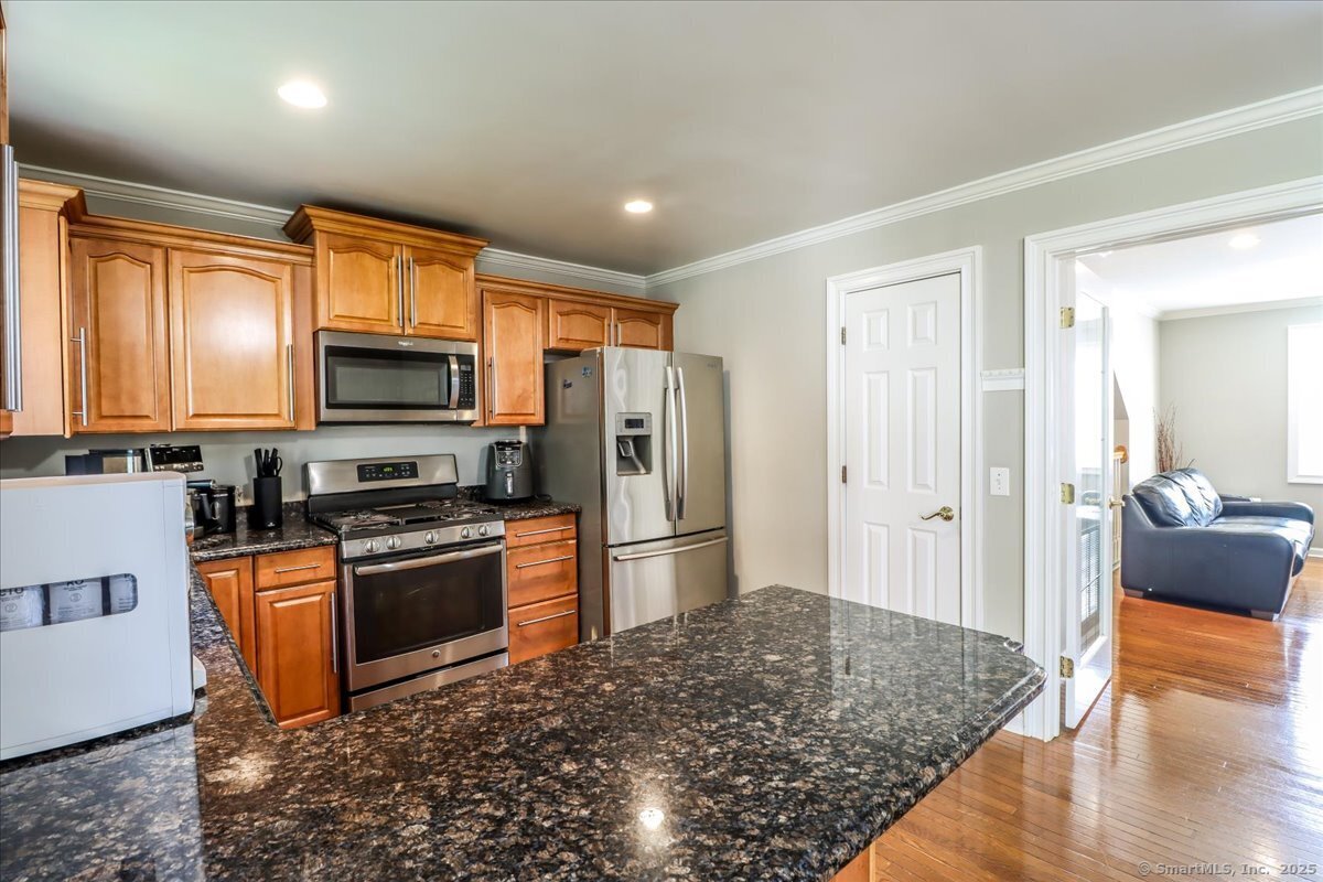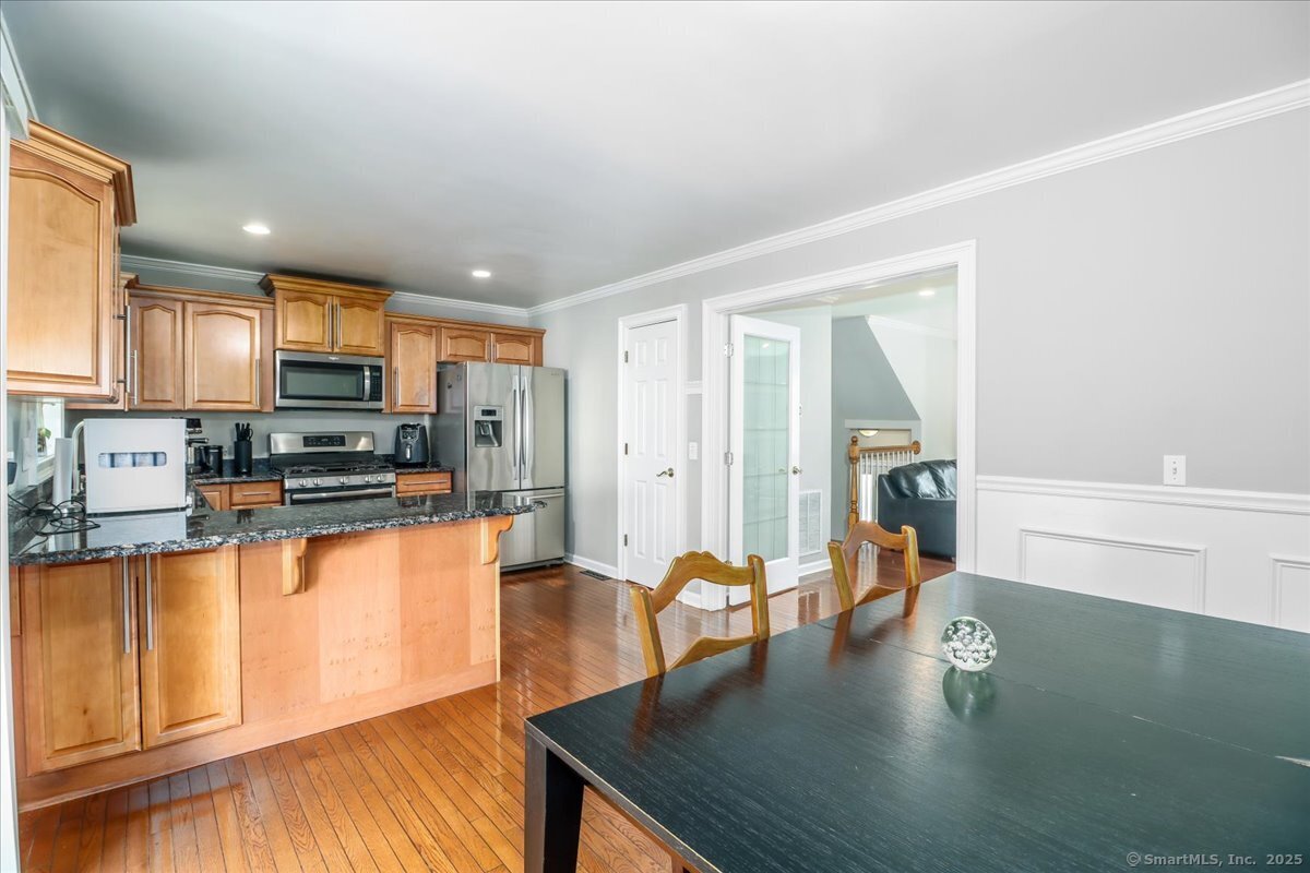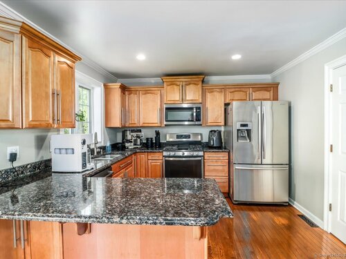 Welcome to The Enclave! Located in the heart of downtown Danbury, this move-in ready tri-level townhome offers the perfect blend of privacy and convenience. Take full advantage of the walkable proximity to all the amazing shops, restaurants downtown Danbury has to offer, as well as the Danbury Train Station, City Center Danbury, Rogers Park and multiple major commuter routes. Upon entering this tastefully updated end-unit townhome, you're greeted by a sun filled living room that boasts beaming hardwood floors, a large bay window, and cozy gas fireplace. The open floorplan flows seamlessly into the spacious eat-in kitchen complete with SS appliances, granite counters, hardwood floors & pantry. The dining area is just off the kitchen and has plenty of space to fit the full family, plus it has sliders that lead out to a private back deck. Upstairs, you'll find a beautifully updated full bathroom and two expansive, well-appointed bedrooms, both with brand new carpeting. The primary bedroom boasts vaulted ceilings, and a large walk-in closet with custom organizers. The finished lower level offers a versatile flex space that can work well as a home office, play/rec room, home gym, or even a third bedroom. Additional highlights include central air, high-efficient gas heating system and numerous updates throughout. This home is prime for a multitude of buyers, whether you're looking to downsize, or searching for your first home or just looking for a commuter-friendly location!