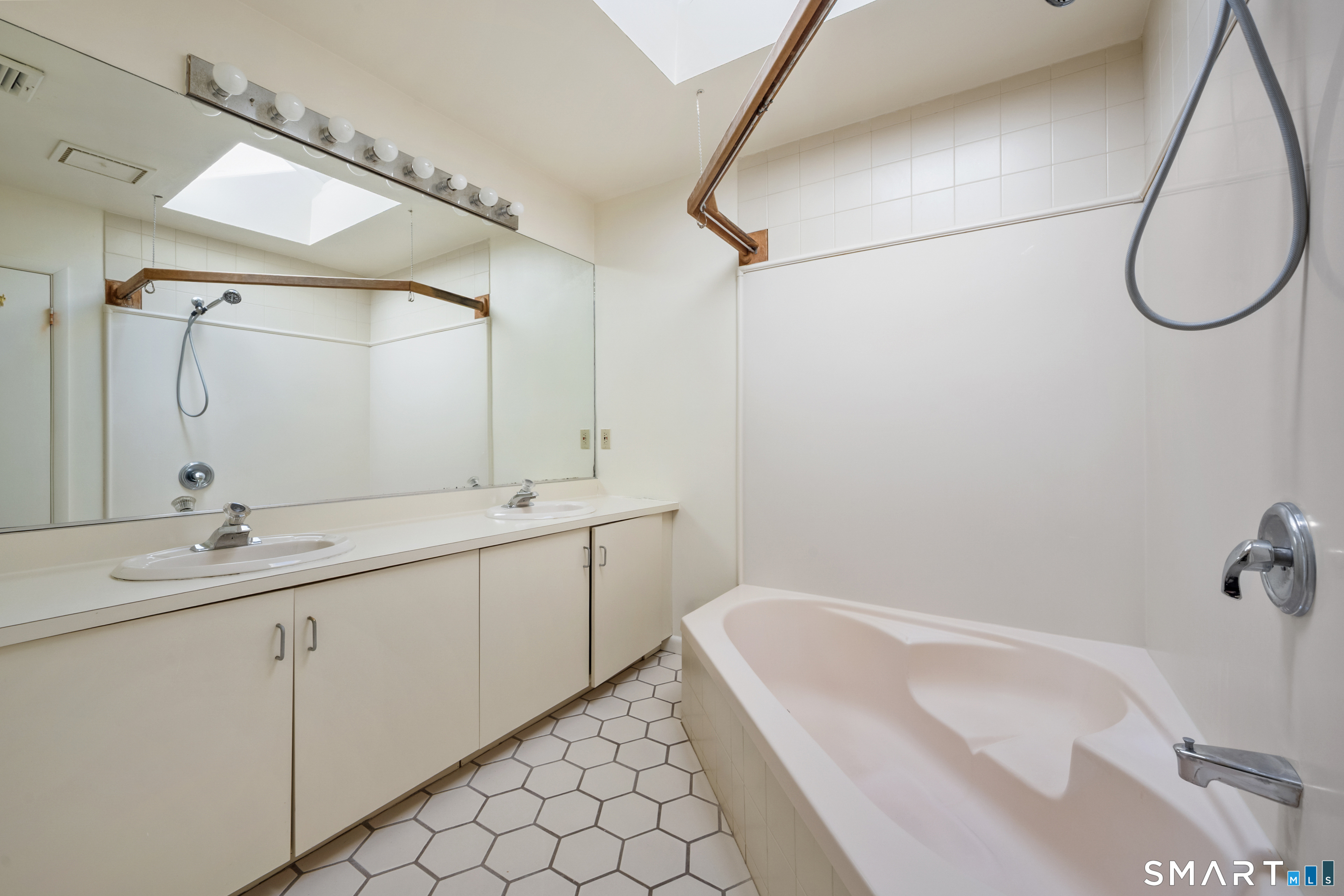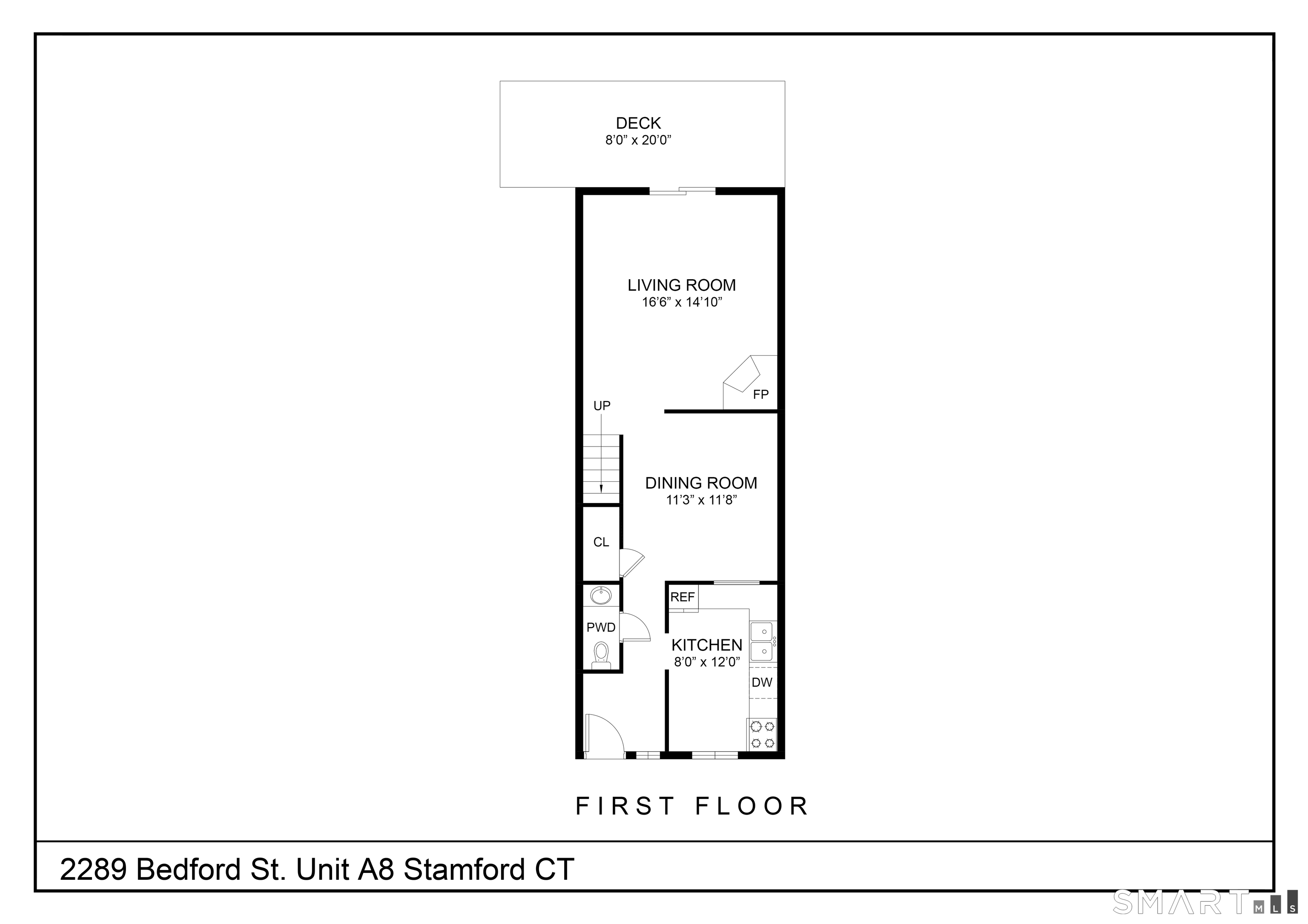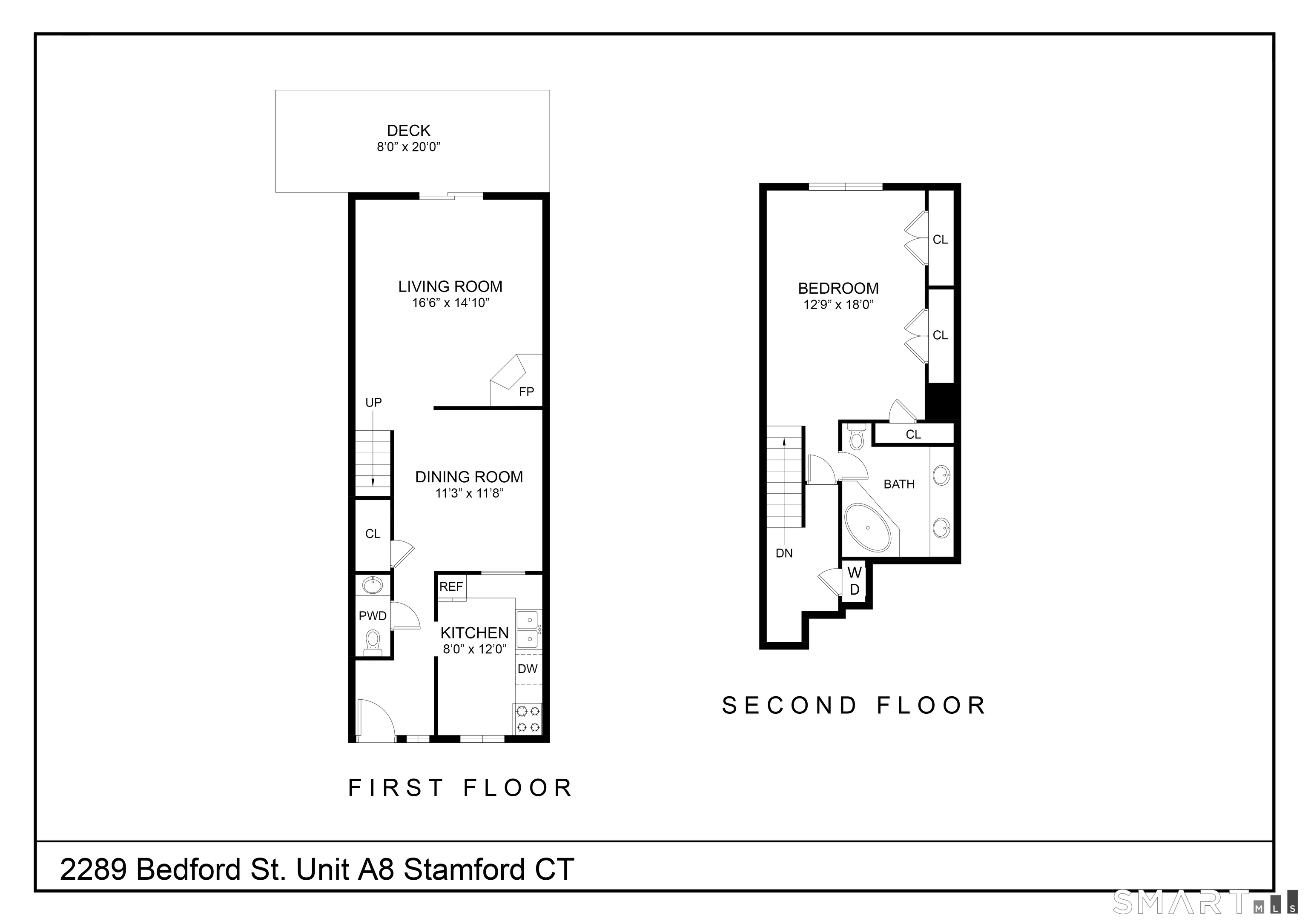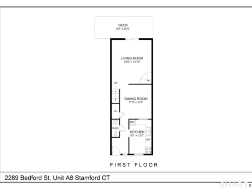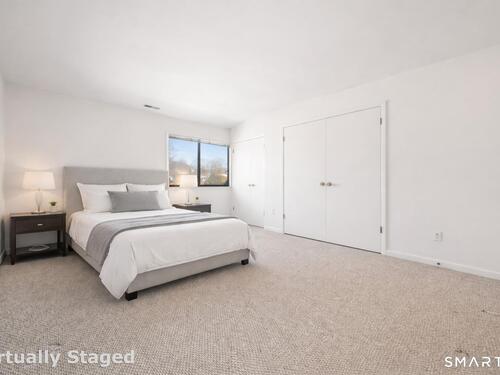 Enjoy gated community living in the heart of Stamford. This 1-bedroom, 1.5-bath townhouse in The Chesterfield. The main level includes a kitchen with an eat in kitchen, cathedral ceilings with a skylight, and a living room featuring a wood-burning fireplace and sliders to a deck-perfect for entertaining-plus a separate dining area and convenient half bath. Upstairs, you'll find a spacious bedroom with generous closets and storage, along with a full bath offering a soaking tub and double vanity. Additional perks include an in-unit washer/dryer, new HVAC, and flexible extra space ideal for guests or a home office. This gated community offers two pools and 24-hour security, with unbeatable access to shopping, transit, I-95, the Merritt Parkway, and downtown Stamford-schedule your private showing before it's gone.