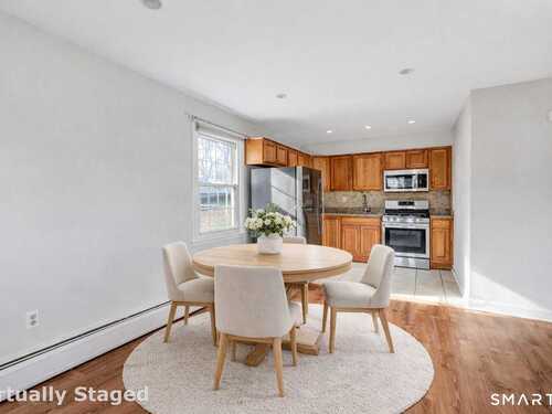 Welcome to the perfect place to call home! This updated Fairfield townhome offers a fabulous alternative to single-family living for first time home buyers, right-sizers or investors. The sun-filled end unit, overlooking a large common lawn framed by mature trees, features gorgeous hardwood floors throughout the living room and bedrooms. A beautiful bay window enhances the Living Room, while the Kitchen boasts granite countertops and updated appliances. A separate dining area overlooks another common green space and opens directly to a private deck. A convenient half bath and in-unit laundry complete the main level. Upstairs, you'll find a spacious primary bedroom, two additional bedrooms, and a beautifully remodeled full bath, fostering an inviting and functional layout ideal for everyday living. Enjoy tranquil private courtyard views from every room, creating a peaceful and inviting atmosphere. Ideally located with easy access to shopping, dining, and services along Black Rock Turnpike, as well as nearby beaches, Fairfield University, Sacred Heart University and I-95. Heat and hot water are included in the HOA fees, adding exceptional value and convenience in a very sought after community. Enjoy the convenience of one reserved parking space located just steps from your door.