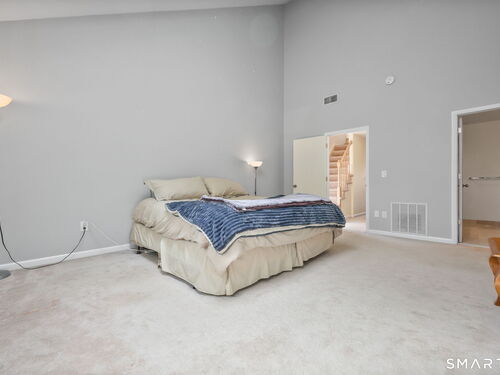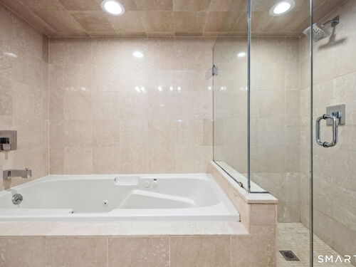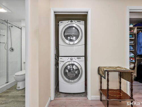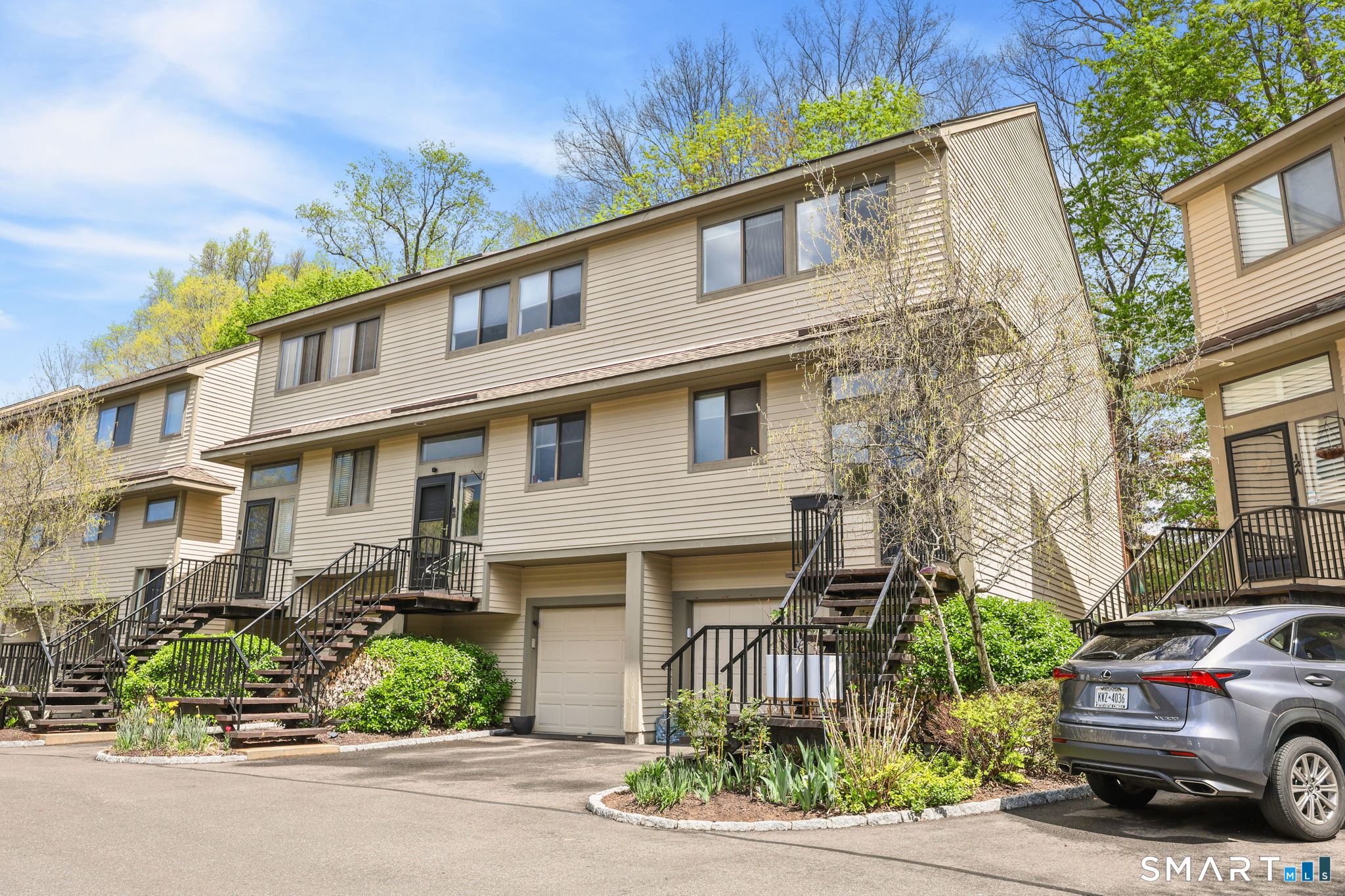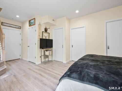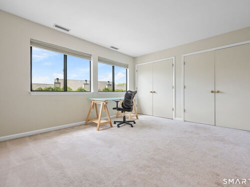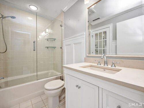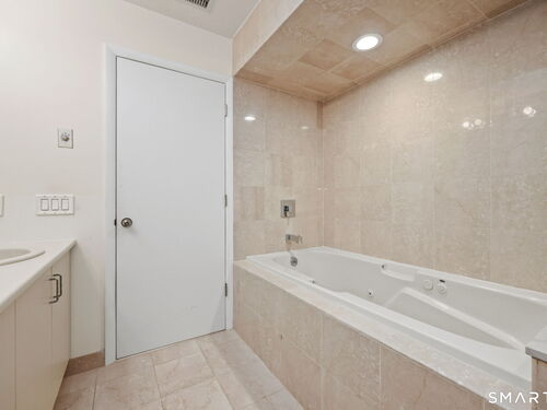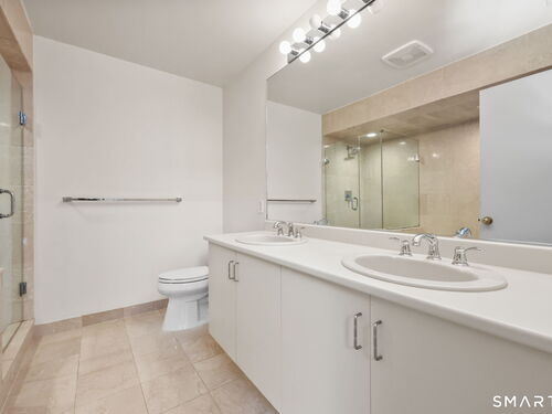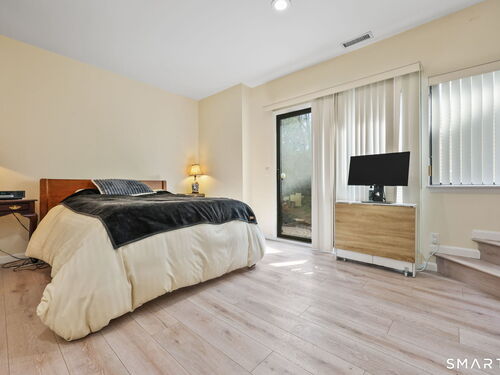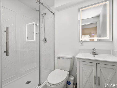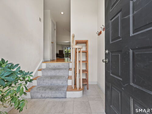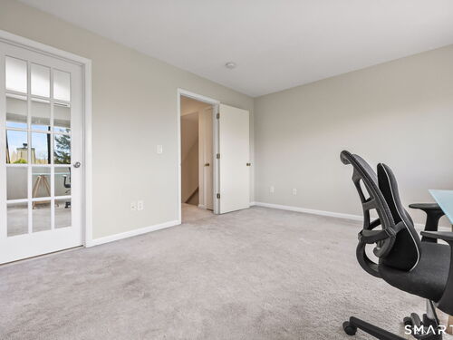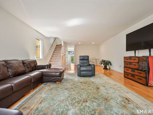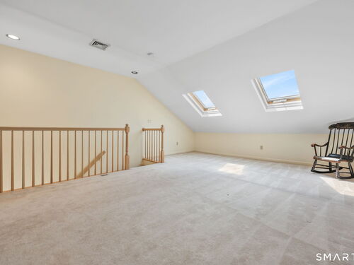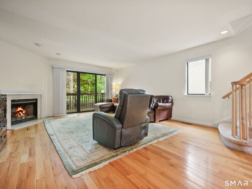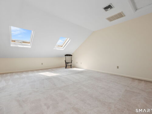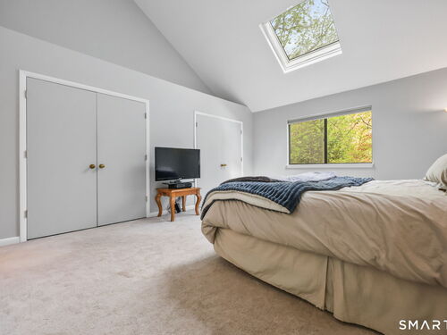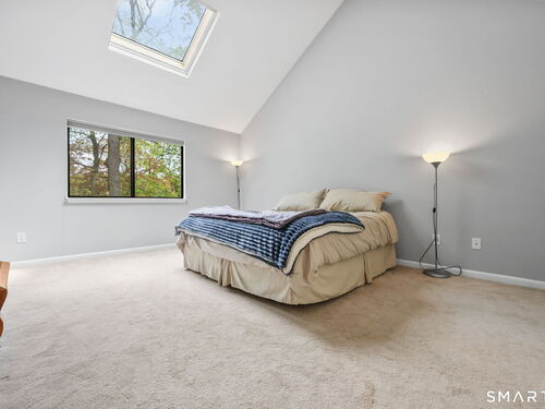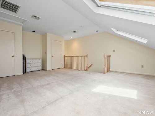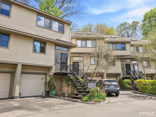 Welcome to this beautifully maintained end-unit townhouse located in the desirable Chesterfield community of Stamford, CT. This spacious home offers 2 bedrooms, 2.5 bathrooms, and a versatile multi-level layout perfect for modern living. The main level features a bright and open living room and dining room combination with hardwood floors and a glass slider leading to a private deck-ideal for relaxing or entertaining. The kitchen is equipped with stainless steel appliances, including a refrigerator and dishwasher, and a convenient half bath completes this level. Upstairs, the second floor is fully carpeted and includes two generously sized bedrooms. The primary suite boasts a full en-suite bathroom with both a shower stall and a jacuzzi tub. The second bedroom features a Jack and Jill bathroom for added convenience. The third floor offers a charming loft space with carpeting and skylights, perfect for a home office, guest area, or additional living space. The finished lower level provides even more flexibility with laminate flooring, a full bathroom, closet space, washer and dryer hookup, and sliders that open to a private patio. This level also offers direct access to a one-car garage. Residents of the Chesterfield community enjoy a quiet setting with amenities including a pool. Conveniently located close to downtown Stamford, shopping, restaurants, hospitals, and with easy access to I-95 and the Merritt Parkway, this home offers both comfort and accessibility