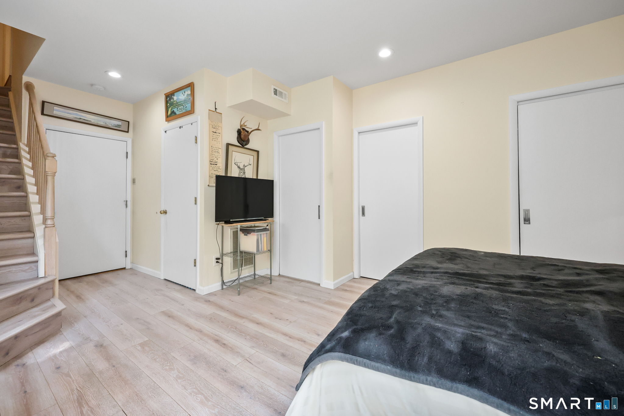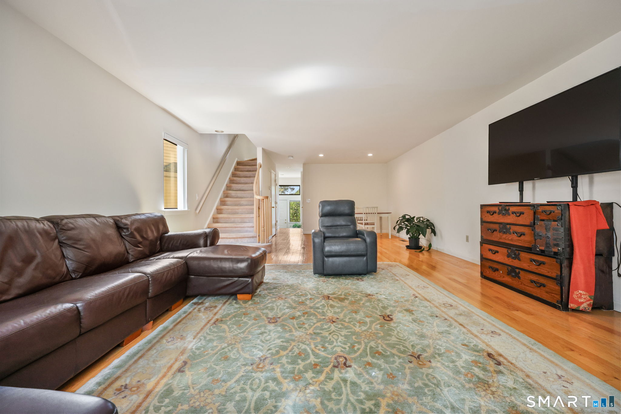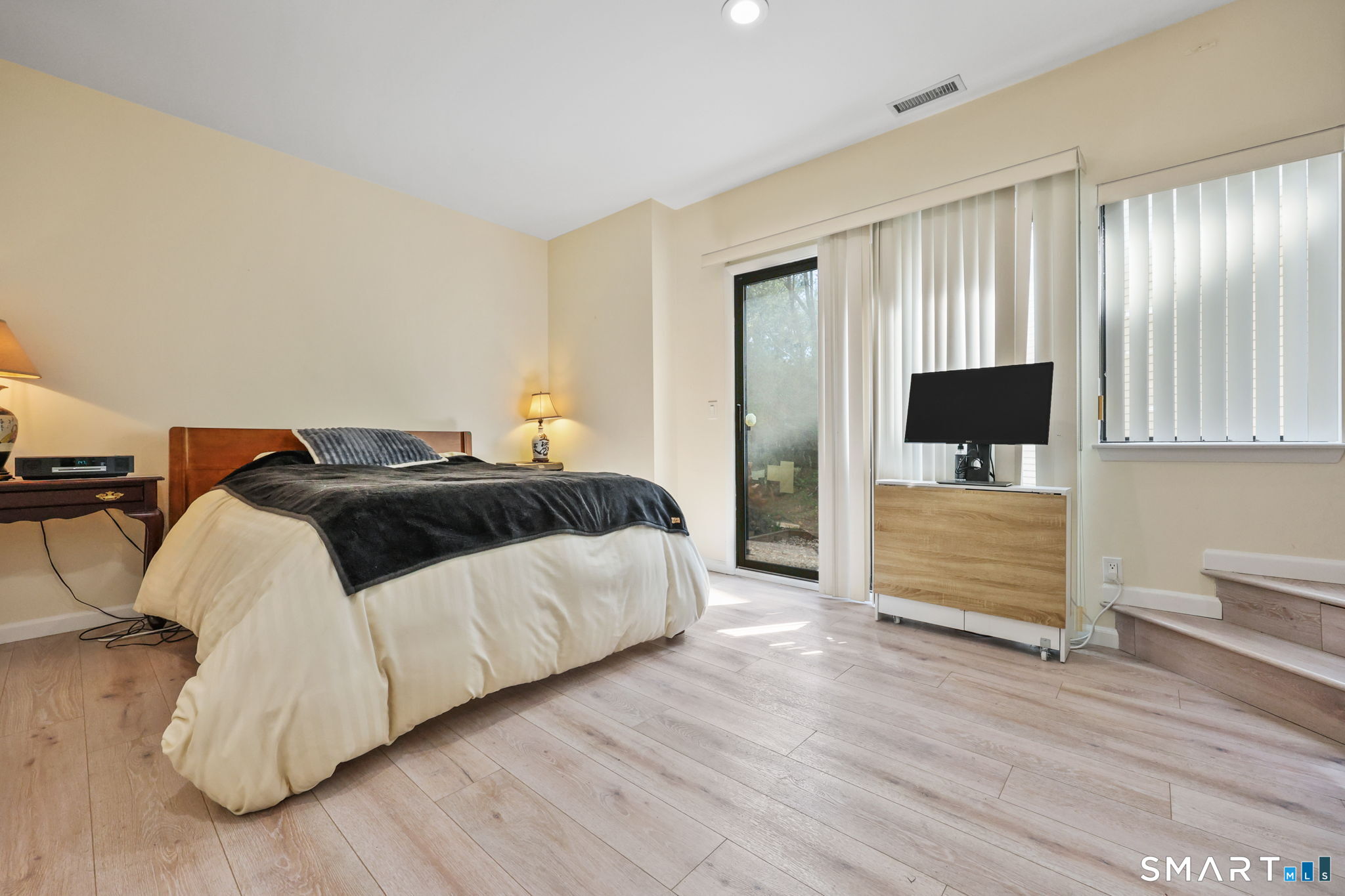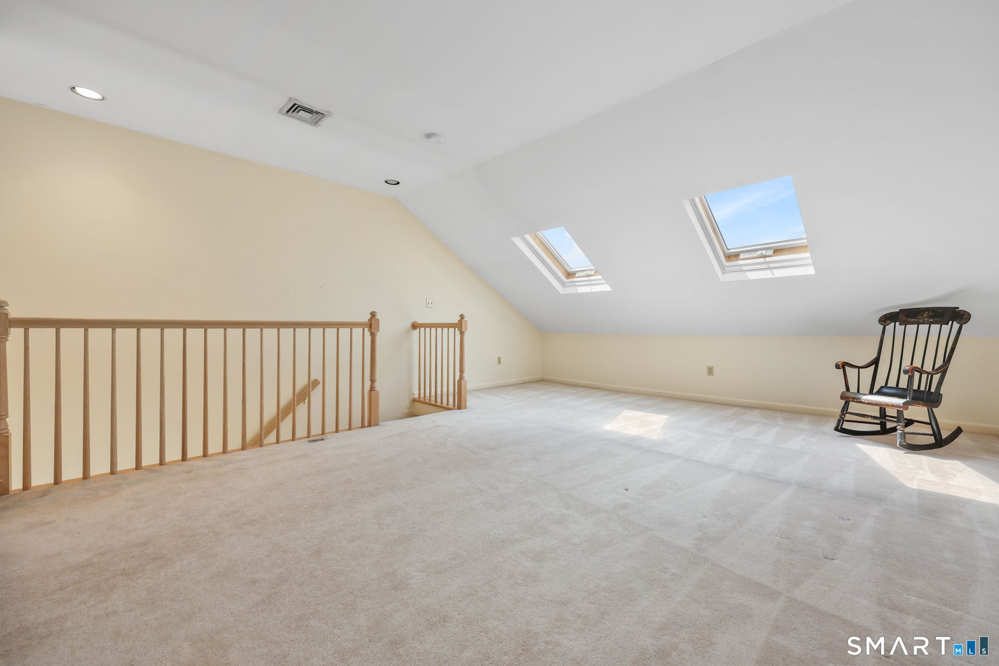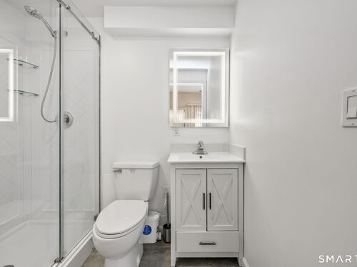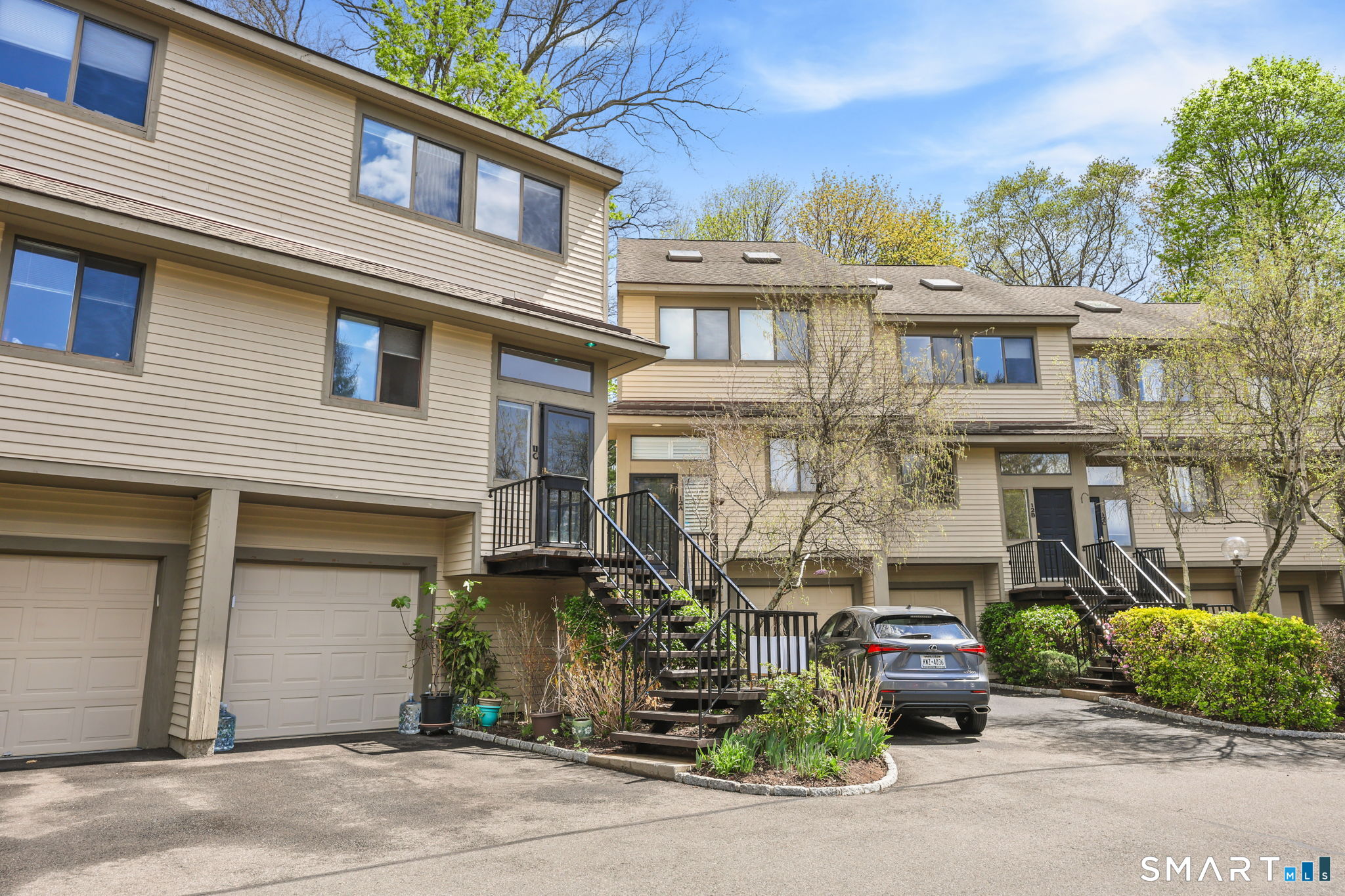 Welcome to this beautifully maintained end-unit townhouse located in the desirable Chesterfield community of Stamford, CT. This spacious home offers 2 bedrooms, 2.5 bathrooms, and a versatile multi-level layout perfect for modern living. The main level features a bright and open living room and dining room combination with hardwood floors and a glass slider leading to a private deck-ideal for relaxing or entertaining. The kitchen is equipped with stainless steel appliances, including a refrigerator and dishwasher, and a convenient half bath completes this level. Upstairs, the second floor is fully carpeted and includes two generously sized bedrooms. The primary suite boasts a full en-suite bathroom with both a shower stall and a jacuzzi tub. The second bedroom features a Jack and Jill bathroom for added convenience. The third floor offers a charming loft space with carpeting and skylights, perfect for a home office, guest area, or additional living space. The finished lower level provides even more flexibility with laminate flooring, a full bathroom, closet space, washer and dryer hookup, and sliders that open to a private patio. This level also offers direct access to a one-car garage. Residents of the Chesterfield community enjoy a quiet setting with amenities including a pool. Conveniently located close to downtown Stamford, shopping, restaurants, hospitals, and with easy access to I-95 and the Merritt Parkway, this home offers both comfort and accessibility