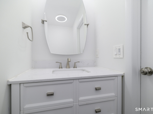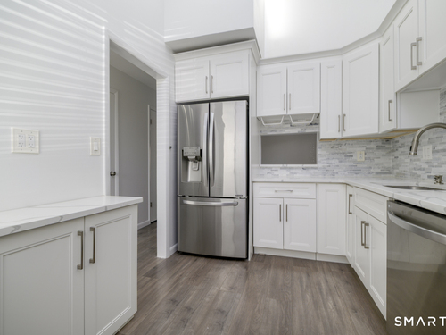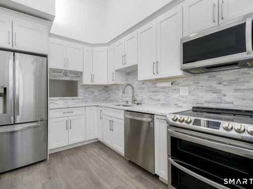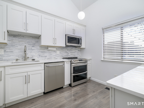 Prime location meets modern living in this completely updated 1-bedroom, 1.5-bath townhouse at The Chesterfield. The main level features a renovated kitchen with high-end stainless steel appliances, cathedral ceilings with a skylight, and a living room with a wood-burning fireplace, recessed lighting, and sliders to an oversized deck ideal for entertaining, along with a separate dining area and half bath. Upstairs offers a bright and spacious bedroom with abundant closet and storage space, plus a spa-like full bath with floor-to-ceiling tile, soaking tub, separate shower, double vanity, quiet fan with Bluetooth speaker, and top-of-the-line finishes. Additional highlights include in-unit washer and dryer and extra space for guests or a home office. This gated Chesterfield community offers two swimming pools, 24-hour security, and exceptional convenience to shopping, transportation, I-95, the Merritt Parkway, and vibrant downtown Stamford-schedule your private showing before it's gone.