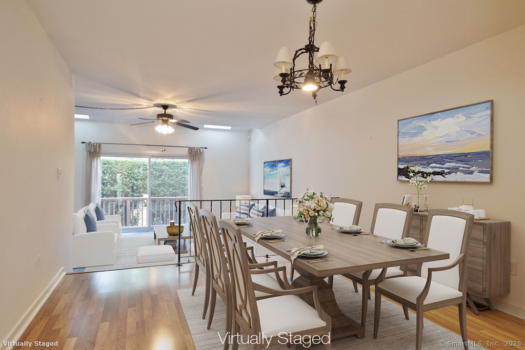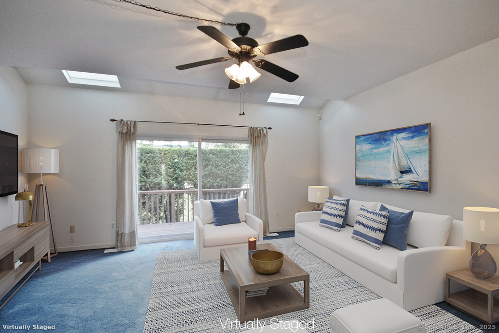 Rare opportunity to purchase this beautiful tri-level Townhouse in Fairfield w/minimal expenses. Brand New Roof 8/2025, New Living Room Skylights 8/2025, New Siding 2024, No assessments, Low HOA $375/mo. The unit offers: a bright & sunny eat-in-kitchen w/plenty of cabinet storage, a Dining Room that seats a minimum of 8 w/room for breakfront/server and more, a spacious sunken light-filled Living Room w/high ceilings & skylights - large sliders bringing in fabulous natural light and access to the private deck. The main level also offers a roomy pantry (or coat closet) and Powder Room. Upstairs you'll find two sizeable Bedrooms, Laundry and Full Bath w/Access to both the Primary & 2nd Bedroom. The Primary Bedroom offers 2 Double Closets. The lower level provides a versatile recreation area plus storage and utilities. 2 Dedicated parking spots come with the unit. All this in a prime location -close to shopping, restaurants, beaches, parks, train station and major parkways!