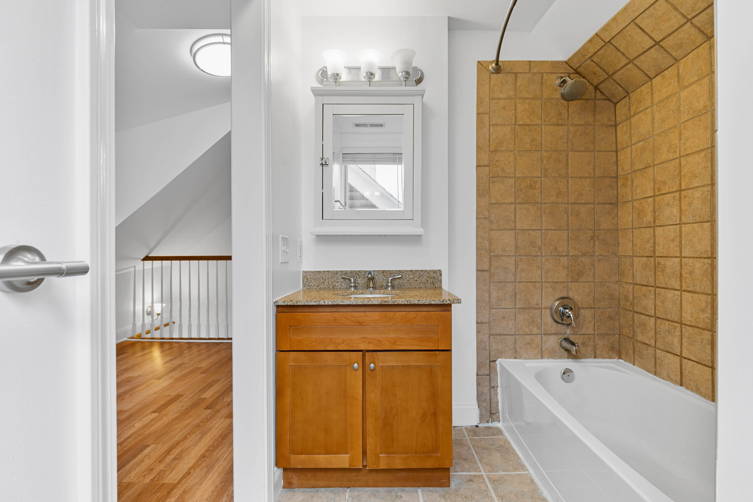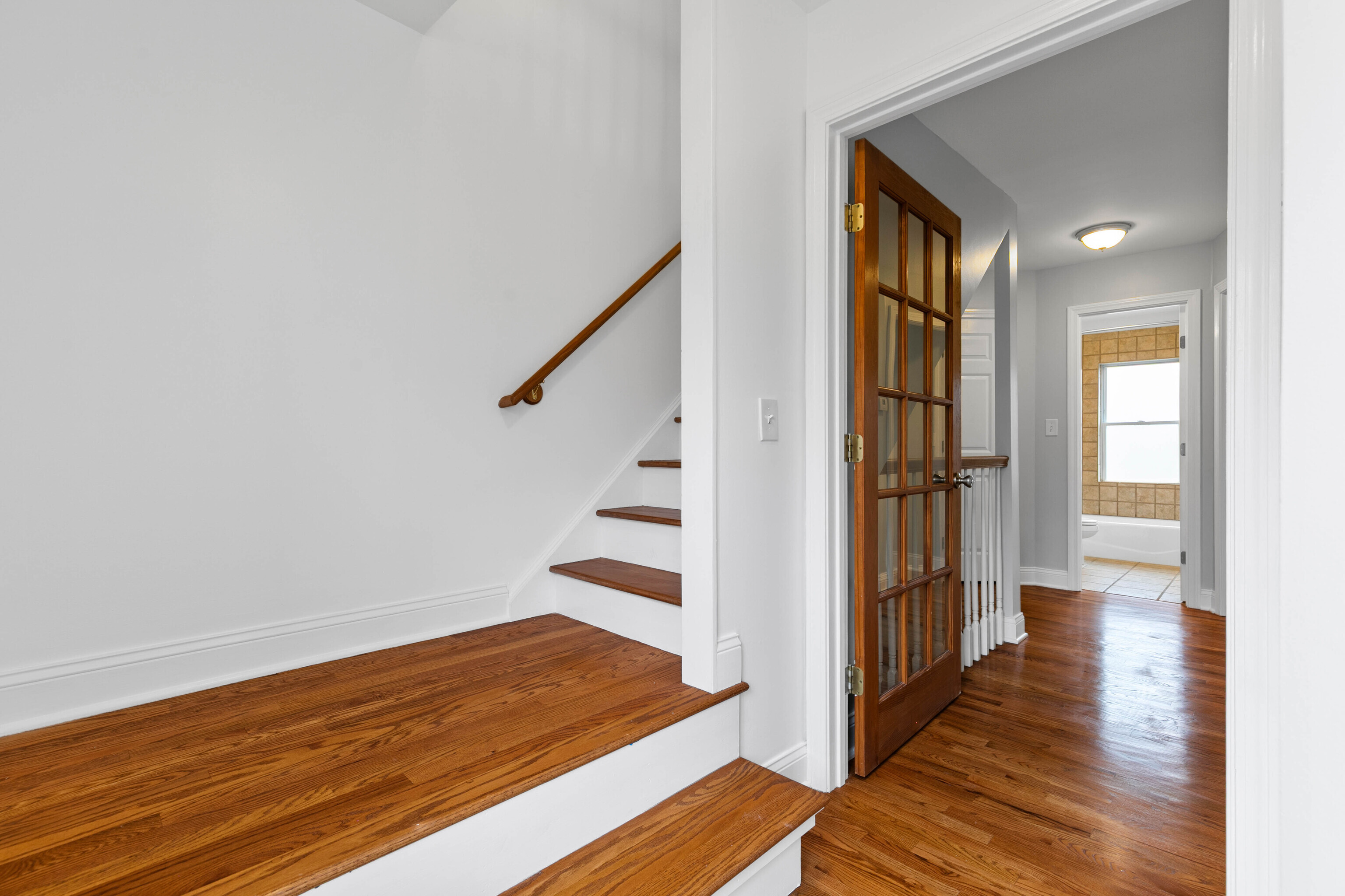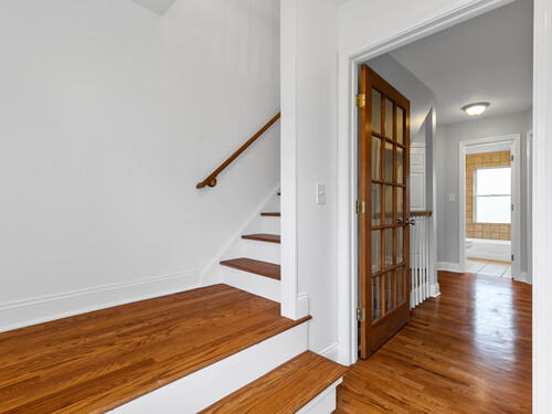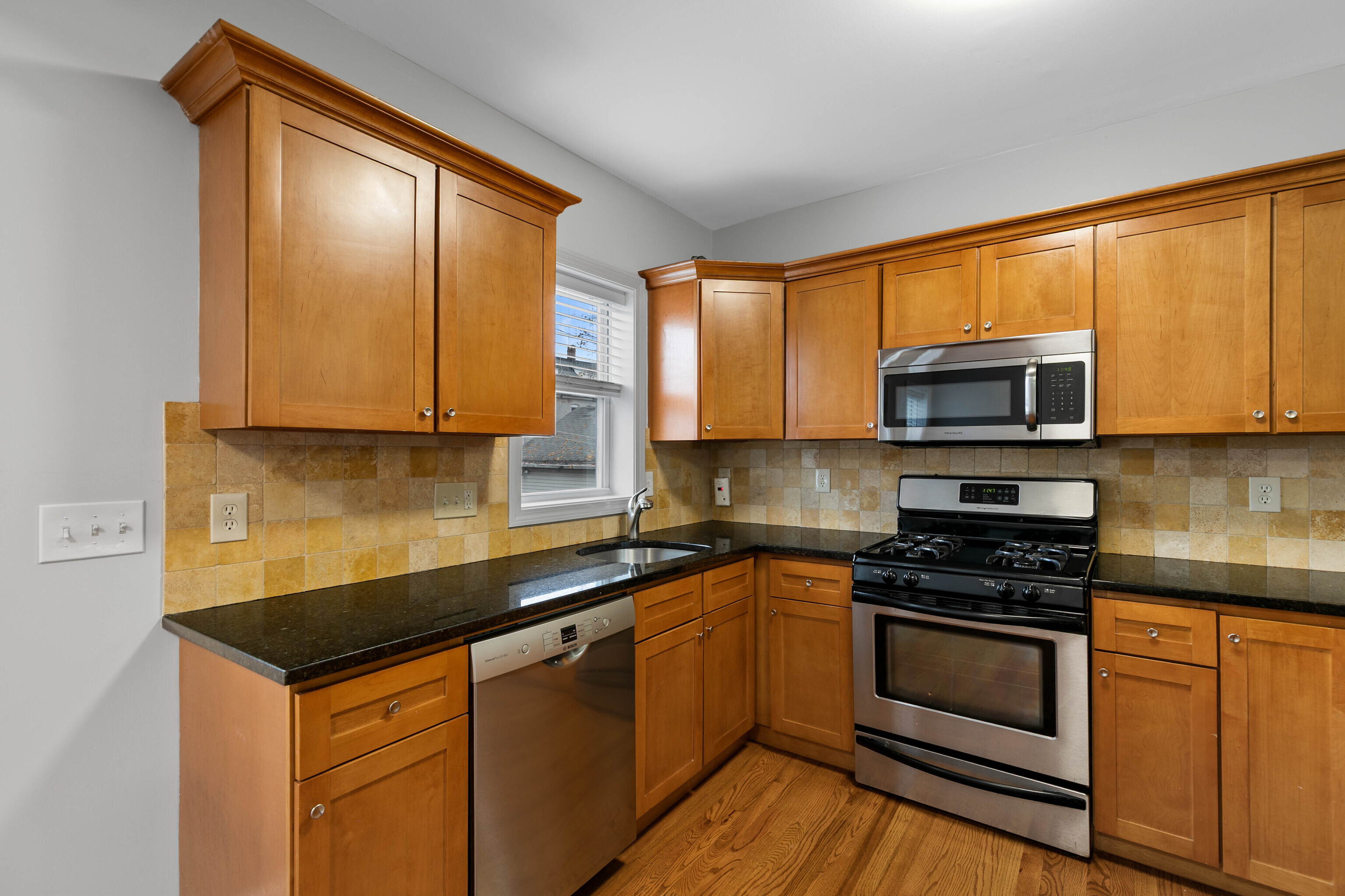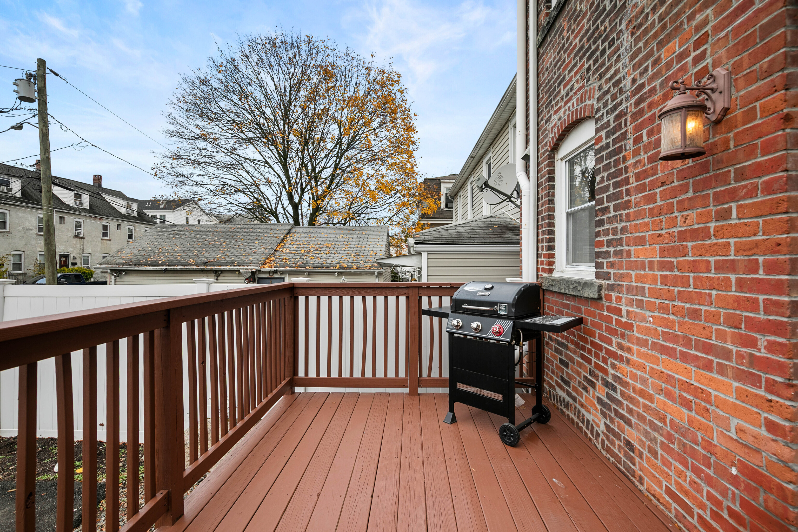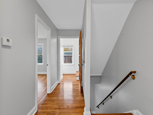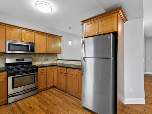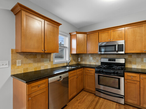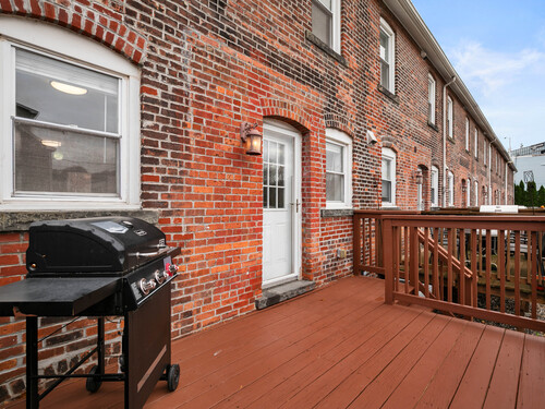 Welcome to this beautifully maintained brick style townhome offering a perfect blend of style, function, and comfort. Step inside to find hardwood floors that flow seemlessly throughout the open-concept main level. The living room connects effortlessly to the kitchen, featuring a breakfast bar, granite counter tops, and stainless steel appliances. From the kitchen, step out onto your own private deck perfect for relaxing, grilling, or having your morning coffee. Upstairs on the second floor, you will find two spacious bedrooms that share a full bathroom. The third floor space is dedicated to the primary bedroom suite complete with built-ins and its own private bath, making this the perfect retreat. The partially finished basement is perfect for extra living space and includes extra storage for added convenience. With it's classic brick exterior and location less than a mile from the train station, this turn key home is ready for you to move in and make yours.