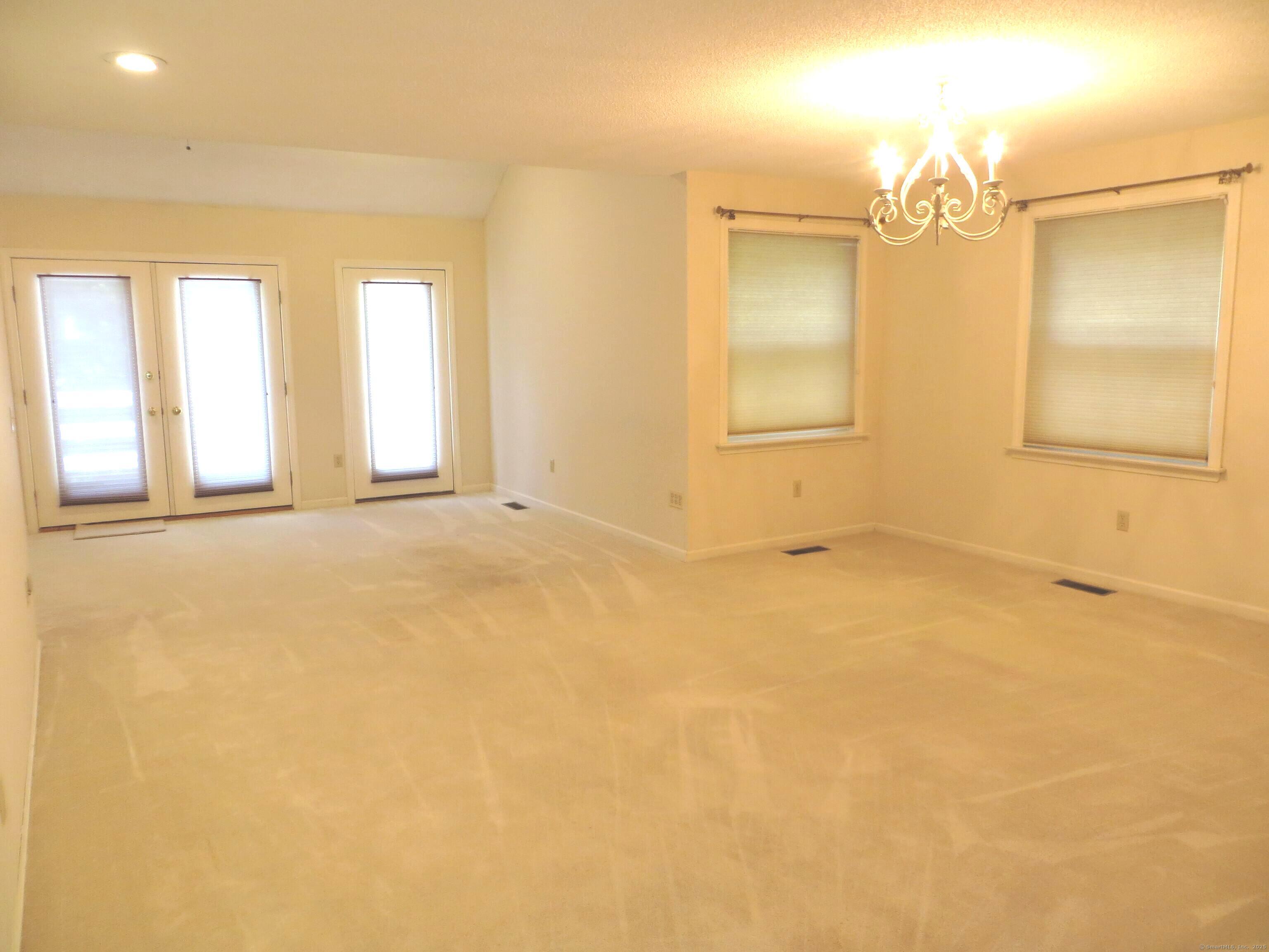 Welcome to Meadow Lake, a quiet, treed, highly-sought after condominium community located in the Huntington section of Shelton. This spacious end unit offers a main level primary bedroom with walk in closet, a second bedroom/office, one full bath and a half-bath along with an open concept dining/living room area with fireplace, cathedral ceilings and French doors leading to a deck. Perfect for entertaining. An eat-in kitchen with Pantry closet and foyer complete the first floor. Second floor features a large bedroom space with full bath and walk-in closet. The huge unfinished basement, with walk-out to a patio area, provides an incredible amount of storage or can be remodeled into additional living space. The attached single car garage completes the picture with easy access to the main level. Highlights also include city water and sewer, central vacuum, energy efficient windows, and newer mechanical systems. Attractively priced with your improvements in mind, 27 Meadow Lake is an ideal location in a quiet community close to schools, employers, houses of worship, shopping, parks, and major commuter routes, including RT 8 and the Merritt Parkway. Enjoy Shelton's low taxes and tranquil, country living while being close to it all. Listing agent is executor for seller's estate.