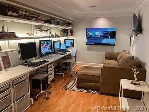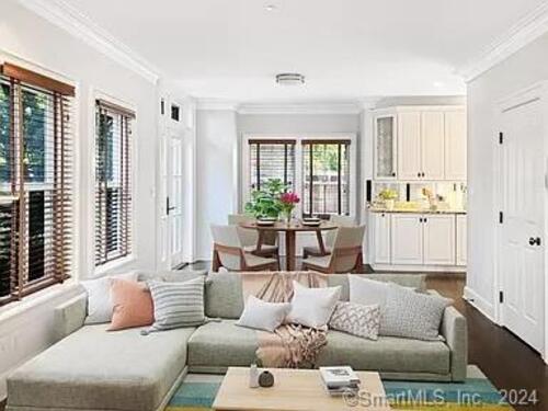 7 min walking distance to Metro North train station! 4BR, 4.5 Bath Luxury Four-story Condo locates at downtown Greenwich. Top floor - 1b/1b with sky windows full of nature lights. plus an extra office space or can be used as gym room; 2nd floor - 2b/2b, The Primary suite has custom designed walking in closet/dressing room and jacuzzi bath with gas fireplace; Guest room also has full bath with dress room. 1st fl - open floor plan, Gourmet kitchen has granite counter top & stainless appliances. Open living room and dining room layout, with wood-burning fireplace and French door leading to private outdoor terrace area designed for BBQ & relaxation; Lower level - 4th bedroom with a walk-in closet and full bath. There is a 2nd Media room provides a peaceful escape for family and friends. 3rd room with gas fire place as family room completes the lower level; Only 4 units in the Victoria Garden, hardwood throughout, fully fenced and convenient to downtown/Greenwich Ave/Metro North/Schools/Bruce park.