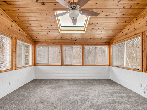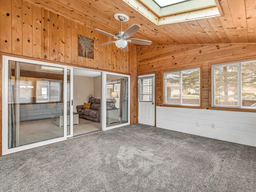Skylight, Ceiling Fan, Sliders, Wall/Wall Carpet