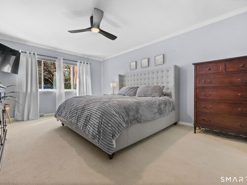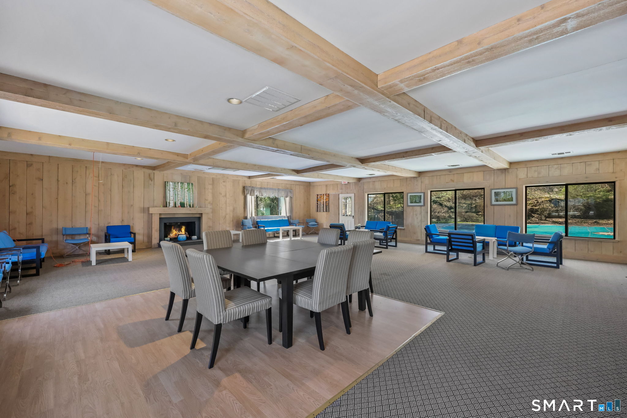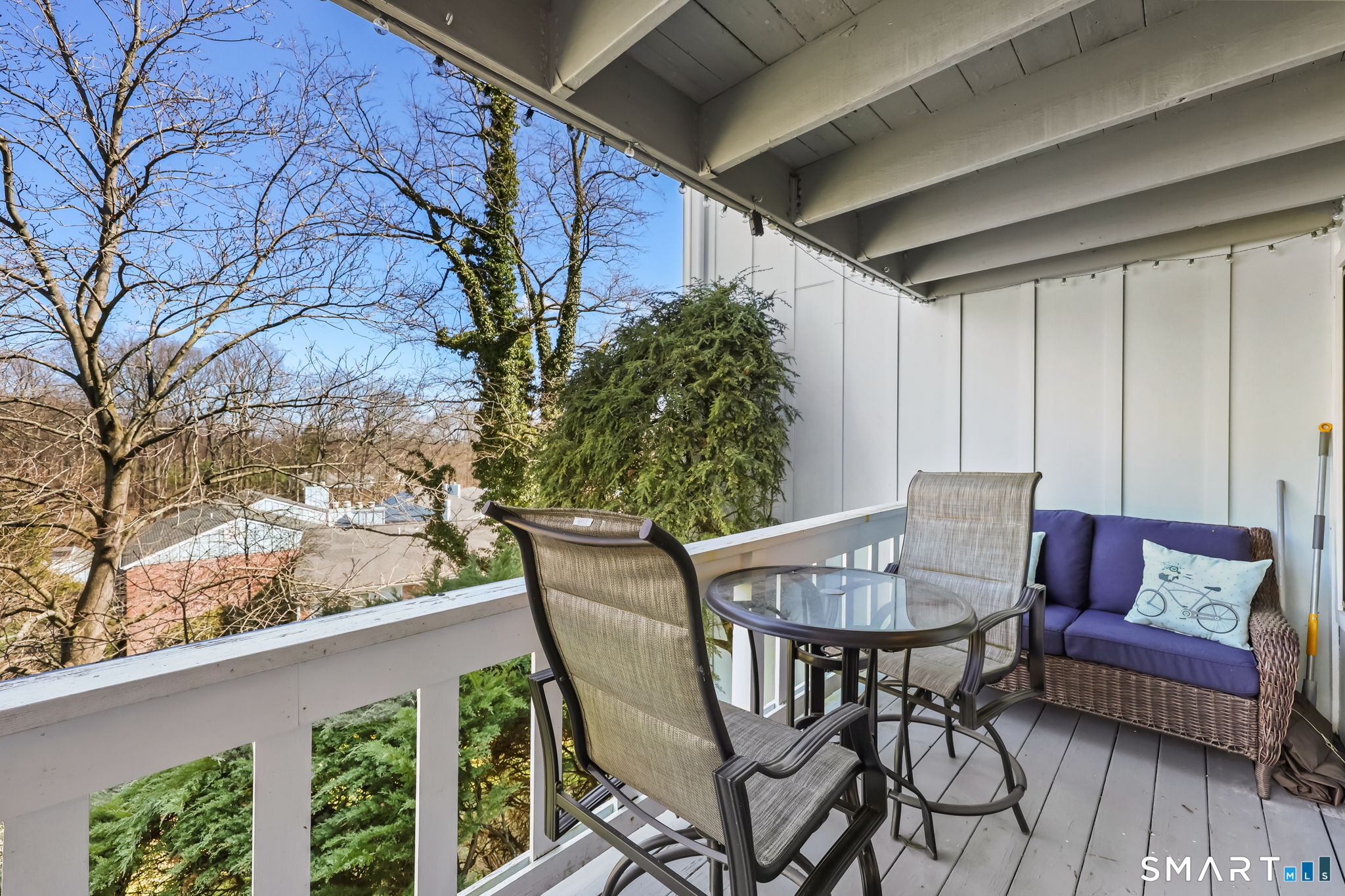 A wonderful lifestyle awaits at Birchwood Condominiums, where low-maintenance living meets exceptional convenience. Ideally located on the Westport-Norwalk border, this sun-filled 3-bedroom, 2-bath residence offers a rare combination of privacy, natural beauty, and walkable access to everyday essentials, including Whole Foods just across the street. Set at the top of Hills Lane in a peaceful, secluded setting, the home enjoys tranquil treetop views with seasonal glimpses of Long Island Sound. The spacious living and dining areas feature a wood-burning fireplace and open to a private deck, perfect for relaxing or entertaining. The eat-in kitchen includes a generous pantry and has been updated with a GE appliance package (2020), Moen fixtures, and a new garbage disposal. Recent improvements enhance comfort and style throughout, including new windows and sliding door (2020), new HVAC (2020), and 2025 updates featuring new ceiling fans, light fixtures, hall bath vanity, fixtures, mirror, and Kohler toilets. The primary suite includes a dressing area, while two additional bedrooms offer flexibility for guests or home office. Additional highlights include a reserved covered parking space, private storage unit, and convenient access to the pool and clubhouse. Enjoy a Westport mailing address with Norwalk taxes, schools, and amenities, all just minutes to downtown Westport, beaches, train, and dining.