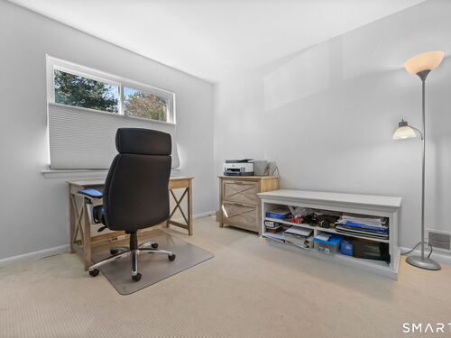 A wonderful lifestyle awaits at Birchwood Condominiums, where low-maintenance living meets exceptional convenience. Ideally located on the Westport-Norwalk border, this sun-filled 3-bedroom, 2-bath residence offers a rare combination of privacy, natural beauty, and walkable access to everyday essentials, including Whole Foods just across the street. Set at the top of Hills Lane in a peaceful, secluded setting, the home enjoys tranquil treetop views with seasonal glimpses of Long Island Sound. The spacious living and dining areas feature a wood-burning fireplace and open to a private deck, perfect for relaxing or entertaining. The eat-in kitchen includes a generous pantry and has been updated with a GE appliance package (2020), Moen fixtures, and a new garbage disposal. Recent improvements enhance comfort and style throughout, including new windows and sliding door (2020), new HVAC (2020), and 2025 updates featuring new ceiling fans, light fixtures, hall bath vanity, fixtures, mirror, and Kohler toilets. The primary suite includes a dressing area, while two additional bedrooms offer flexibility for guests or home office. Additional highlights include a reserved covered parking space, private storage unit, and convenient access to the pool and clubhouse. Enjoy a Westport mailing address with Norwalk taxes, schools, and amenities, all just minutes to downtown Westport, beaches, train, and dining.