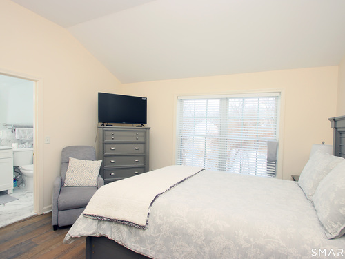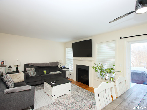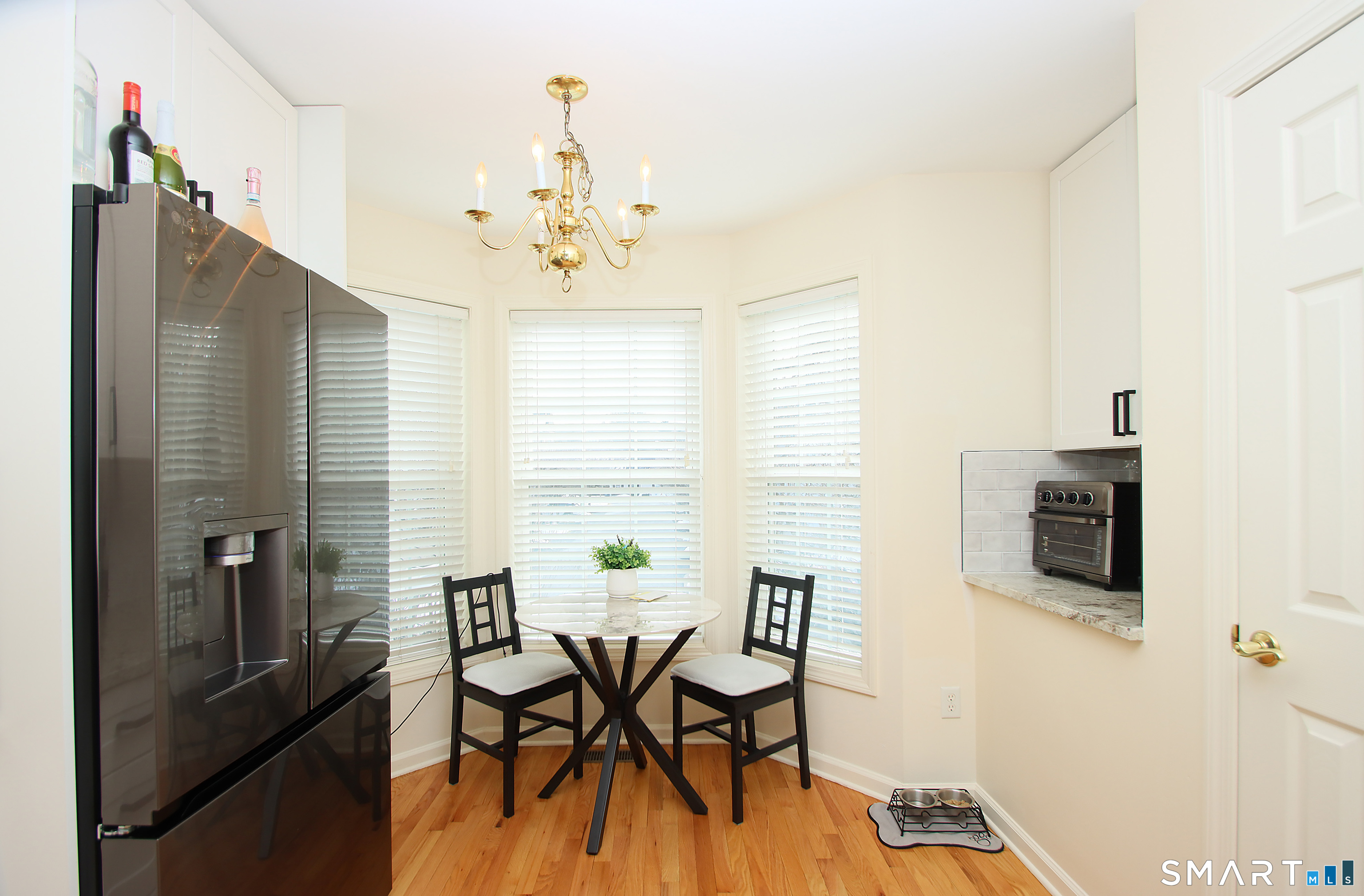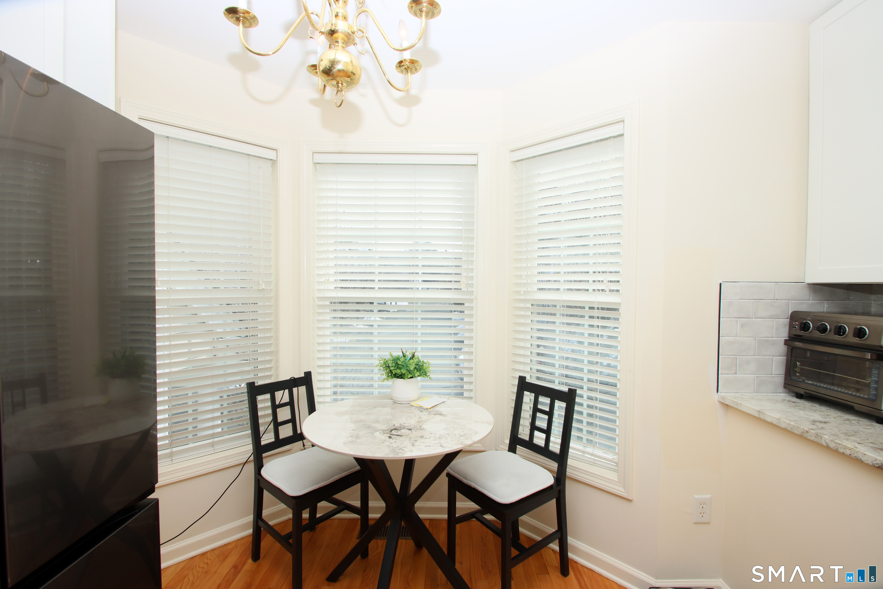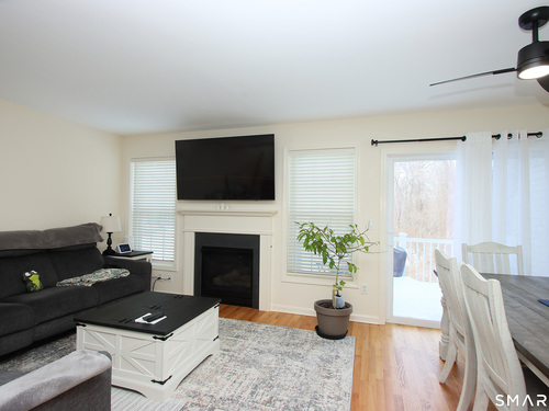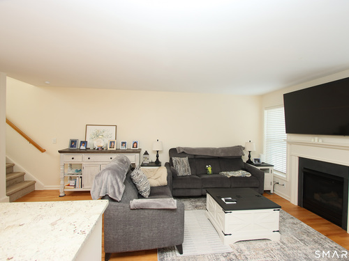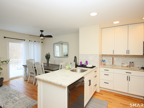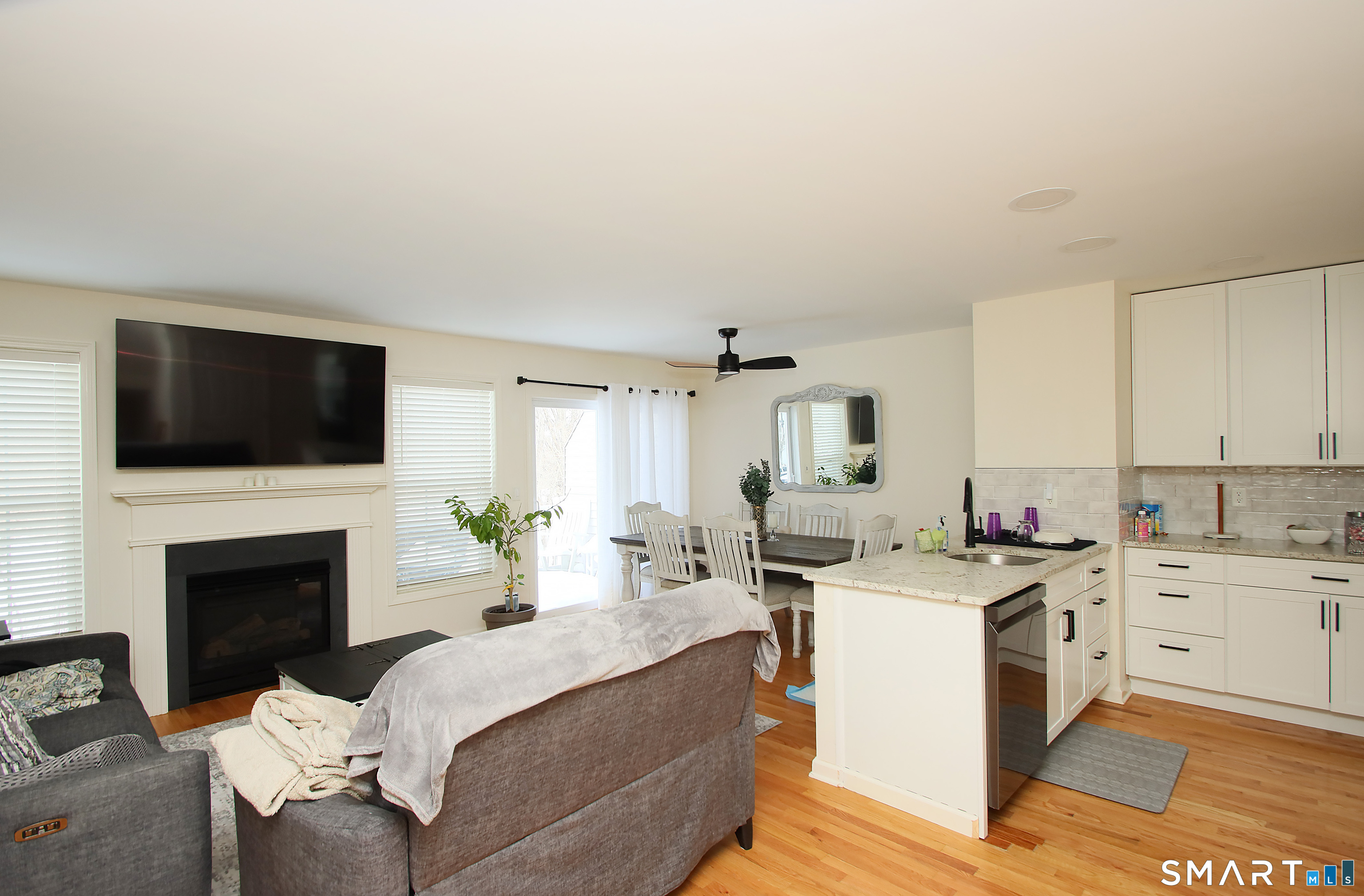 Welcome to this beautifully maintained townhouse-style condo in Arlington Woods, where comfort, space, and thoughtful updates come together seamlessly. A welcoming entry foyer with hardwood flooring leads you up to the main living level featuring an open-concept living and dining area with rich hardwood floors and a convenient natural-gas switch-on fireplace. Sliding doors off the dining room open to a private deck-perfect for relaxing or entertaining. The fully remodeled kitchen showcases brand-new appliances, abundant cabinetry, a pantry closet, and an extended countertop ideal for seating. A charming bow bay window creates the perfect nook for your breakfast table while filling the space with natural light. Brand-new carpeting spans the stairs and entire second floor, where a bright landing with oversized double windows enhances the airy feel. The spacious primary bedroom offers a vaulted ceiling, walk-in closet, and direct access to a full bath featuring double vanity sinks and a tub/shower with crisp white tile flooring. The versatile lower level provides excellent additional living space, ideal for a family room or home office, with double windows and sliders leading to a patio. An attached oversized garage offers extra room for shelving and storage solutions. Residents enjoy access to the Arlington Woods clubhouse amenities, including a great room, kitchenette, meeting/game room, pool, and play area-adding lifestyle convenience to this inviting home.