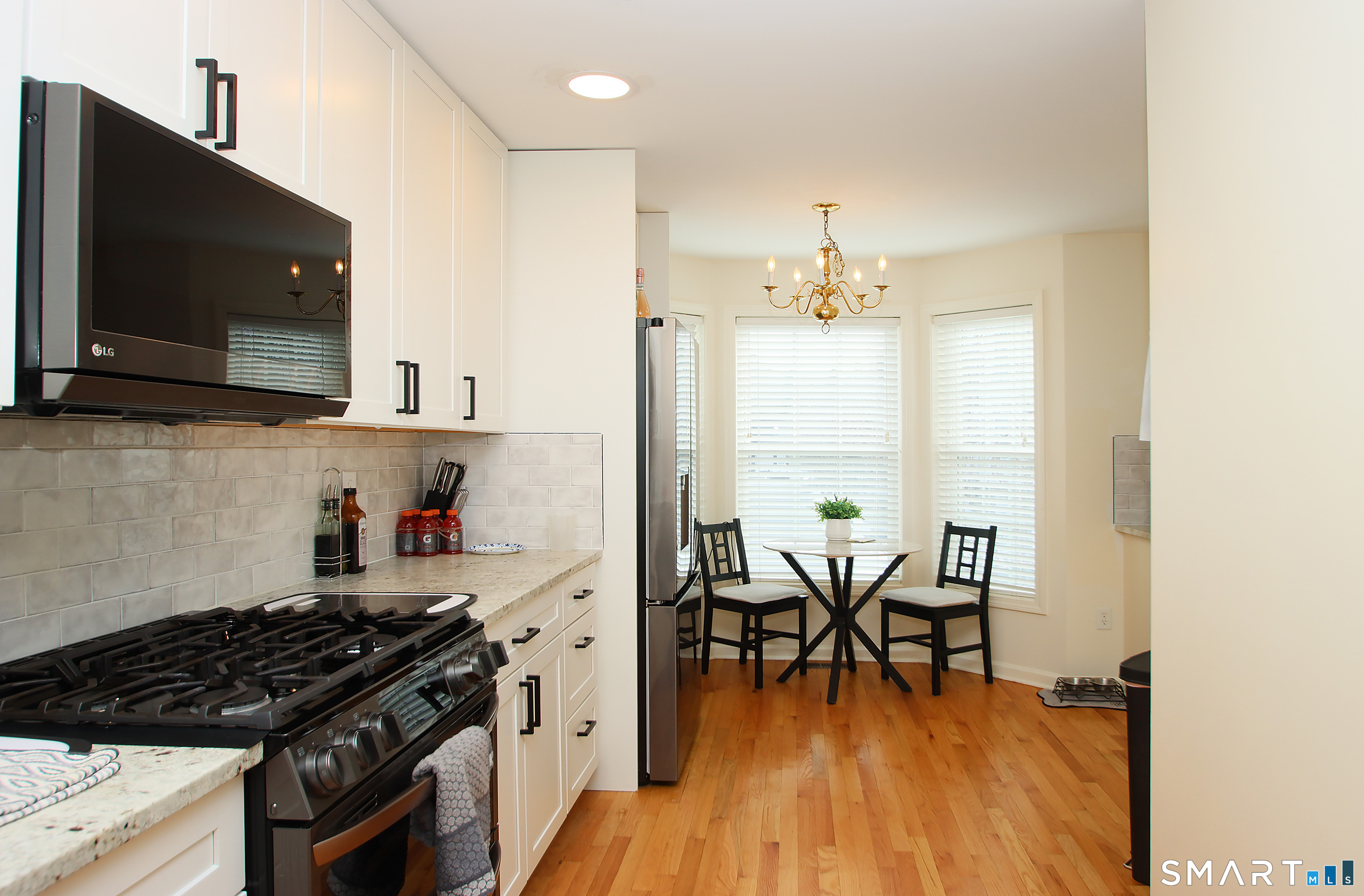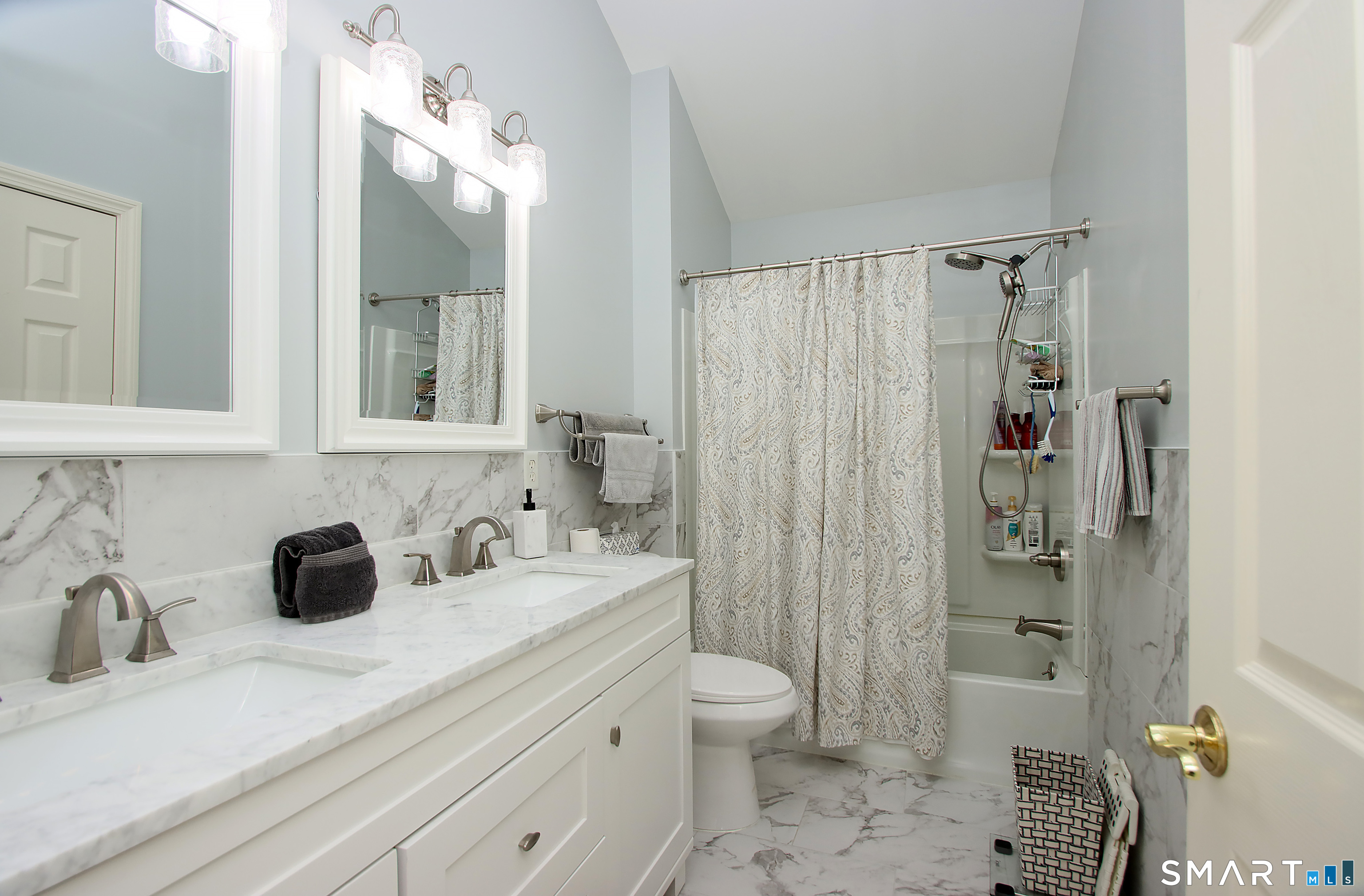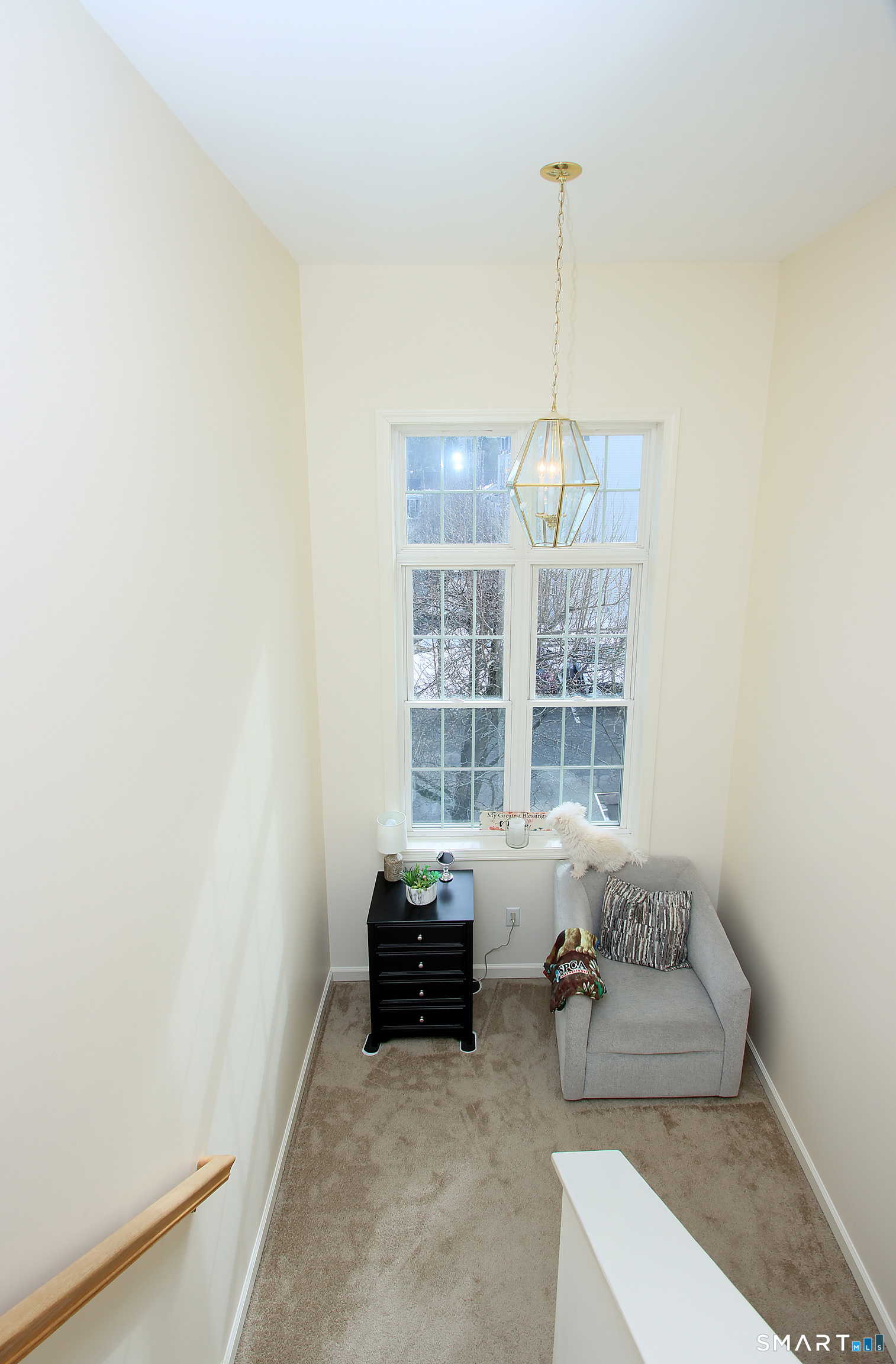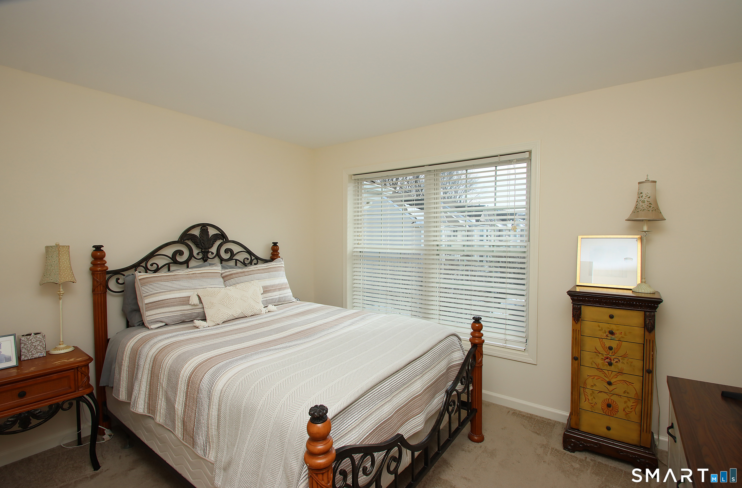 Welcome to this beautifully maintained townhouse-style condo in Arlington Woods, where comfort, space, and thoughtful updates come together seamlessly. A welcoming entry foyer with hardwood flooring leads you up to the main living level featuring an open-concept living and dining area with rich hardwood floors and a convenient natural-gas switch-on fireplace. Sliding doors off the dining room open to a private deck-perfect for relaxing or entertaining. The fully remodeled kitchen showcases brand-new appliances, abundant cabinetry, a pantry closet, and an extended countertop ideal for seating. A charming bow bay window creates the perfect nook for your breakfast table while filling the space with natural light. Brand-new carpeting spans the stairs and entire second floor, where a bright landing with oversized double windows enhances the airy feel. The spacious primary bedroom offers a vaulted ceiling, walk-in closet, and direct access to a full bath featuring double vanity sinks and a tub/shower with crisp white tile flooring. The versatile lower level provides excellent additional living space, ideal for a family room or home office, with double windows and sliders leading to a patio. An attached oversized garage offers extra room for shelving and storage solutions. Residents enjoy access to the Arlington Woods clubhouse amenities, including a great room, kitchenette, meeting/game room, pool, and play area-adding lifestyle convenience to this inviting home.