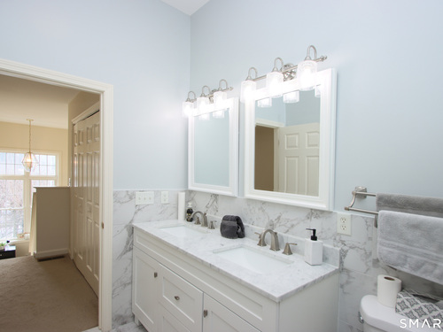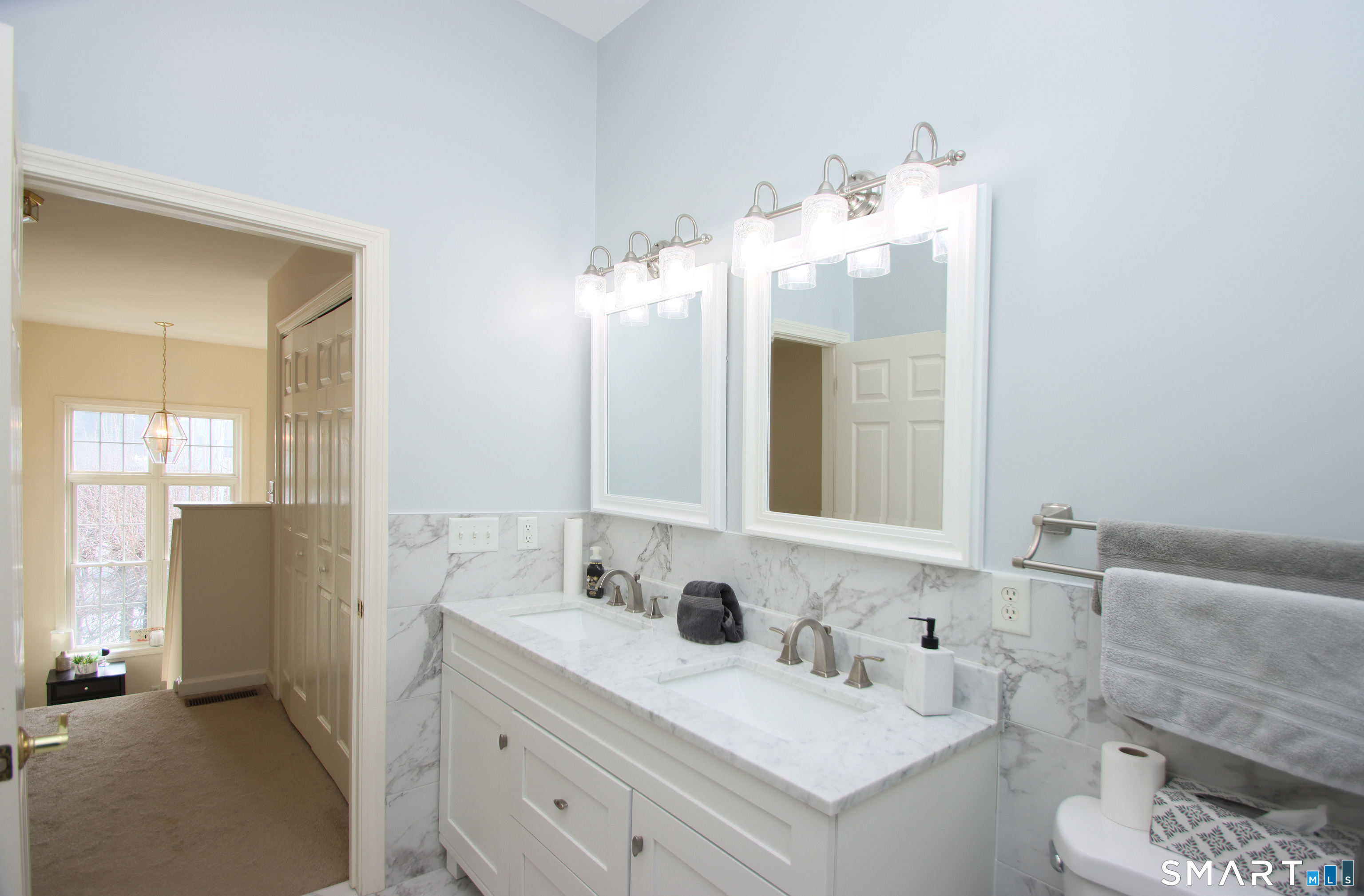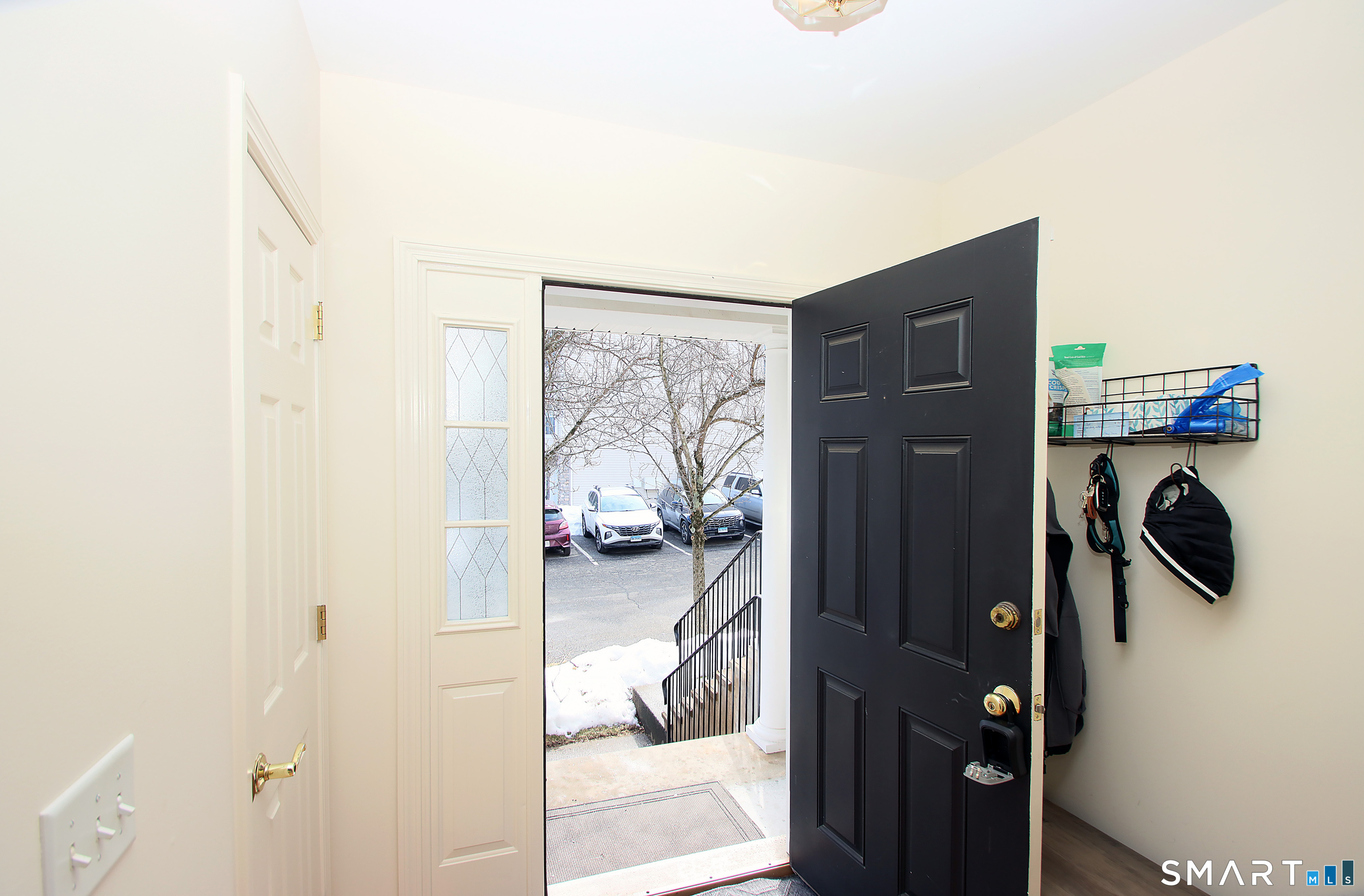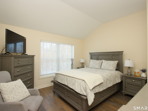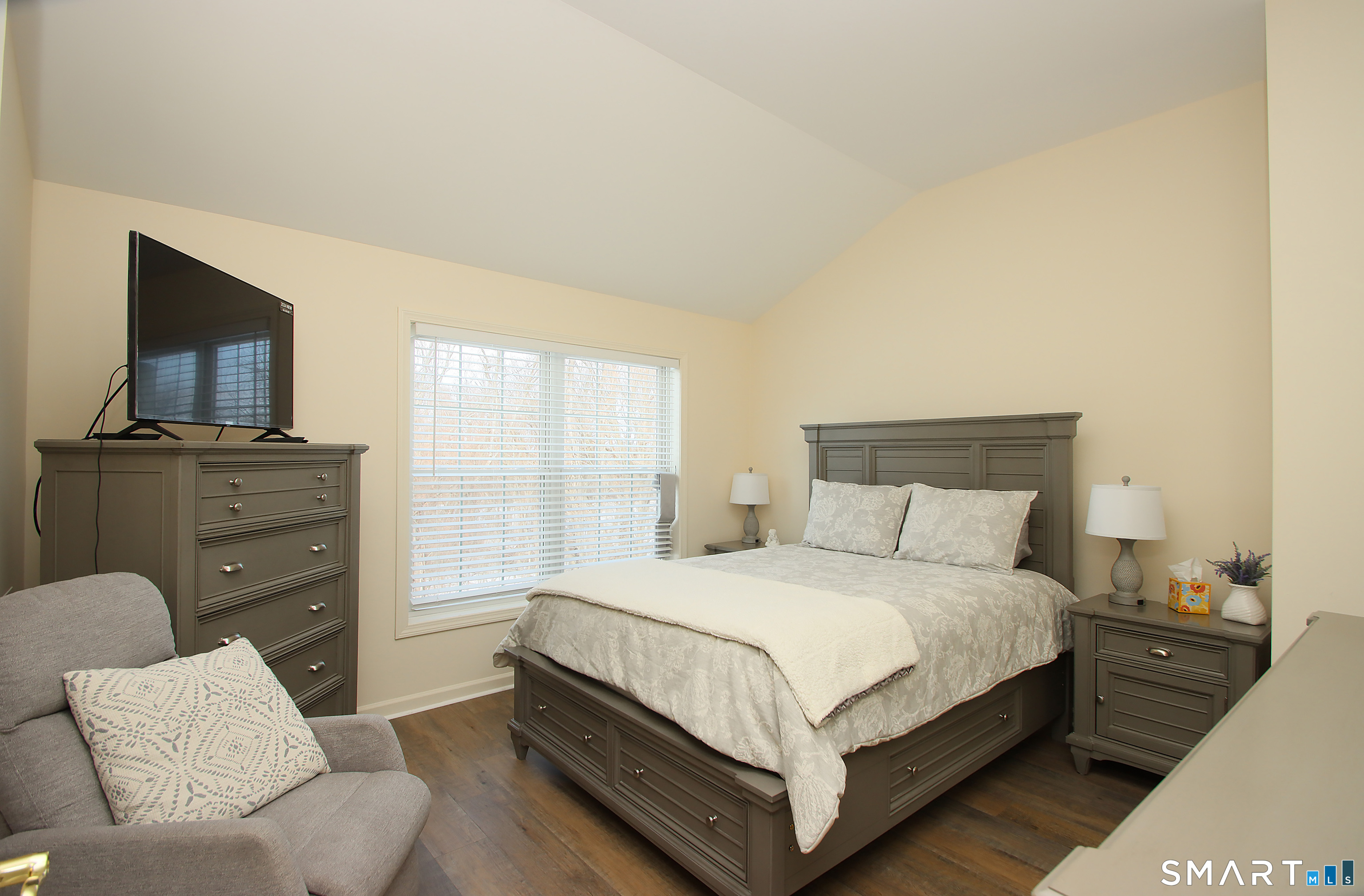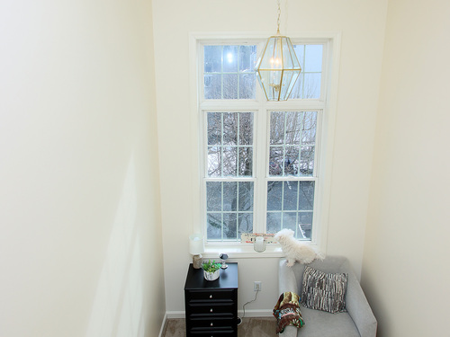 Welcome to this beautifully maintained townhouse-style condo in Arlington Woods, where comfort, space, and thoughtful updates come together seamlessly. A welcoming entry foyer with hardwood flooring leads you up to the main living level featuring an open-concept living and dining area with rich hardwood floors and a convenient natural-gas switch-on fireplace. Sliding doors off the dining room open to a private deck-perfect for relaxing or entertaining. The fully remodeled kitchen showcases brand-new appliances, abundant cabinetry, a pantry closet, and an extended countertop ideal for seating. A charming bow bay window creates the perfect nook for your breakfast table while filling the space with natural light. Brand-new carpeting spans the stairs and entire second floor, where a bright landing with oversized double windows enhances the airy feel. The spacious primary bedroom offers a vaulted ceiling, walk-in closet, and direct access to a full bath featuring double vanity sinks and a tub/shower with crisp white tile flooring. The versatile lower level provides excellent additional living space, ideal for a family room or home office, with double windows and sliders leading to a patio. An attached oversized garage offers extra room for shelving and storage solutions. Residents enjoy access to the Arlington Woods clubhouse amenities, including a great room, kitchenette, meeting/game room, pool, and play area-adding lifestyle convenience to this inviting home.