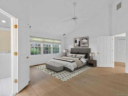 Lives Like A House But With The Convenience Of A Condominium! This beautiful move-in ready 3 Bedroom 3 Bath expansive L'Hermitage end unit is ideal for those desiring main level living but also includes a private second level Guest Suite. The sun filled spacious open floor plan is ideal for entertaining and boasts an oversized Living Room/Dining Room with soaring cathedral ceilings, a fireplace, and sliders to a coveted screen porch. The nicely designed Eat-in kitchen has great cabinet and counter space, a center island, brand new stainless appliances, and breakfast nook. Two bedrooms on the main level includes a king size ensuite Primary Bedroom with tons of closet space and a full bath with jetted tub. A second bedroom, main level laundry, and full bath complete the first floor. A private guest suite on the second floor ensures comfort and privacy. Beautiful wide board flooring throughout. The lower level is currently unfinished but could be a future Game Room and offers great storage. 2 car garage. Situated in a scenic quiet complex. A short ride to shopping and restaurants. The one you've been waiting for!