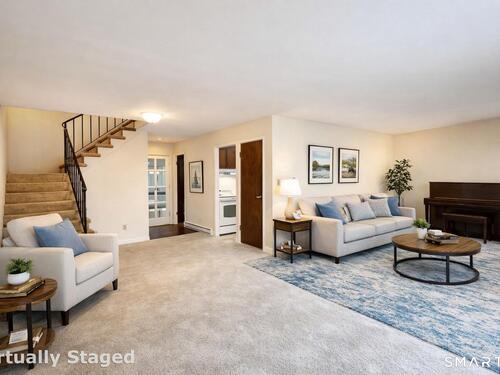 Welcome to Woodland Terrace, a highly sought-after townhouse community offering exceptional convenience in the heart of Stamford. This 2-bedroom, 1.5-bath townhouse is the perfect opportunity for buyers looking to customize, renovate, and build equity. The main level features a spacious open-concept living and dining area, a functional kitchen layout, and a convenient half bath. Sliding doors lead to a private balcony ideal for relaxing or entertaining outdoors. Upstairs, you'll find two generously sized bedrooms and a full bathroom, ready for your personal updates and design vision. With the right improvements, this home offers strong upside potential for both homeowners and investors. Additional highlights include an attached one-car garage with interior access, in-unit laundry area, and plenty of guest parking. Ideally located just minutes from shopping, dining, the Merritt Parkway, and the Springdale train station, this home provides easy access for commuters while maintaining a peaceful community setting!