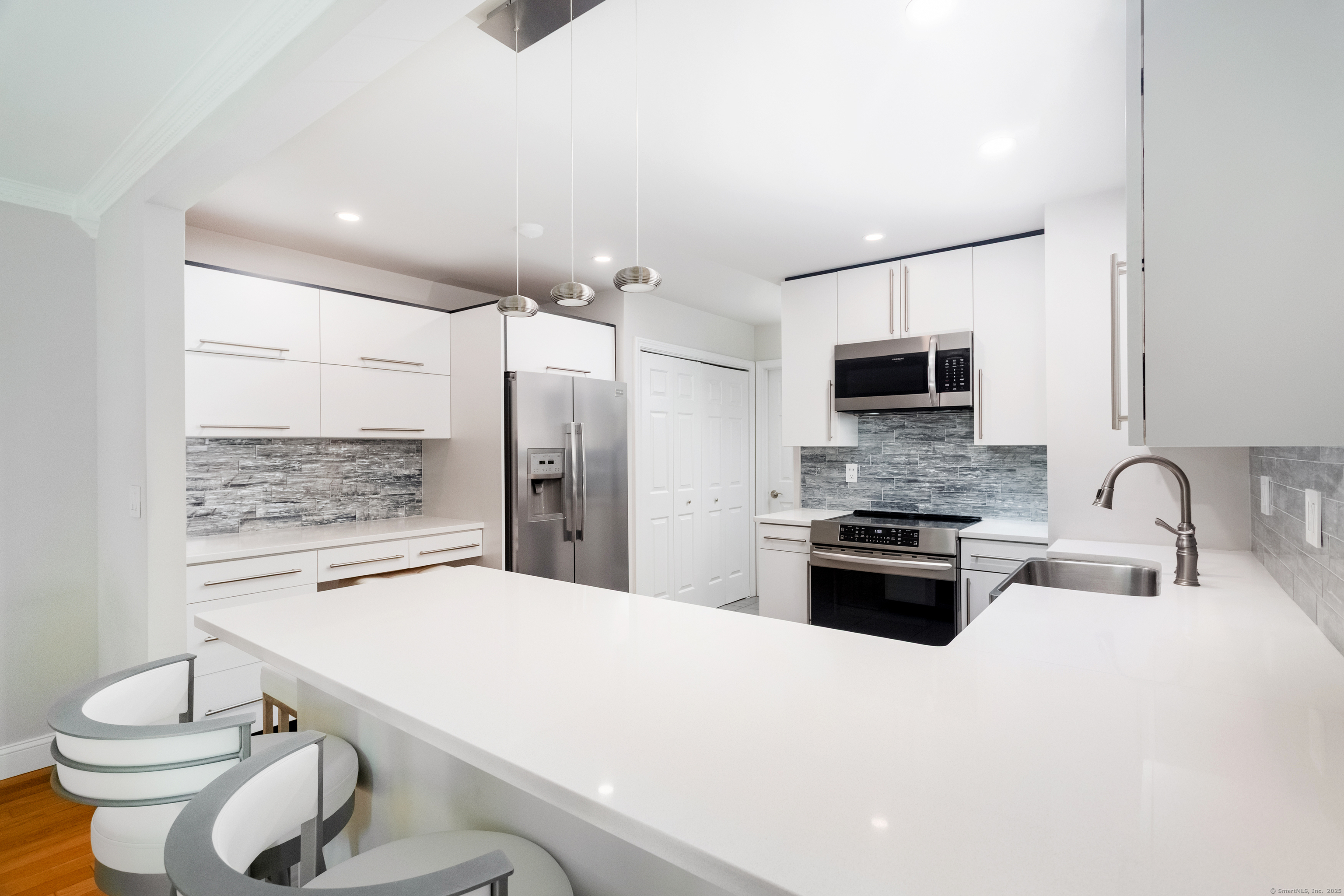 PLEASE SUBMIT HIGHEST & BEST OFFER BY WED (11/5) 5PM. Bright, modern, and move-in ready this updated townhouse in High Meadow pairs sleek upgrades with effortless livability. Enjoy nearly 1,800 SF of space, including 2 bedrooms, 1.5 baths, a 1-car garage, and a finished lower level perfect for work, fitness, or guests. The main level welcomes you with an inviting living room featuring hardwood floors, a wood-burning fireplace, and sliders to a private deck. The remodeled kitchen impresses with tile flooring, refinished cabinets, a new induction range, Corian counters, stainless steel appliances, and a wine cooler. A bright dining area, stylish powder room, and laundry space complete this level. Upstairs, the spacious primary bedroom offers a walk-in closet and a luxurious bath with a spa tub, double-sink vanity with LED mirror, and large shower with a built-in seat. The second bedroom provides an oversized closet and abundant natural light. The finished lower level adds valuable flex space and a workshop area within the garage. Recent upgrades include a premium induction range, tile backsplash, LED mirrors, Delta shower system, LG smart washer/dryer, new A/C condenser (2023), luxury vinyl flooring, energy-efficient windows, and a 220V garage outlet for EV charging. Set on a quiet cul-de-sac close to I-84, Route 7, restaurants, shops, and parks, High Meadow residents also enjoy access to a pool, clubhouse, tennis and pickleball courts, and playground.