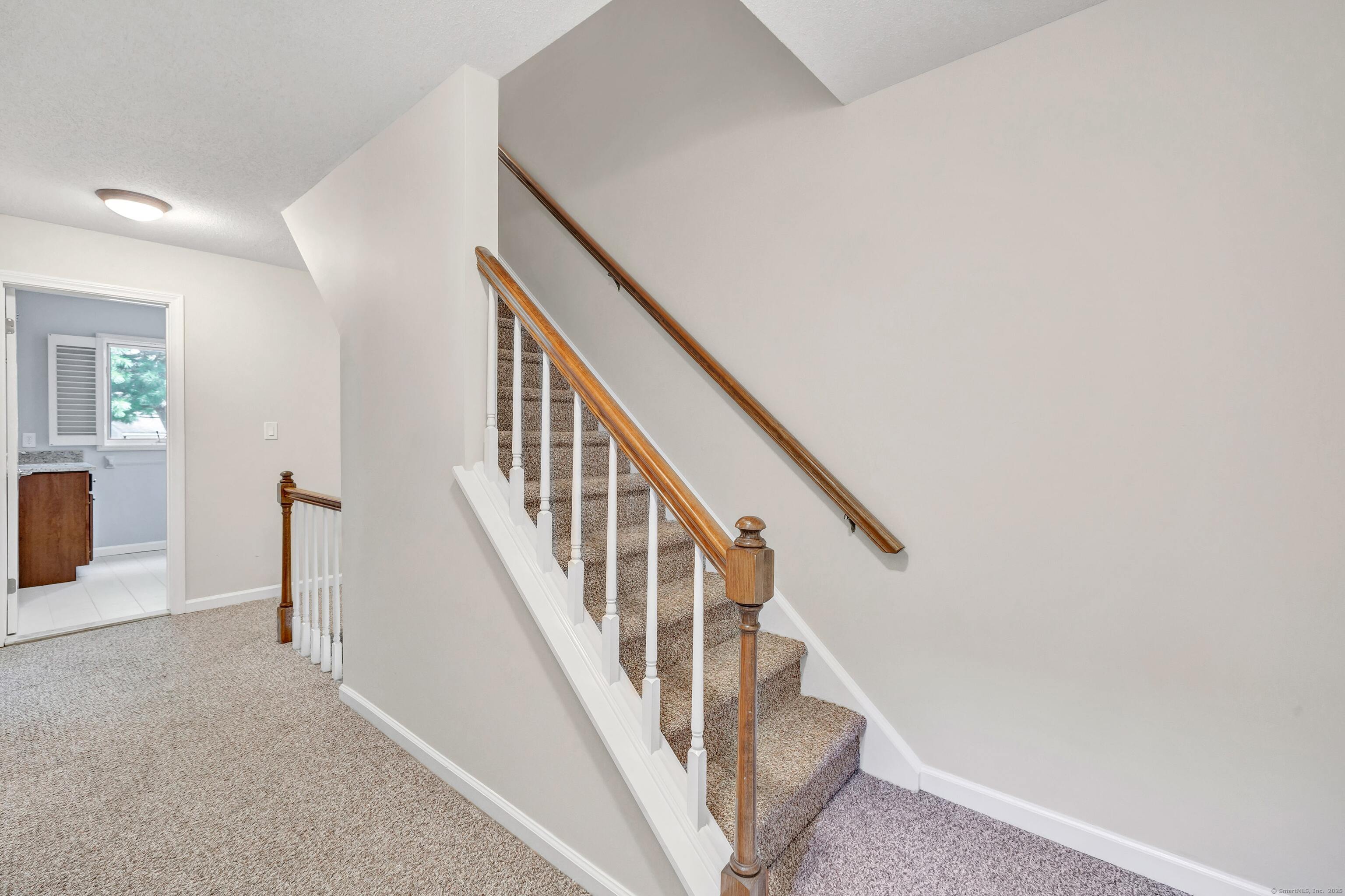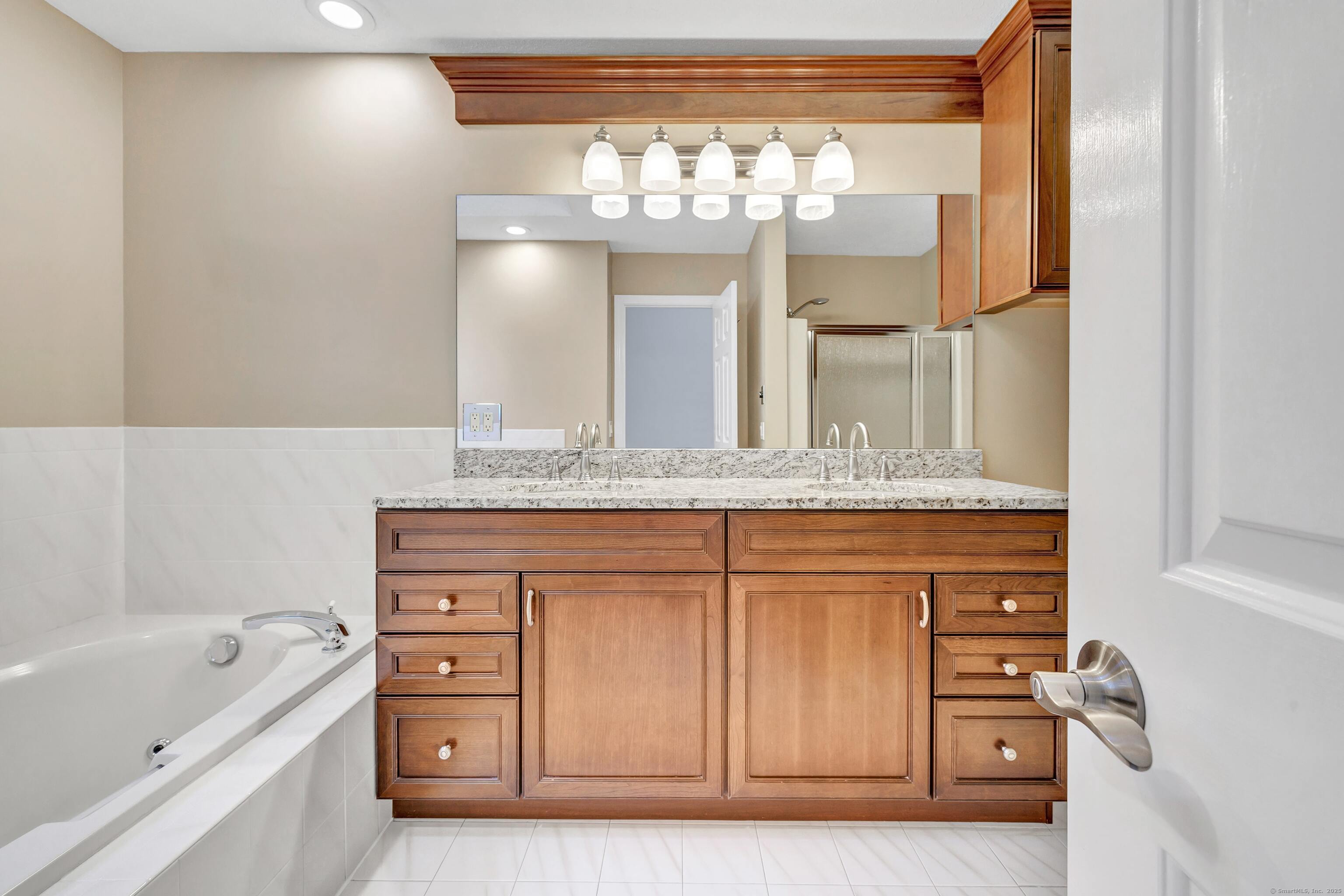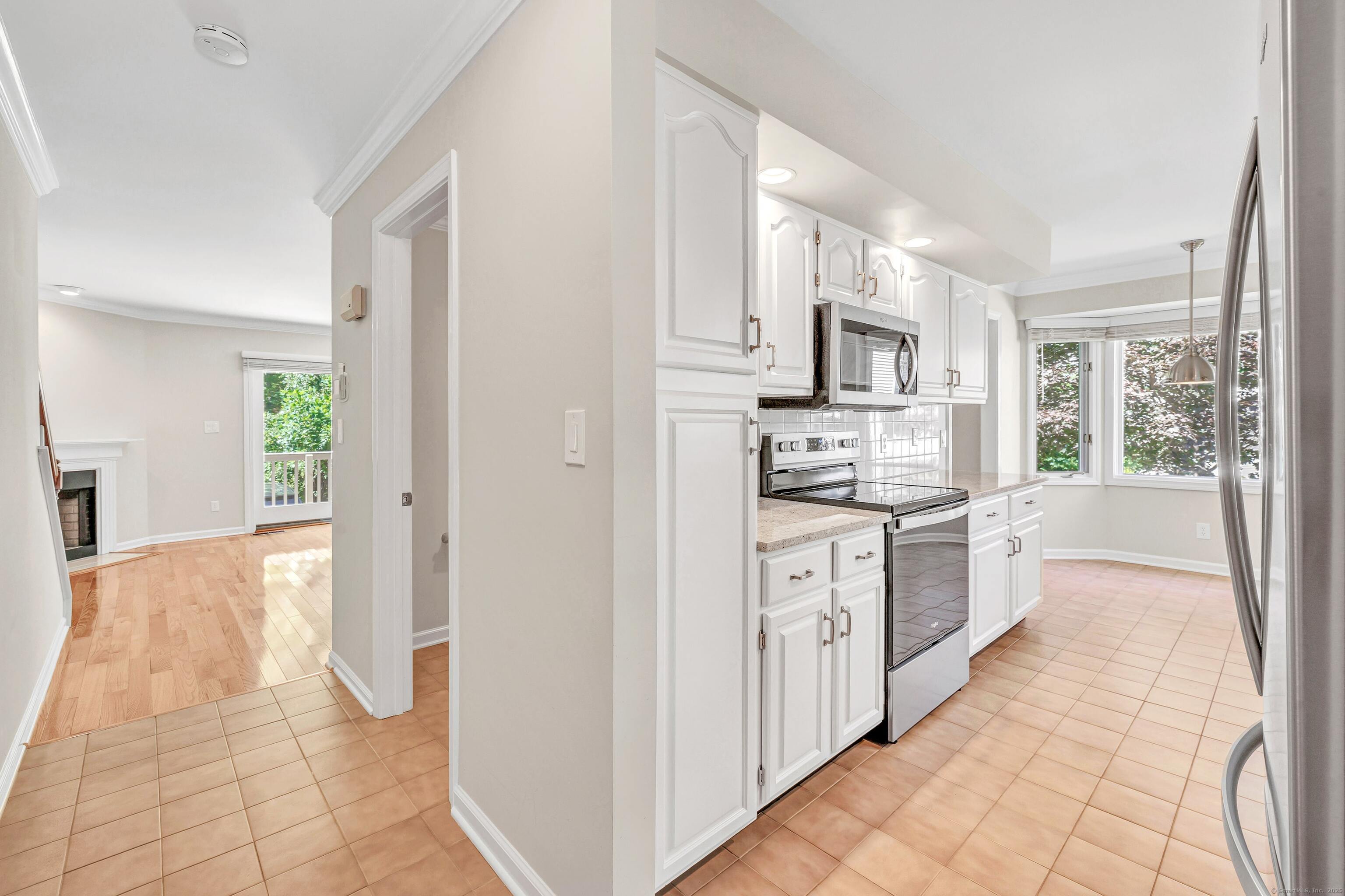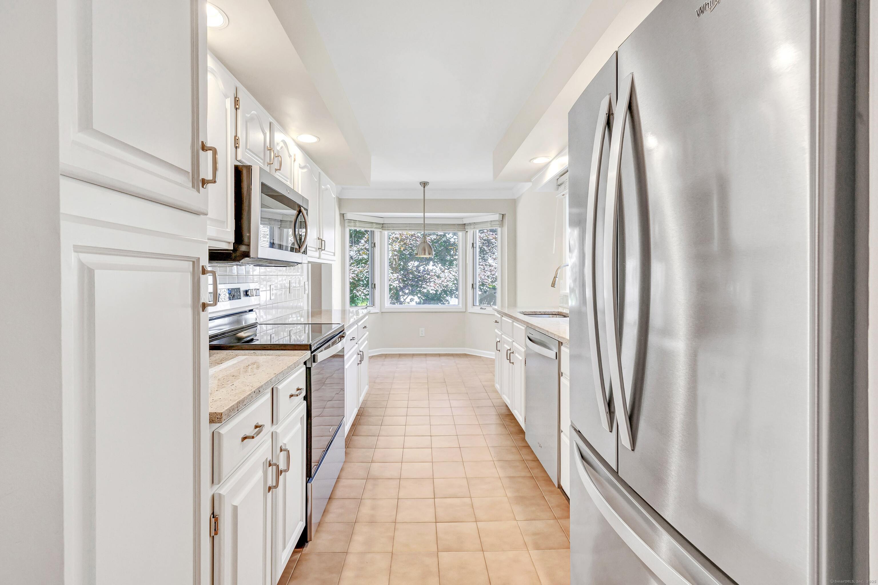 Stunning and sophisticated, this end-unit townhouse offers the perfect blend of style, comfort, and convenience. Surrounded by manicured landscaping with courtyard views and abundant visitor parking, this home sets the stage for easy living and elegant entertaining. Step inside to a beautifully renovated eat-in kitchen, with a tile floor and stainless steel appliances. The living room showcases gleaming hardwood floors, a cozy fireplace, and access to a private balcony for morning coffee or evening relaxation. A discreet powder room completes the main level. Upstairs, the serene primary suite impresses with its vaulted ceiling, walk-in closet, and a spa-inspired bath featuring a Jacuzzi tub, double vanity, cherry cabinetry, and walk-in shower. A second spacious bedroom and full bath provide comfort for family or guests. The sunlit third-floor loft with generous storage overlooks the primary suite and offers endless possibilities-a third bedroom, home office, or rec room. An attached two-car garage under completes this townhome. Perfectly located near all that Shelton has to offer, this townhouse is a rare find combining luxury, comfort, and an unbeatable location.