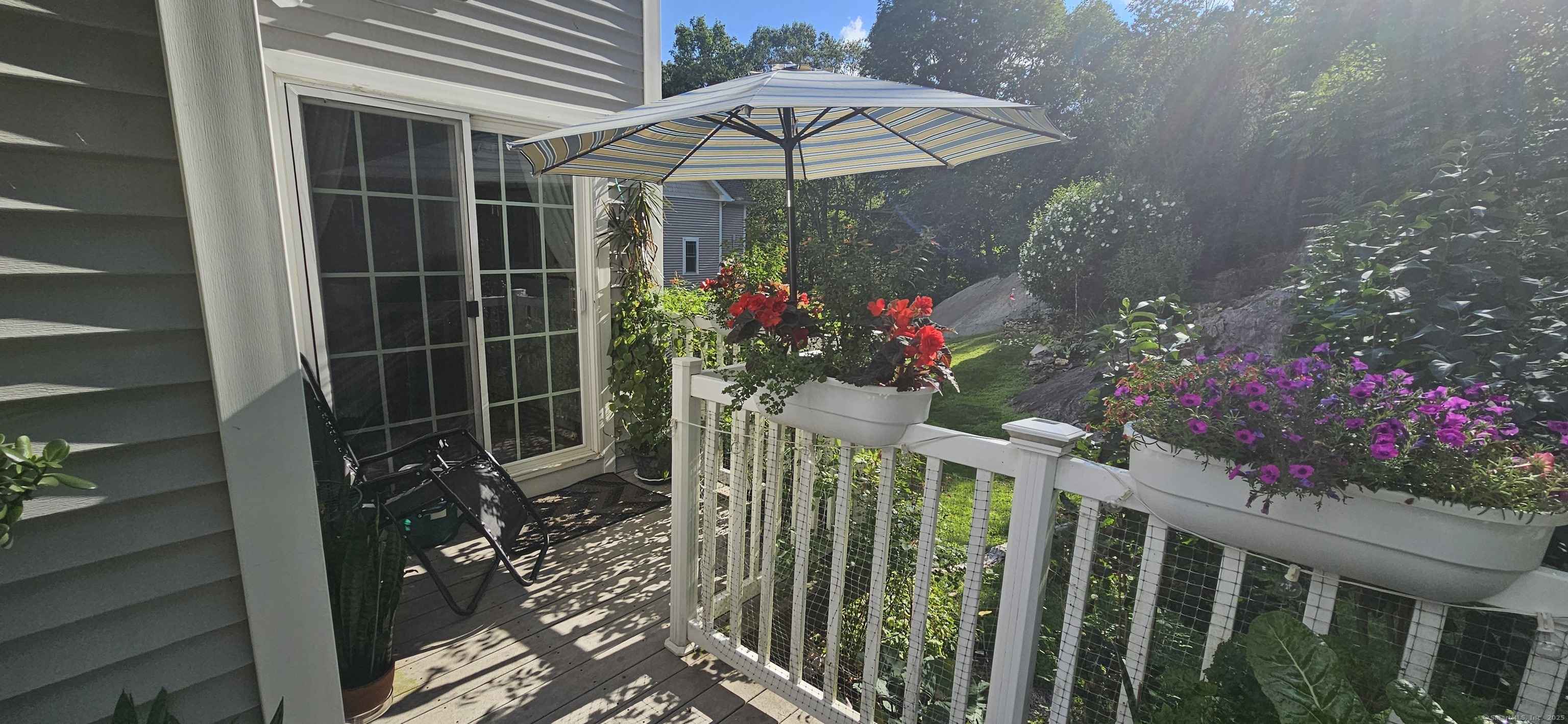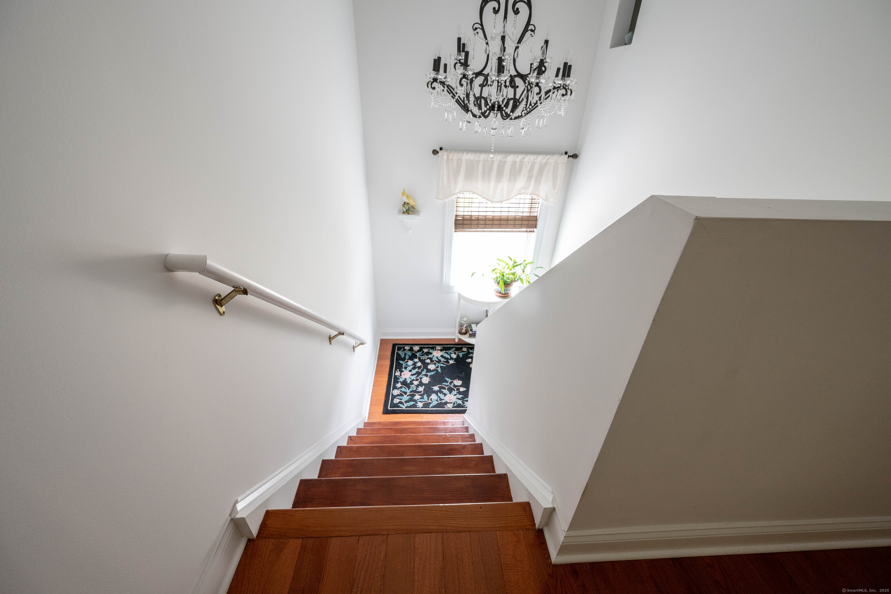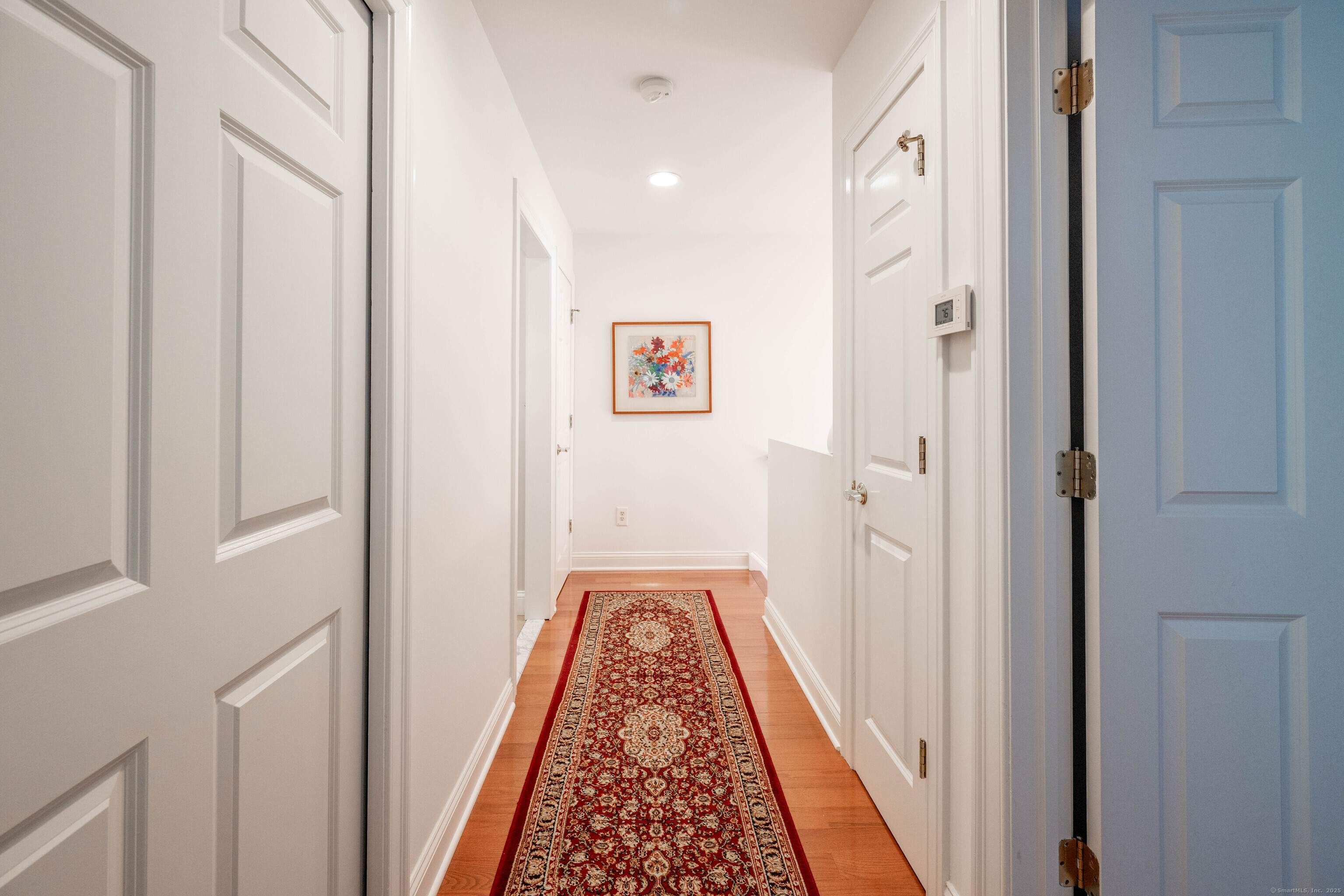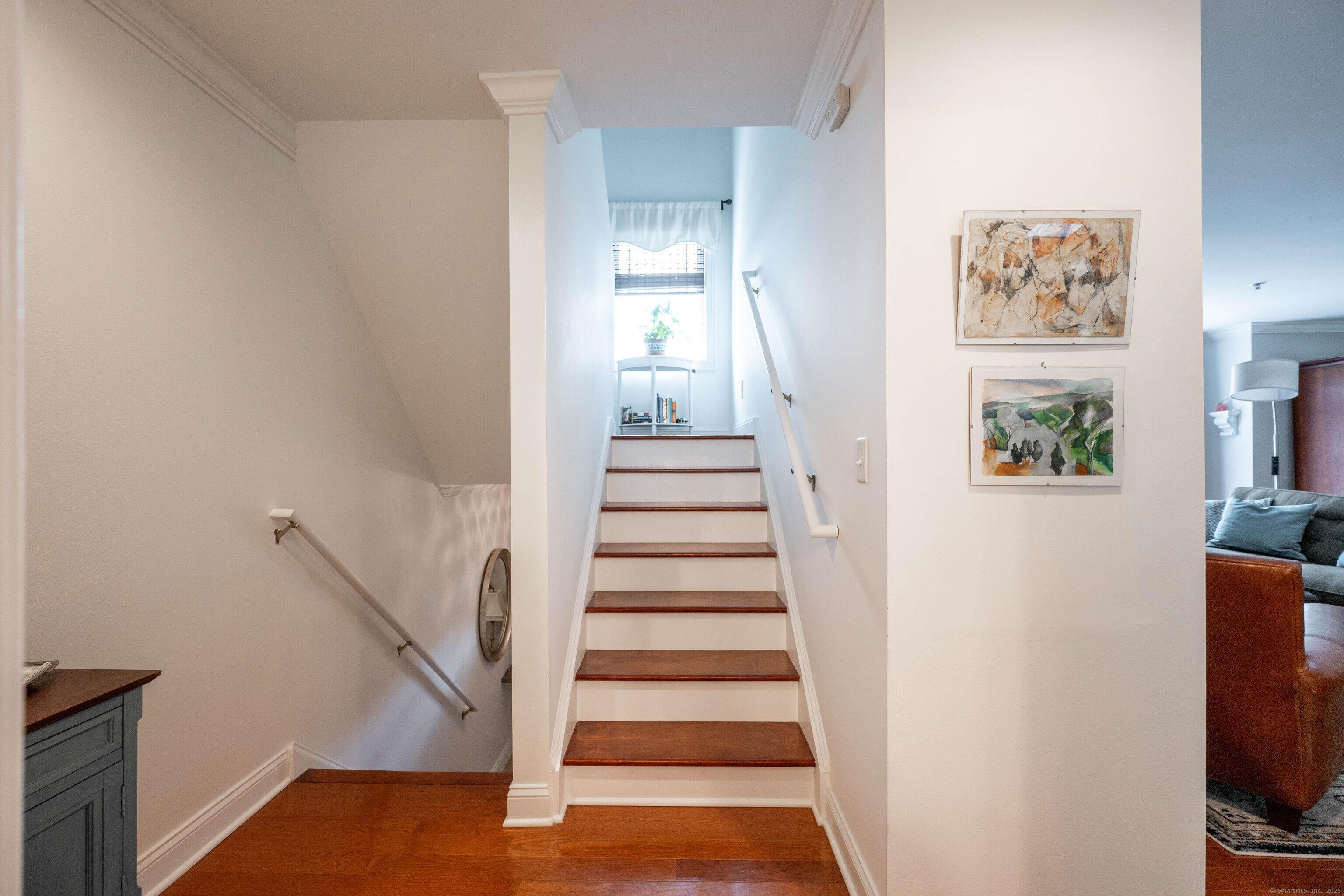 Stylish and spacious END UNIT townhome with 2-car garage is bathed in natural light and nestled in one of Stetson Place's preferred locations. This home offers the perfect blend of comfort, versatility, and charm. The open floor plan on the main level features windows on three sides, a cozy fireplace, and sliders to a large deck - ideal for summer evenings or morning coffee. Upgrades include: Crown molding, and hardwood floors throughout. The kitchen is a great gathering spot, complete with ample cabinetry, skylights and a large center island with a breakfast bar. Upstairs, the private primary suite is accompanied by a 2nd bedroom with a custom walk-in closet and laundry room. The lower level includes a practical mudroom entry with a cedar closet tucked under the stairs, ideal for storing seasonal gear, shoes, or everyday essentials. Stetson Place amenities include a clubhouse, fitness center, and outdoor pool. Grounds are professionally maintained right up to your doorstep (no need to shovel snow), and the monthly HOA conveniently includes water, sewer, and insurance. Sought-after location in Western Danbury, enables quick access to I-84 for easy commutes to Lower Fairfield & Westchester Counties, and NYC trains AND minutes from local shops, restaurants, and everyday conveniences. With designer updates, classic architectural touches, and a bright, welcoming vibe, this is easy living at its best. Move-in ready rare find!