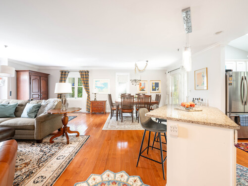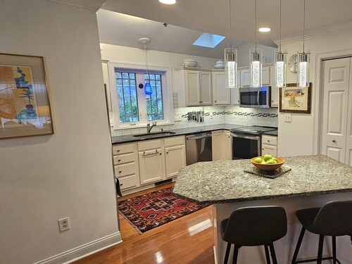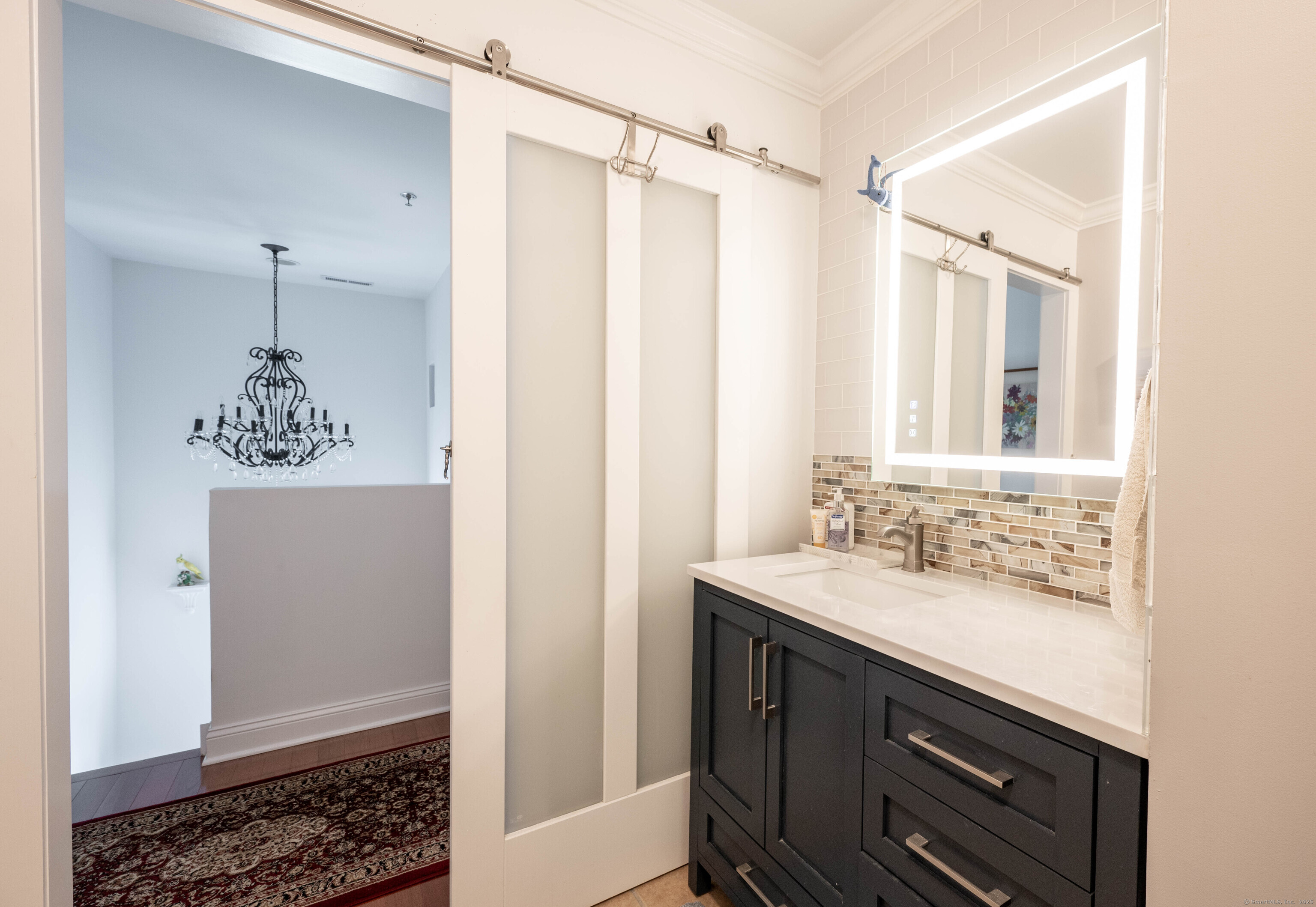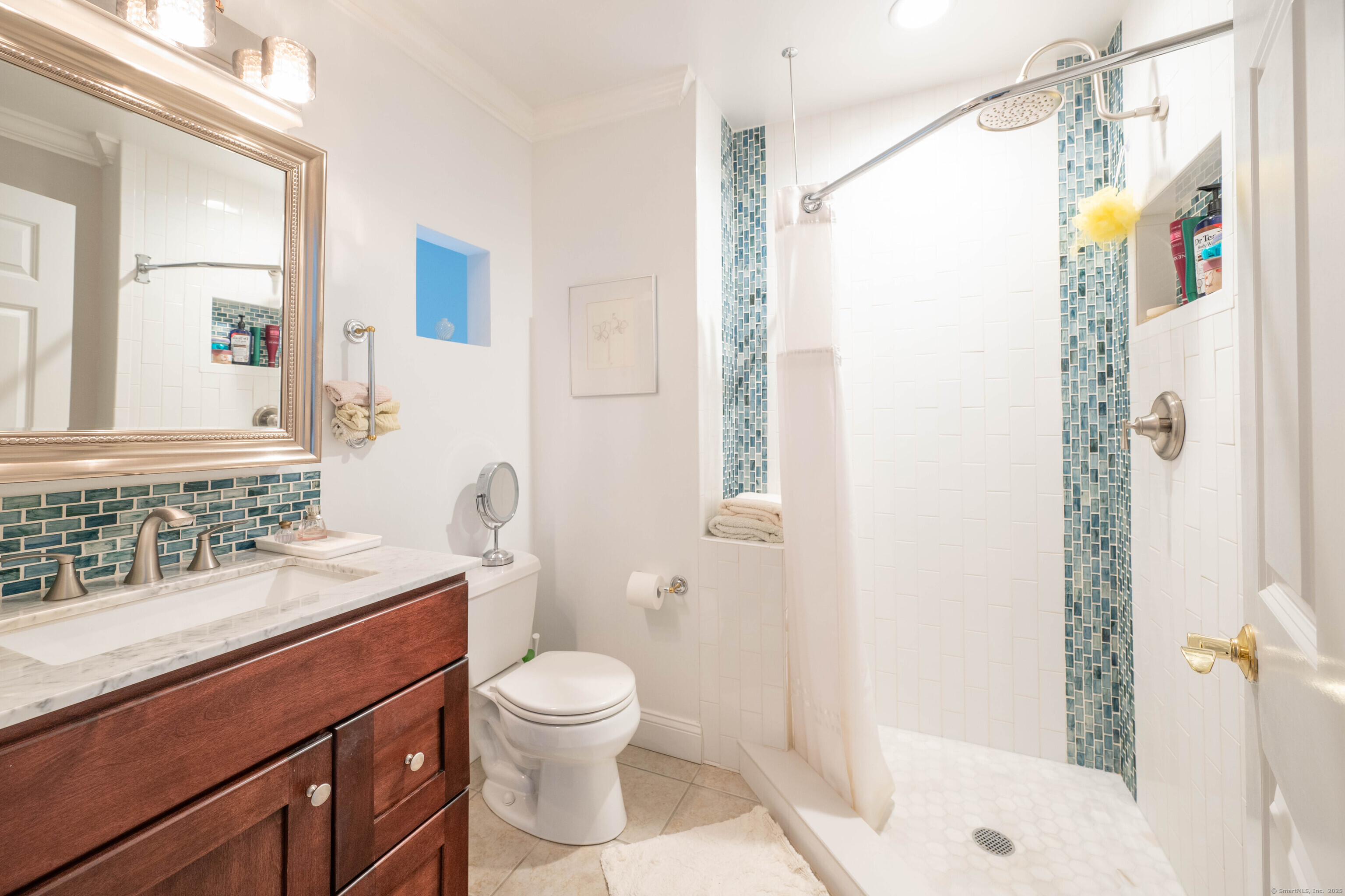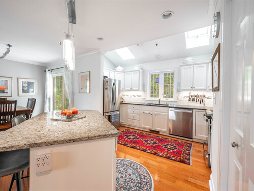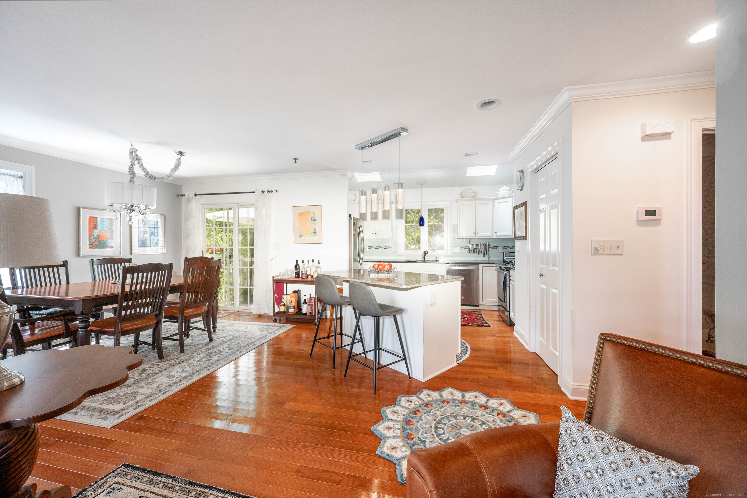 Stylish and spacious END UNIT townhome with 2-car garage is bathed in natural light and nestled in one of Stetson Place's preferred locations. This home offers the perfect blend of comfort, versatility, and charm. The open floor plan on the main level features windows on three sides, a cozy fireplace, and sliders to a large deck - ideal for summer evenings or morning coffee. Upgrades include: Crown molding, and hardwood floors throughout. The kitchen is a great gathering spot, complete with ample cabinetry, skylights and a large center island with a breakfast bar. Upstairs, the private primary suite is accompanied by a 2nd bedroom with a custom walk-in closet and laundry room. The lower level includes a practical mudroom entry with a cedar closet tucked under the stairs, ideal for storing seasonal gear, shoes, or everyday essentials. Stetson Place amenities include a clubhouse, fitness center, and outdoor pool. Grounds are professionally maintained right up to your doorstep (no need to shovel snow), and the monthly HOA conveniently includes water, sewer, and insurance. Sought-after location in Western Danbury, enables quick access to I-84 for easy commutes to Lower Fairfield & Westchester Counties, and NYC trains AND minutes from local shops, restaurants, and everyday conveniences. With designer updates, classic architectural touches, and a bright, welcoming vibe, this is easy living at its best. Move-in ready rare find!