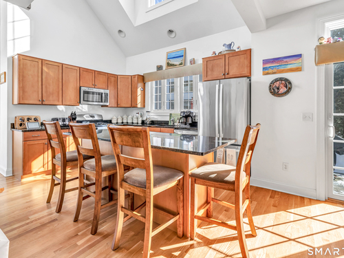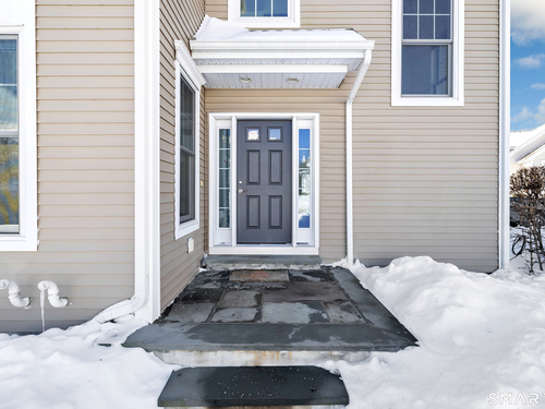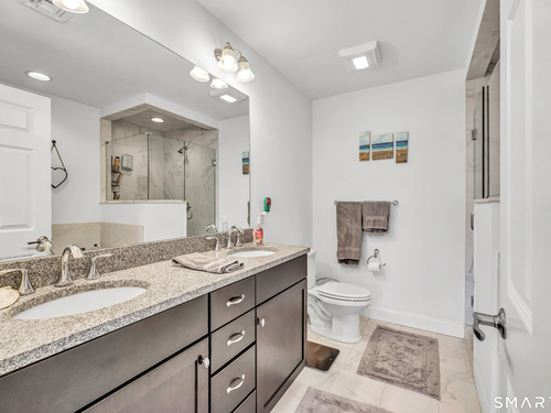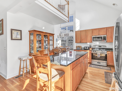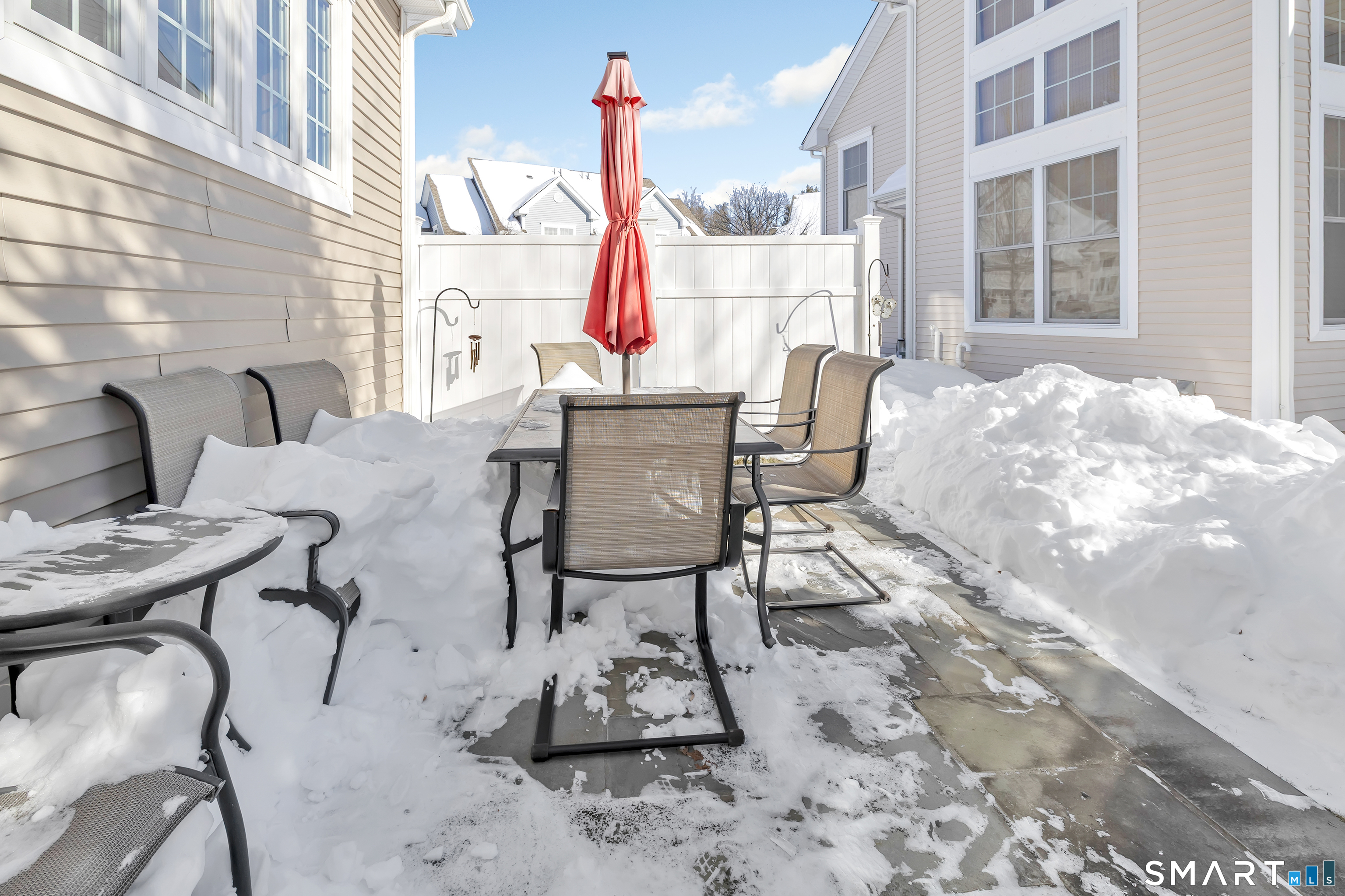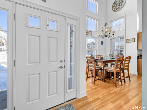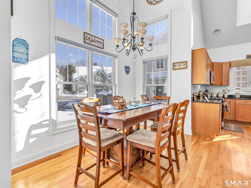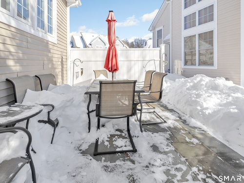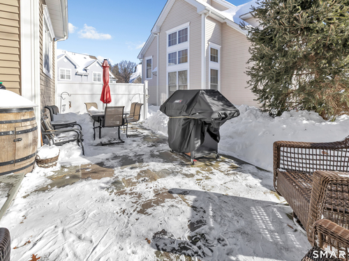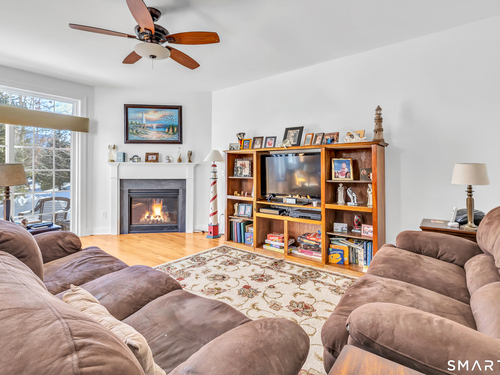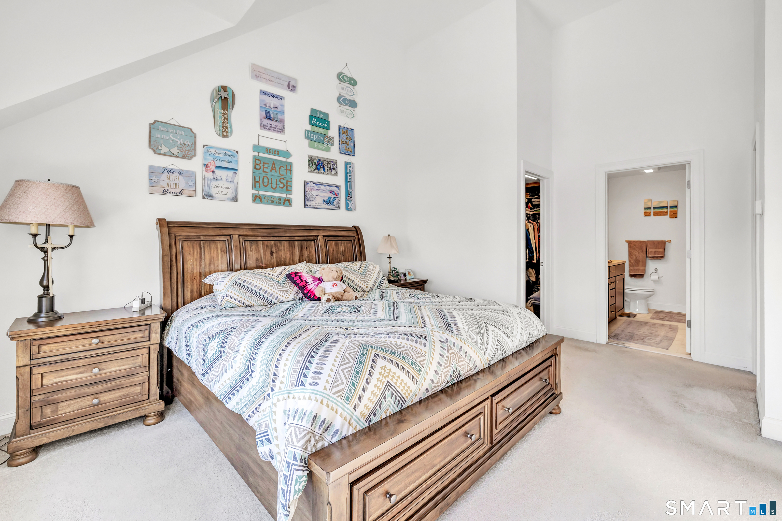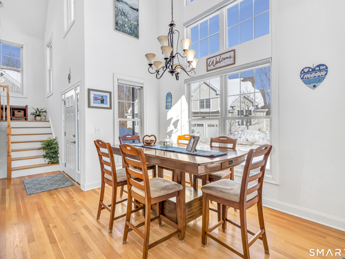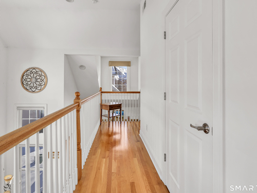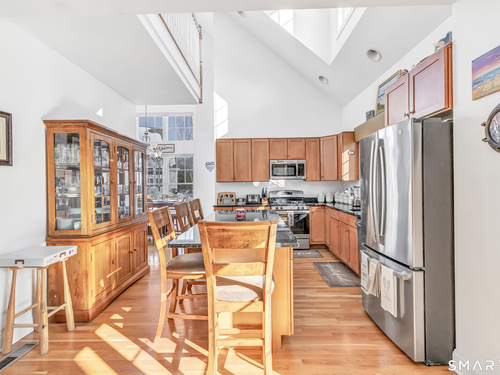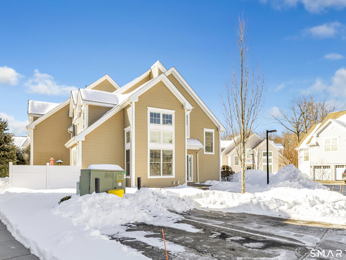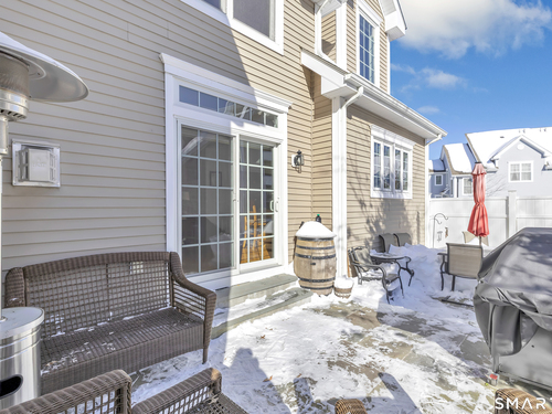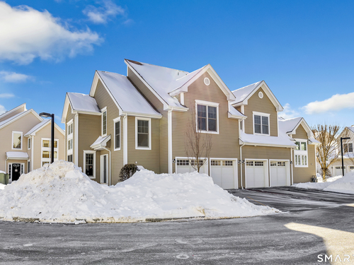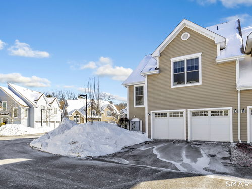 Welcome to 47 Copper Square, Bethel - This highly desired duplex end unit offers the perfect blend of luxury, privacy and low-maintenance living. This 2-bedroom, 2.5-bathroom home with a 2-car garage is sited on a premium lot with an expanded flagstone terrace-an ideal space to enjoy nature and outdoor entertaining. Lovingly maintained by the original owners, this immaculate home features white oak hardwood floors, soaring ceilings and two-story windows that fill the space with natural light. The open-concept main level offers a spacious living room with a gas fireplace, dining area with slider to the terrace and a beautifully appointed kitchen with granite countertops, stainless steel appliances and plentiful oak cabinetry. Upstairs, both bedrooms are en-suite, including a serene primary suite with vaulted ceilings, two walk-in closets and a spa-style bath featuring dual sinks, a stall shower and a whirlpool tub. Additional highlights include recently upgraded Andersen windows with a lifetime warranty (the only unit in the community), custom closet systems, bedroom-level laundry and electronic blinds. Enjoy maintenance-free living at Copper Square, featuring a HOBI Award-winning clubhouse with a fitness center, pool and patio area, movie theater, lounges with fireplaces and a conference room. Experience the best of style, comfort and community living in this turn-key Copper Square residence.