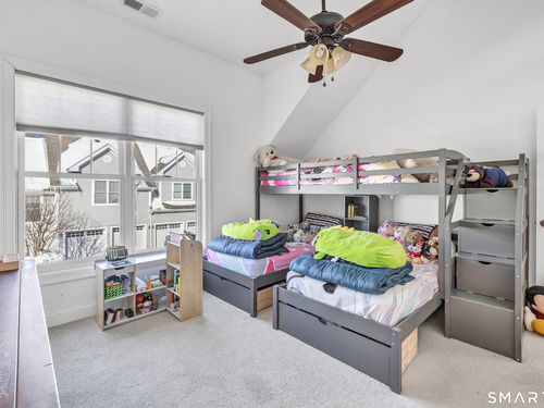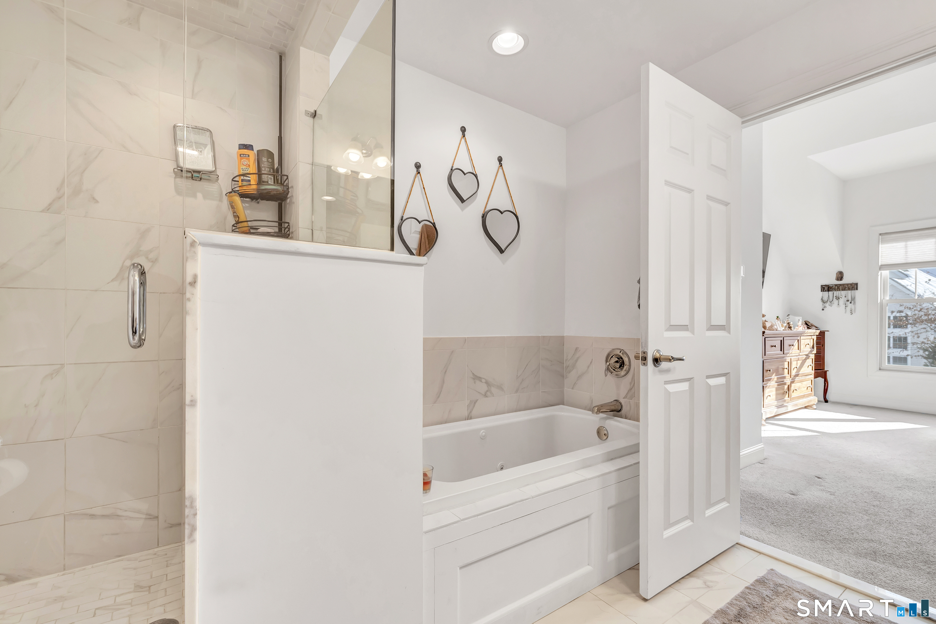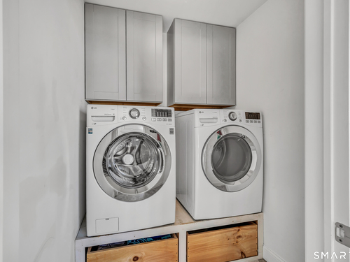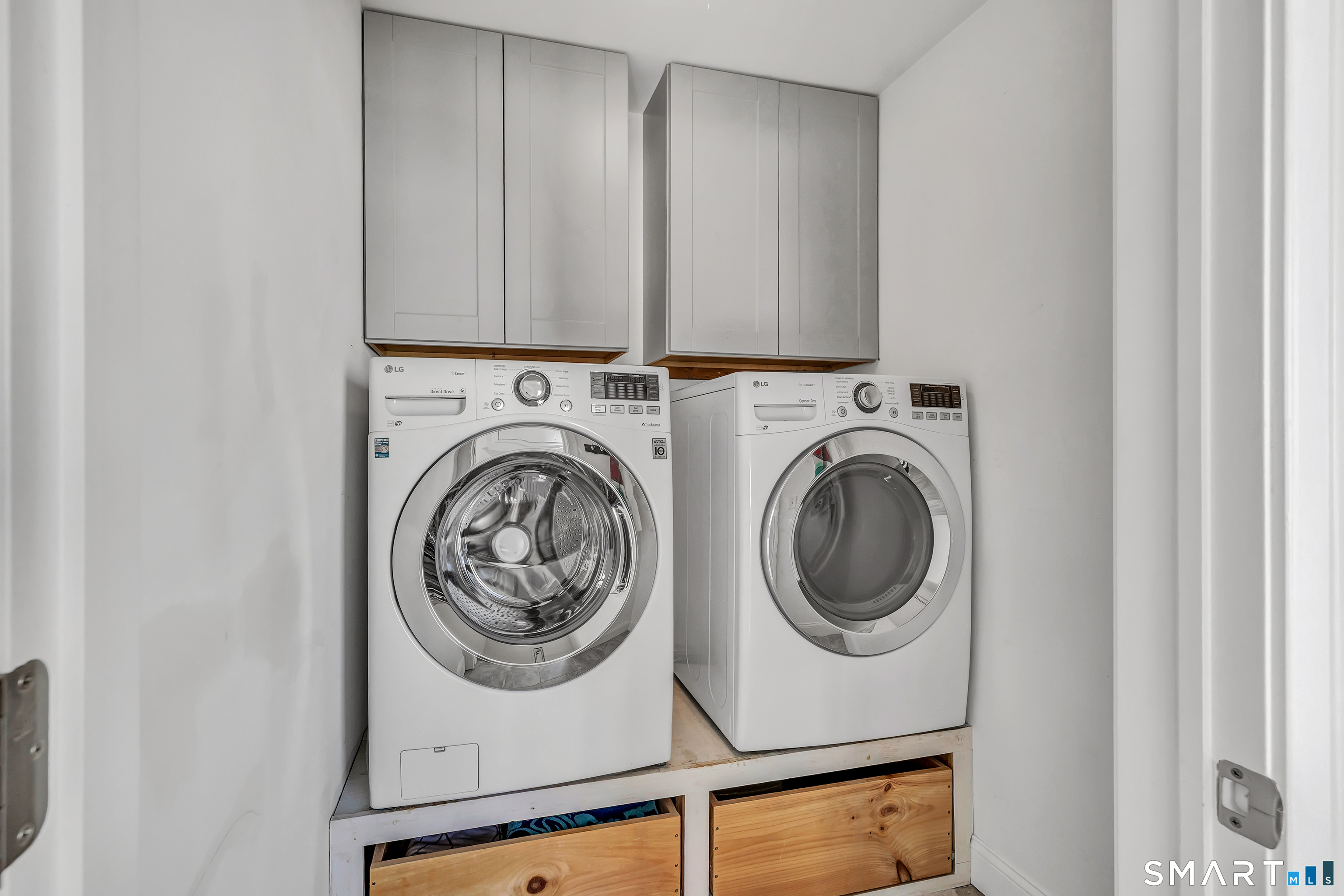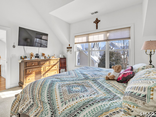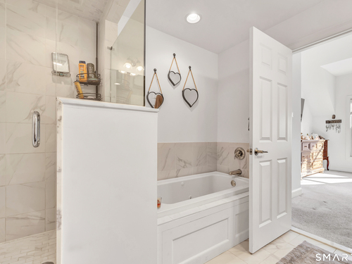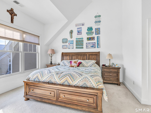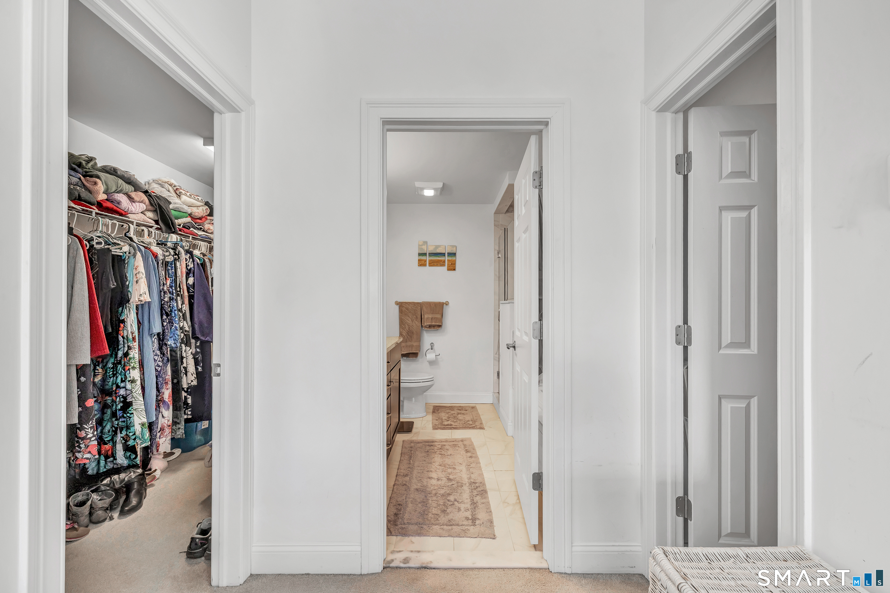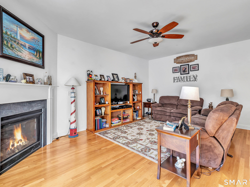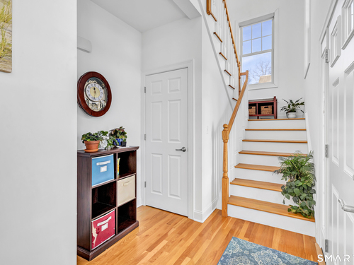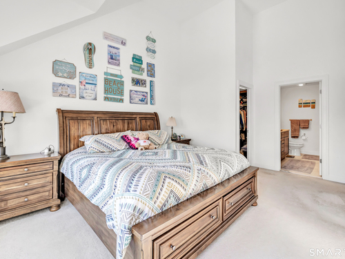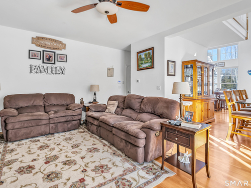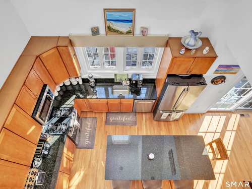 Welcome to 47 Copper Square, Bethel - This highly desired duplex end unit offers the perfect blend of luxury, privacy and low-maintenance living. This 2-bedroom, 2.5-bathroom home with a 2-car garage is sited on a premium lot with an expanded flagstone terrace-an ideal space to enjoy nature and outdoor entertaining. Lovingly maintained by the original owners, this immaculate home features white oak hardwood floors, soaring ceilings and two-story windows that fill the space with natural light. The open-concept main level offers a spacious living room with a gas fireplace, dining area with slider to the terrace and a beautifully appointed kitchen with granite countertops, stainless steel appliances and plentiful oak cabinetry. Upstairs, both bedrooms are en-suite, including a serene primary suite with vaulted ceilings, two walk-in closets and a spa-style bath featuring dual sinks, a stall shower and a whirlpool tub. Additional highlights include recently upgraded Andersen windows with a lifetime warranty (the only unit in the community), custom closet systems, bedroom-level laundry and electronic blinds. Enjoy maintenance-free living at Copper Square, featuring a HOBI Award-winning clubhouse with a fitness center, pool and patio area, movie theater, lounges with fireplaces and a conference room. Experience the best of style, comfort and community living in this turn-key Copper Square residence.