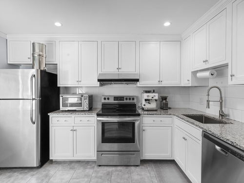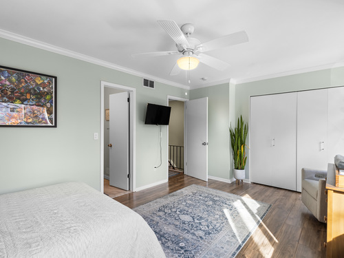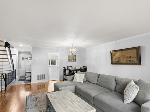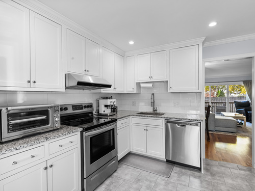Nestled in a quiet, private setting yet just moments from downtown Stamford, this fully renovated 2-bedroom, 2.5-bath townhouse offers the perfect balance of tranquility and convenience. Step inside through your private entrance and discover three spacious levels of modern living. The bright family room, complete with a cozy wood burning fireplace, flows seamlessly into the dining area with sliders leading to your own private deck - ideal for morning coffee or evening relaxation. Upstairs, you'll find two generous bedrooms, each with ample closet space and its own en-suite full bath, providing comfort and privacy for everyone. The fully finished lower level offers a versatile space perfect for a family room, home office, or gym. Additional highlights include a separate laundry room with lots of storage and two dedicated parking spaces (#3 and #17) for your convenience. Every room has been thoughtfully updated with today's style and functionality in mind, creating a move-in ready home that beautifully blends modern updates with timeless charm. Close proximity to downtown Stamford, walking distance (.3 miles) to the shopping center which provides Whole Foods, CVS, Starbucks, Shake Shack, and the famous Frank Pepe's Pizza. The complex is pet-friendly, low HOA fees, and 1.5 miles to the Stamford Train Station!