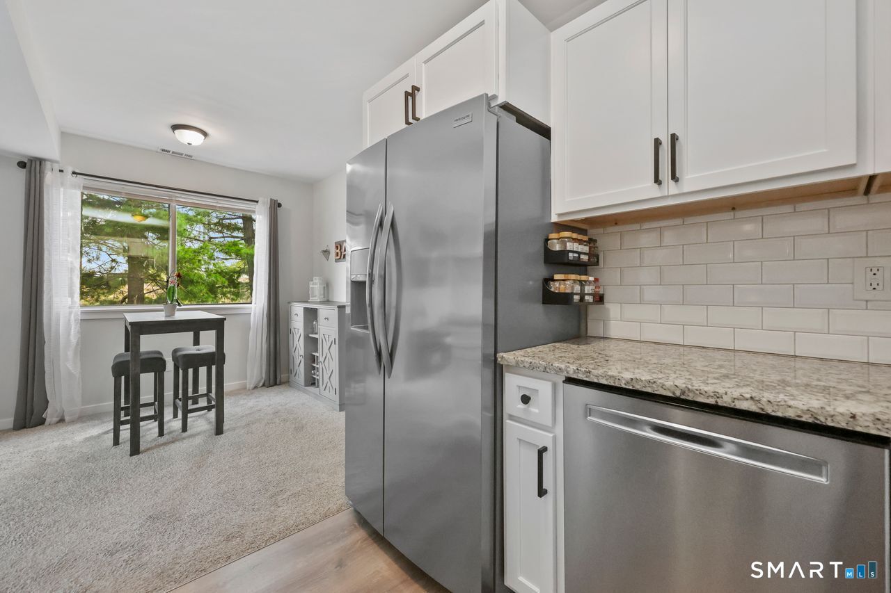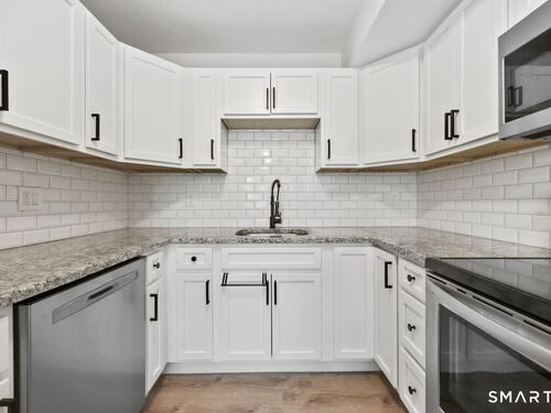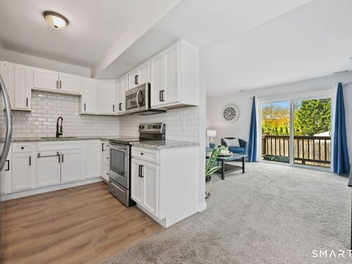 Unbeatable remodeled 2 BR 1.5 Bath townhome in East Norwalk. This stunning end unit was recently renovated a few years ago & has been meticulously maintained. Nothing to do but move in & start living! The main level boasts a lovely open floor plan featuring a spacious living room with sliders that lead out to your very own private balcony. Gorgeous white kitchen with SS appliances, granite countertops, tile backsplash, dishwasher, tons of cabinet space, & a cozy separate dining area. Also on this floor is a beautiful updated powder room and plenty of closets for storage. As you make your way upstairs, you'll notice the massive Primary Bedroom with stunning vaulted ceilings & skylight, which allows for an abundance of natural light! The additional bedroom is perfect for guests & the beautiful modern full bath is sure to please! This amazing unit also comes fully equipped with central A/C, attached 2 car garage, newer floors, newer hot water tank & air conditioner condenser! Washer/dryer is conveniently located in the unit on the lower level. Walking distance to the Maritime Aquarium, IMAX Theater, Zagat-rated restaurants, SoNo nightlife, & Oyster Shell Park. Also close proximity to the Metro-North Train Station & SoNo Collections mall. Take weekend bike rides or walk along the Norwalk River where you can sit on the benches & enjoy the peaceful views of the Norwalk River! Take advantage of all that Norwalk has to offer & make this beautiful condo yours today! WILL NOT LAST!!!