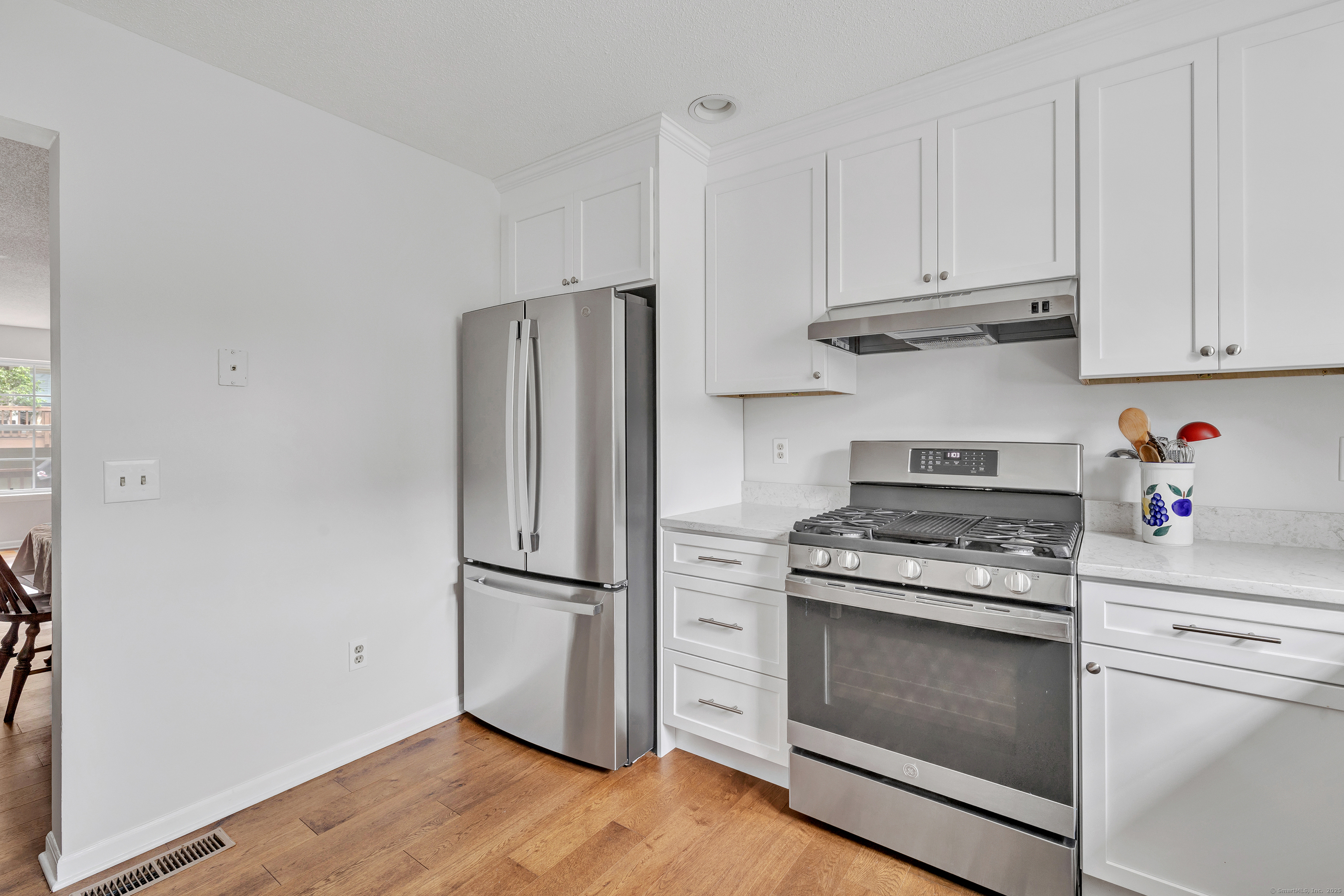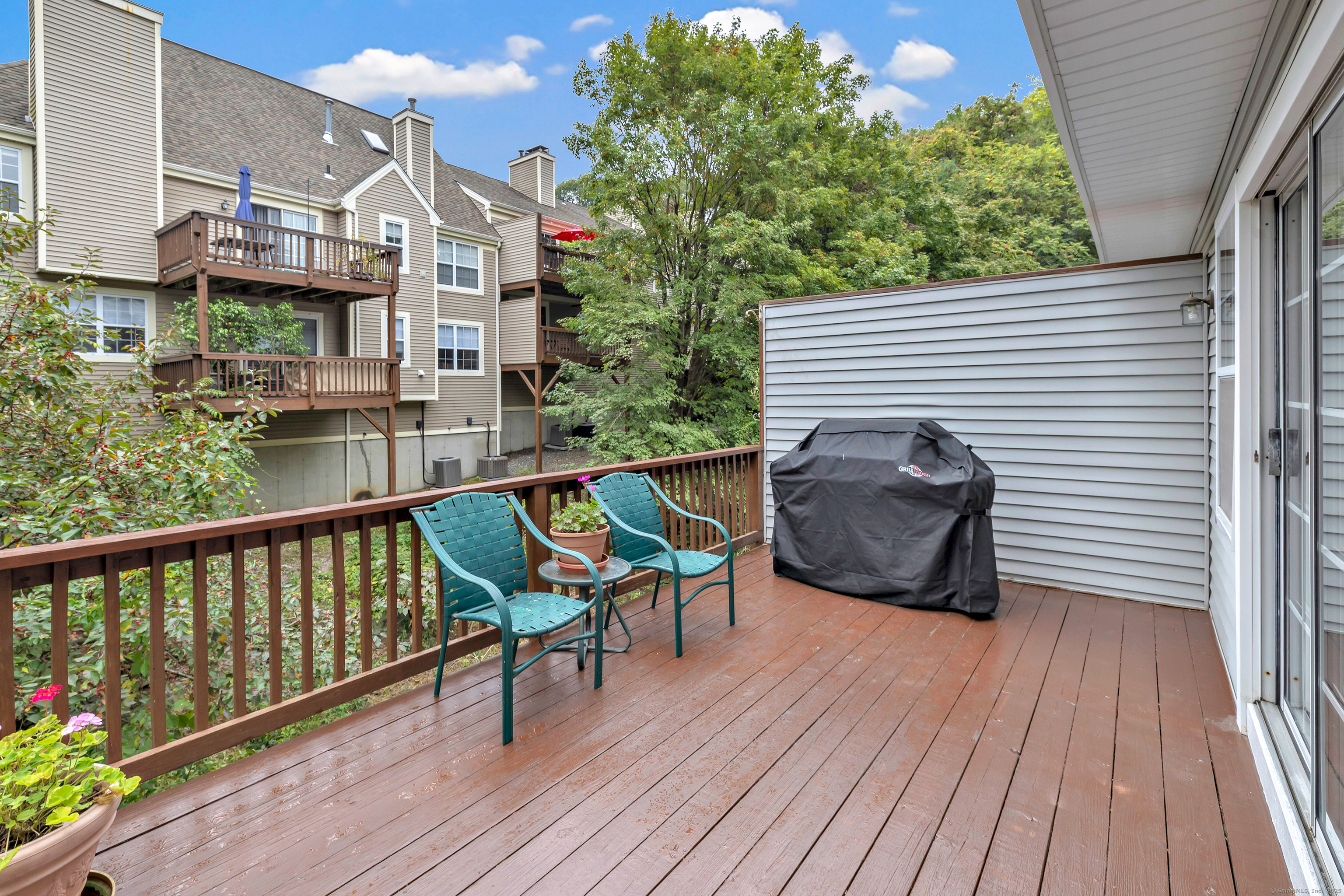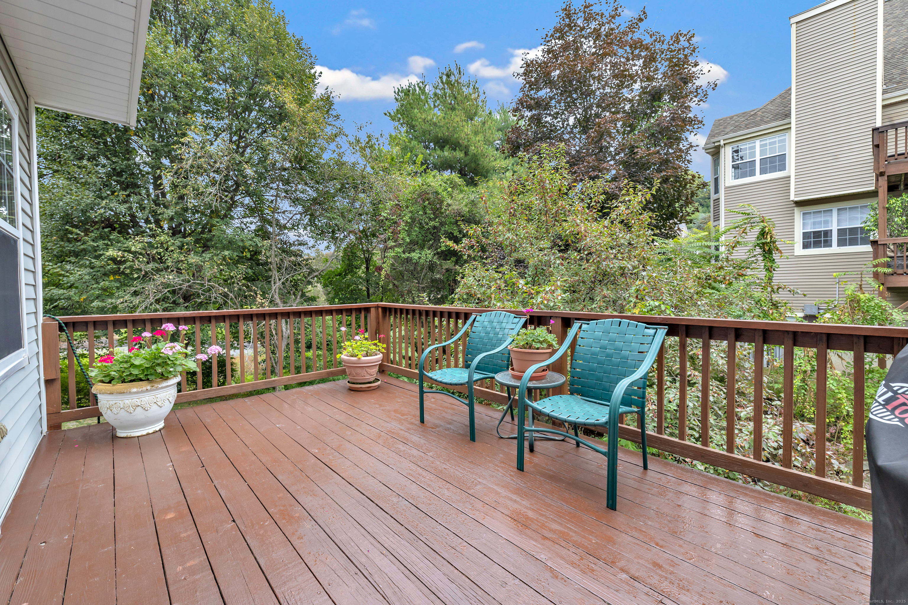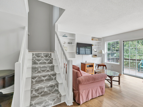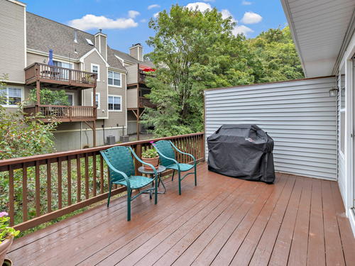 A pristine townhouse with under attached garage, beautiful new kitchen with new appliances, new hardwood flooring, freshly painted throughout, newer bathrooms, new HVAC, new lighting fixtures, etc. Deck in beautiful shape - almost completely private. AMAZING unit - MUST SEE! A lower level room that could be an office..