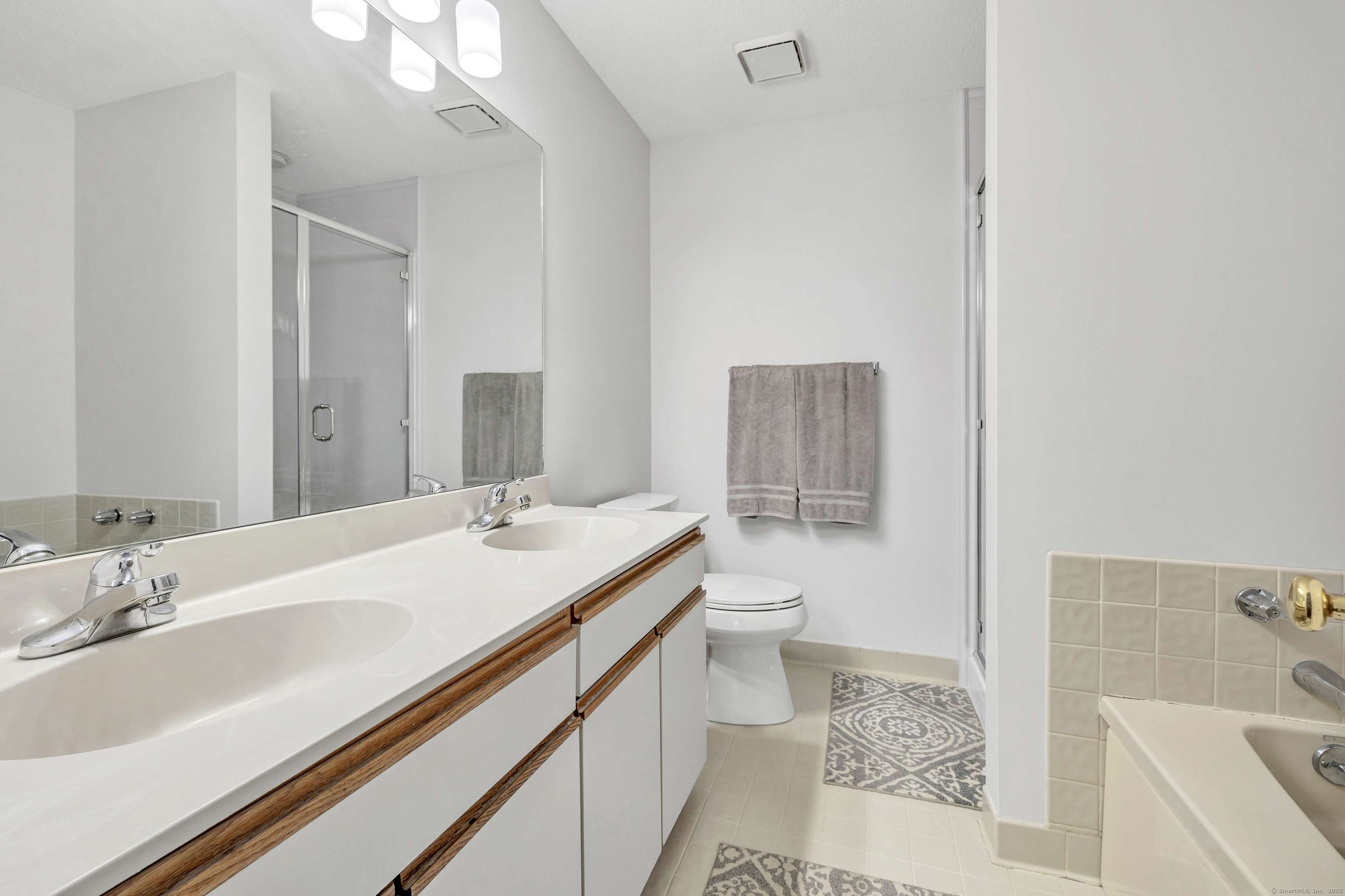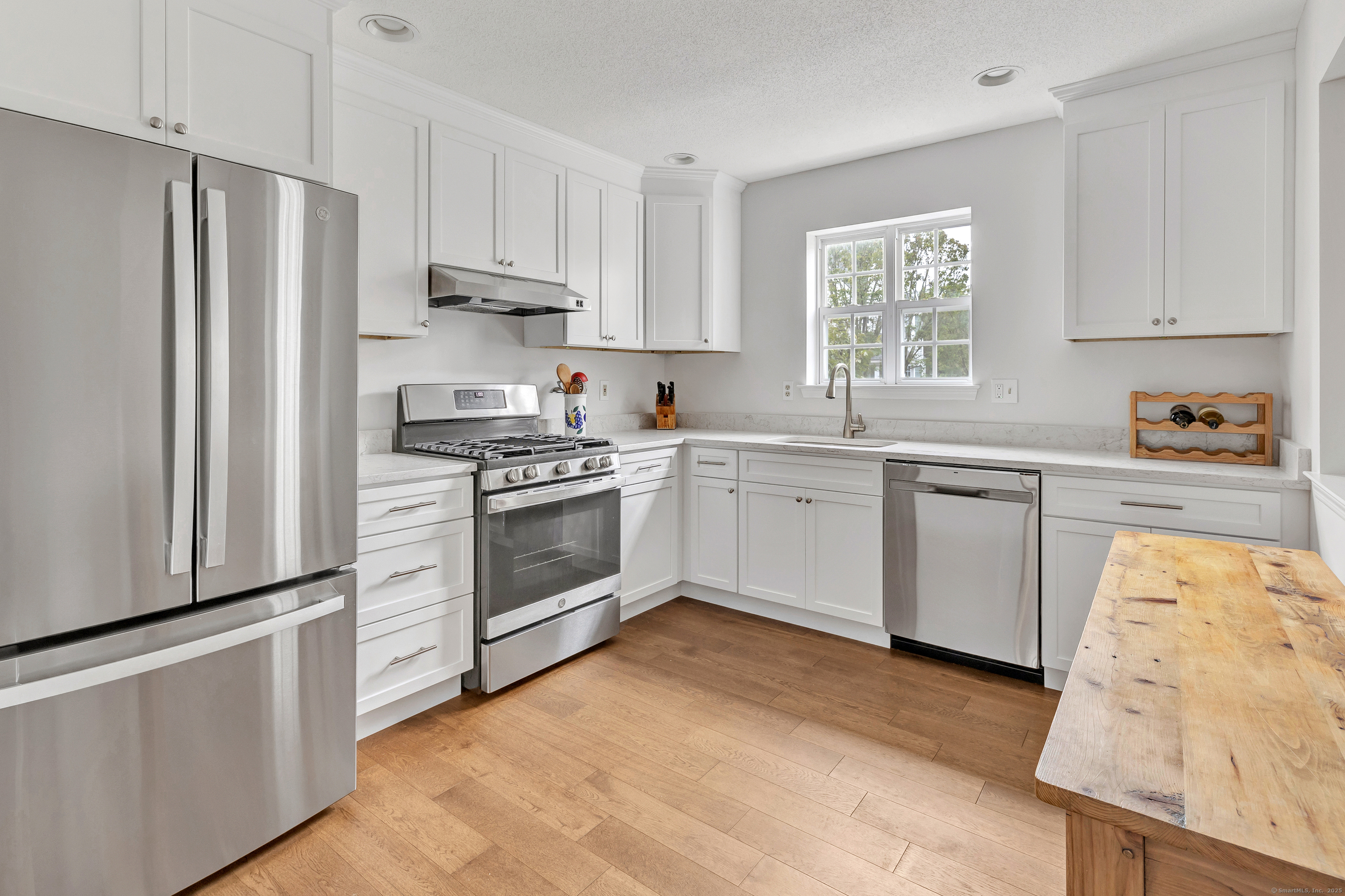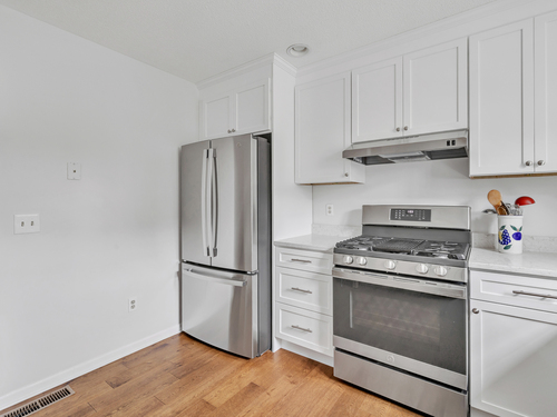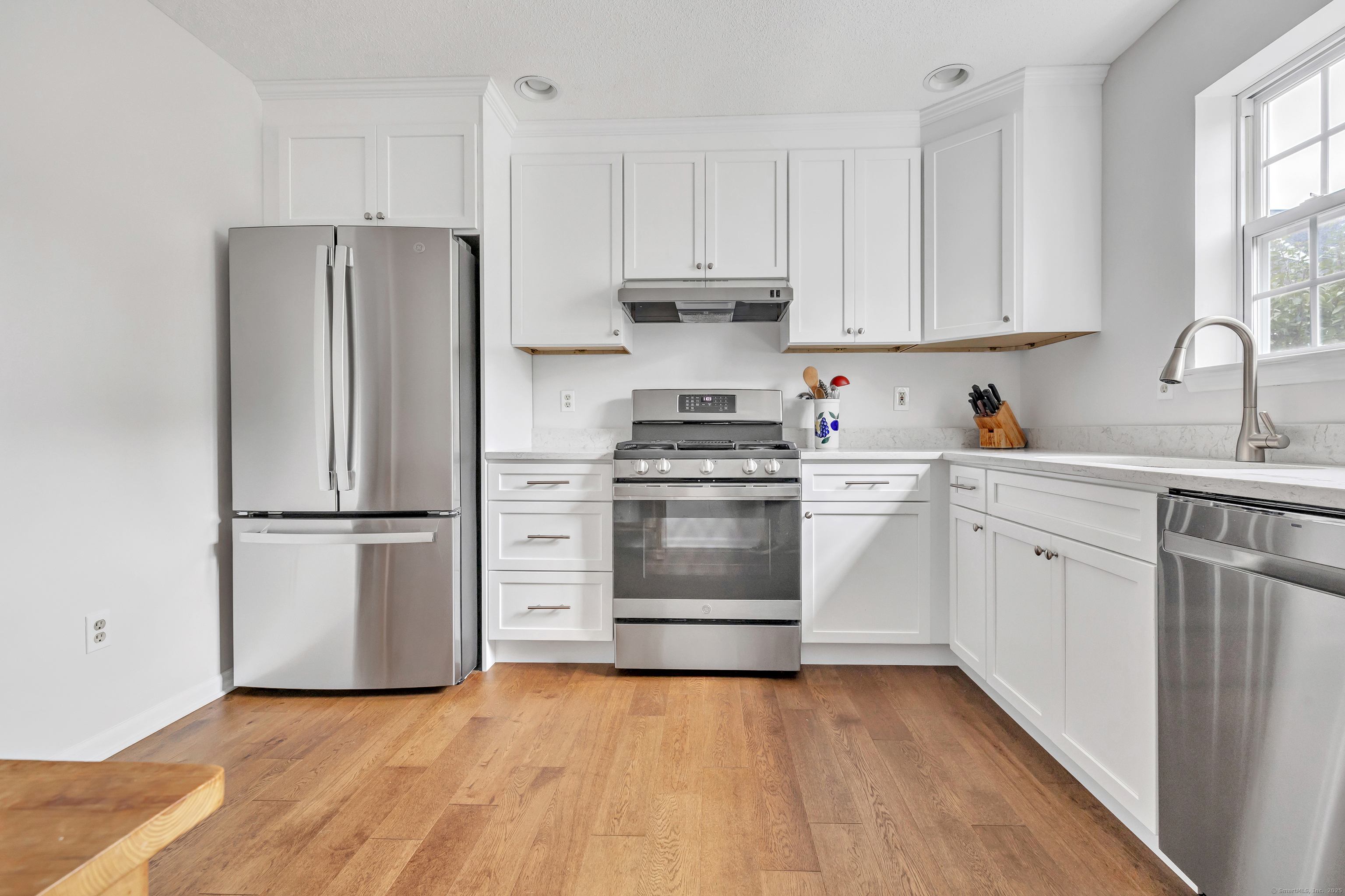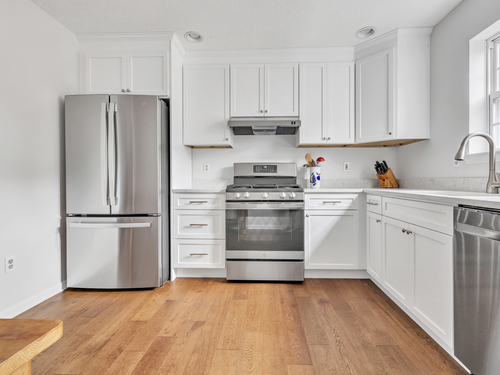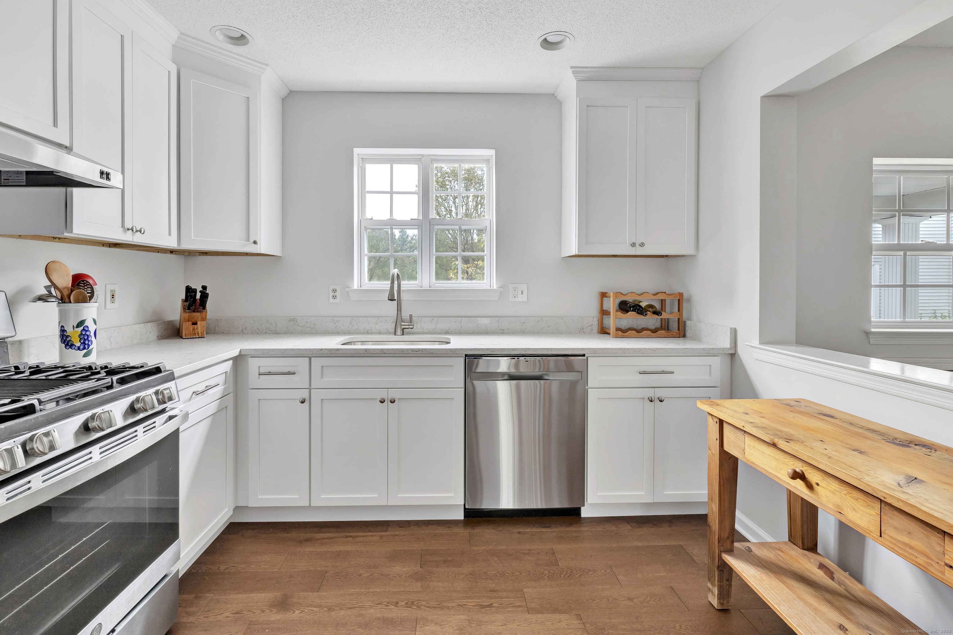 A pristine townhouse with under attached garage, beautiful new kitchen with new appliances, new hardwood flooring, freshly painted throughout, newer bathrooms, new HVAC, new lighting fixtures, etc. Deck in beautiful shape - almost completely private. AMAZING unit - MUST SEE! A lower level room that could be an office..