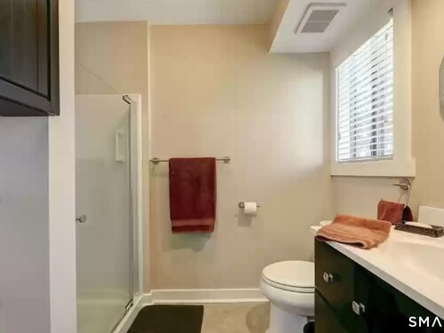 True front door parking! A rare find in Oronoque Village - no need to use stairs from the garage or haul packages uphill. Just park and walk right in. This updated Hawthorne offers main-level living with a den that was enclosed to create a true bedroom with a closet. The main floor bath is upgraded (incl a stall shower), and two custom closets were added on that level for storage. The expanded patio with exterior steps provides a private outdoor space and easy access for guests.