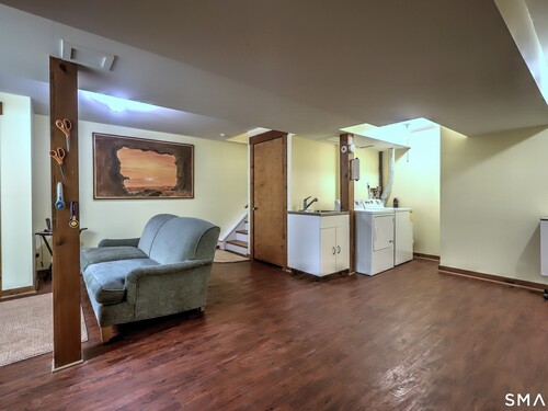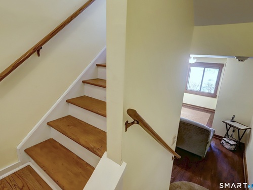True front door parking! A rare find in Oronoque Village - no need to use stairs from the garage or haul packages uphill. Just park and walk right in. This updated Hawthorne offers main-level living with a den that was enclosed to create a true bedroom with a closet. The main floor bath is upgraded (incl a stall shower), and two custom closets were added on that level for storage. Additional improvements include a dining area LED light fixture, Hunter Douglas blinds, and a room-darkening shade in the main floor bedroom, a new refrigerator, new dryer, and several raised electrical outlets for easier access. An expanded patio with exterior steps provides a private outdoor space and easy access for guests.