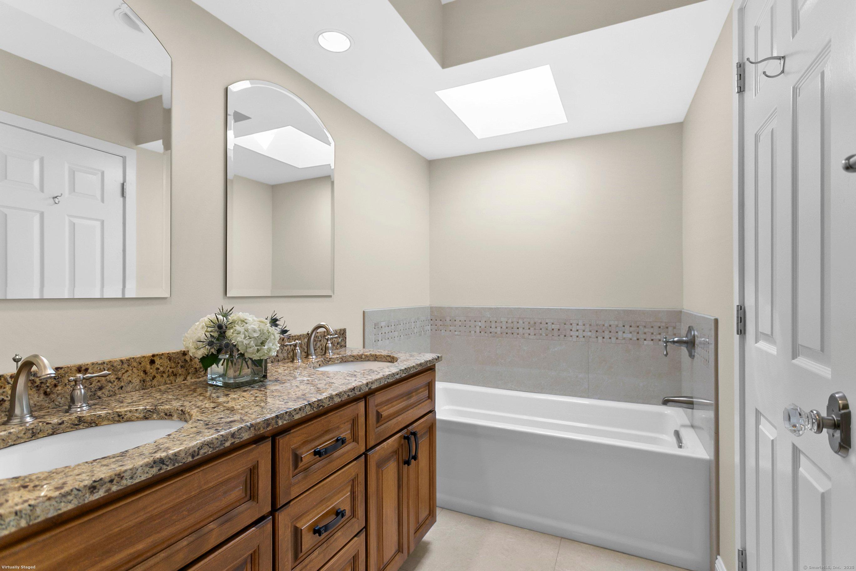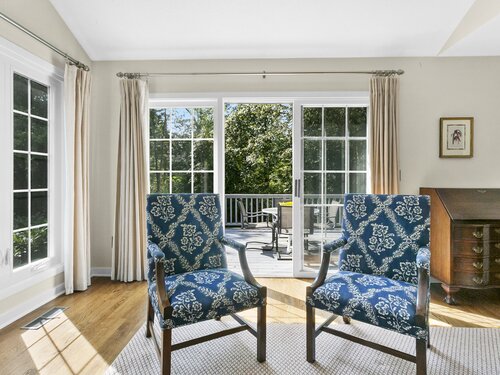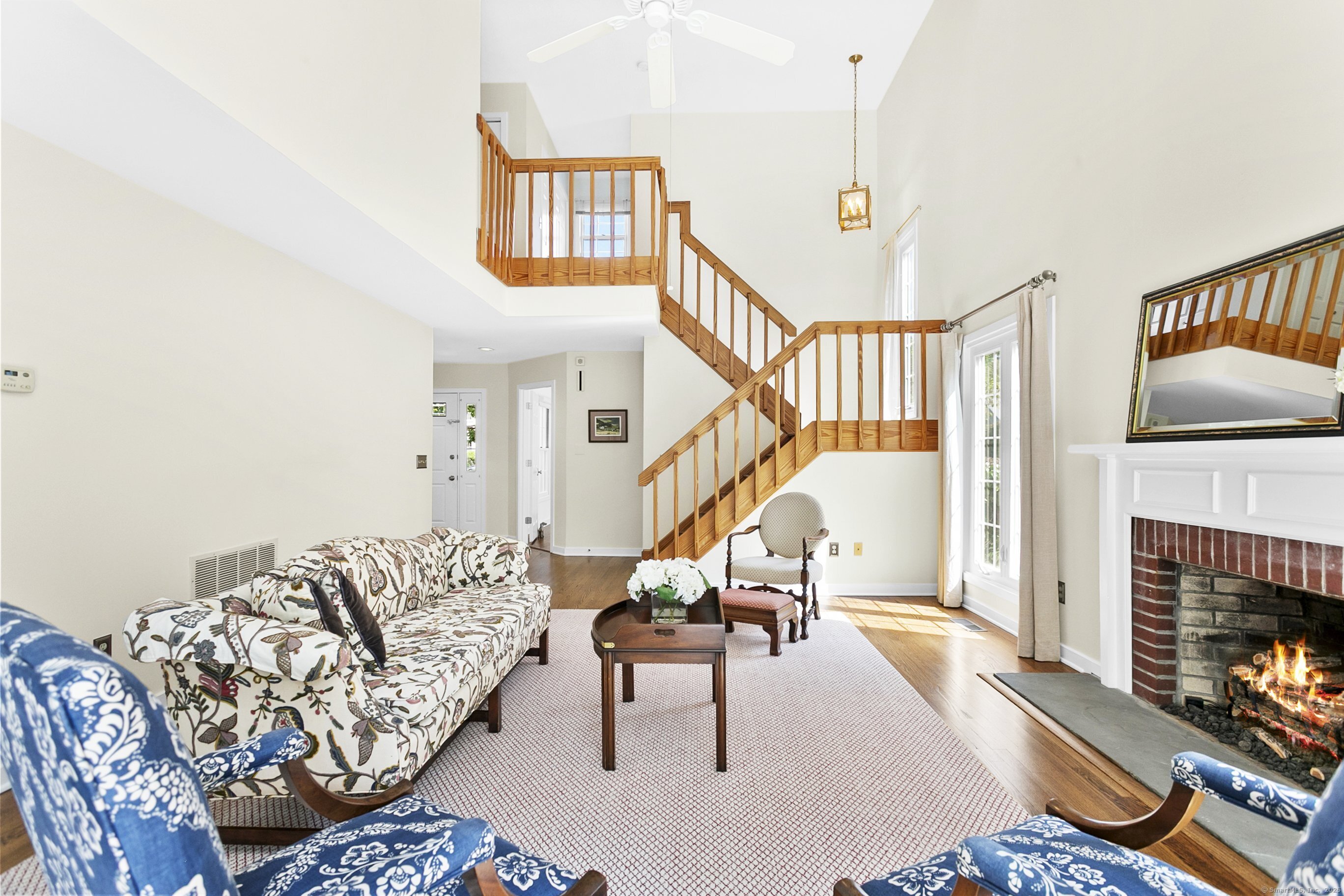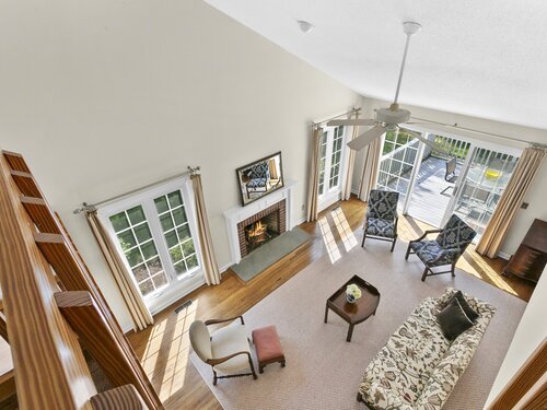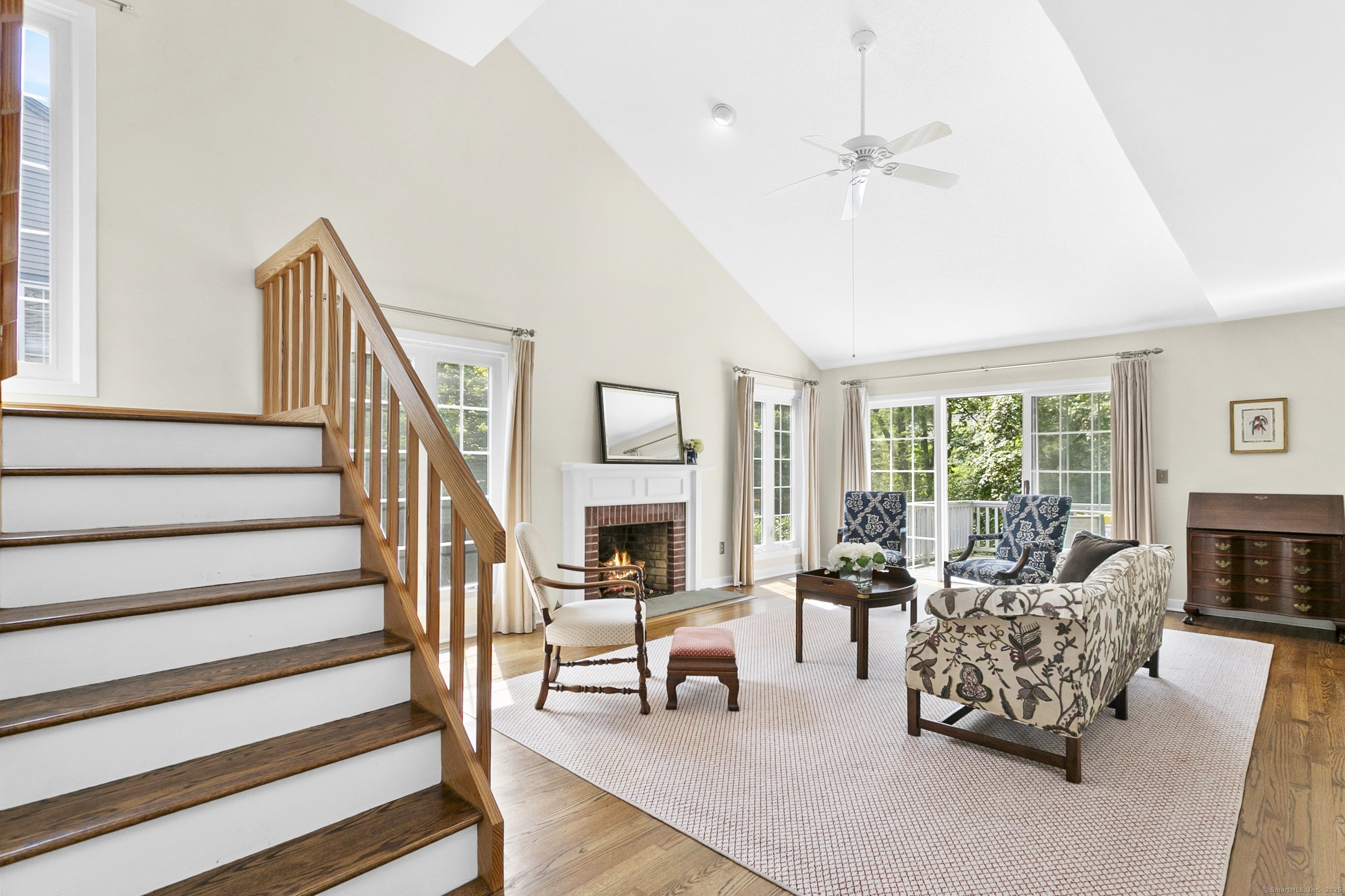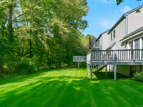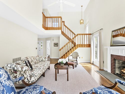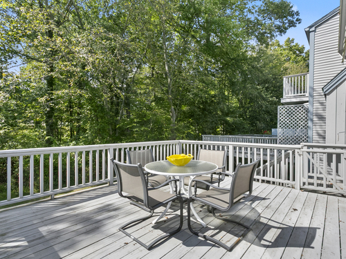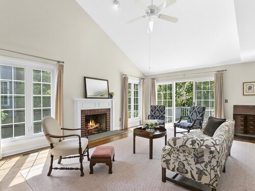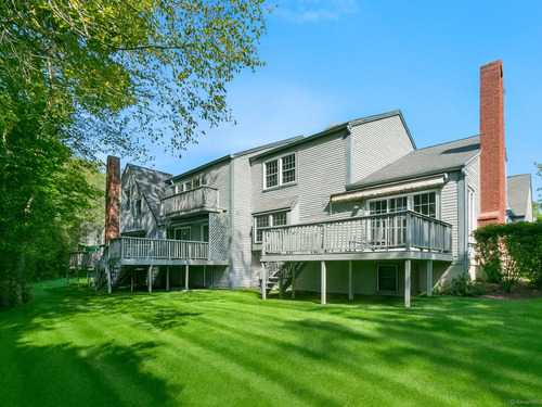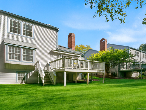 Gorgeous, remodeled end unit in sought-after Woodfield Village! 52 Gate Ridge Road offers an unbeatable location, sun-drenched rooms, hardwood floors throughout, great privacy and stylish updates. You will love the dramatic two-story family room featuring a warm gas fireplace, built-ins, oversized framed windows and sliding doors that open to a private deck-perfect for entertaining or relaxing while enjoying peaceful views of nature and local wildlife. The bright and spacious eat-in kitchen flows effortlessly into the dining room showcasing a built-in window seat, while a versatile main-level room serves as an ideal home office, den, or potential third bedroom. Upstairs, the primary en-suite is a true retreat with two walk-in closets and a luxurious spa-style bath with sky light, double vanity, soaking tub and shower stall. A second large bedroom, a fully updated hall bath, and a conveniently located laundry area complete the upper level. Additional highlights that make this town house home a standout include fully remodeled bathrooms, rare two-car attached garage and a lower level offering flexible space for storage or future expansion. Enjoy carefree living in this move-in ready home PLUS access to amazing community amenities including a heated pool, walking trails and tennis courts. Close to town, train, schools, parks and shopping. This home will exceed your expectations, a beautiful home and lifestyle await.