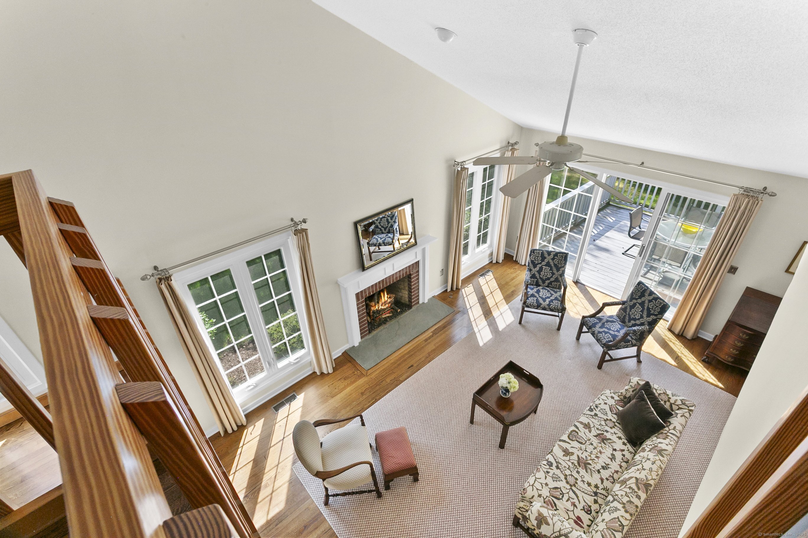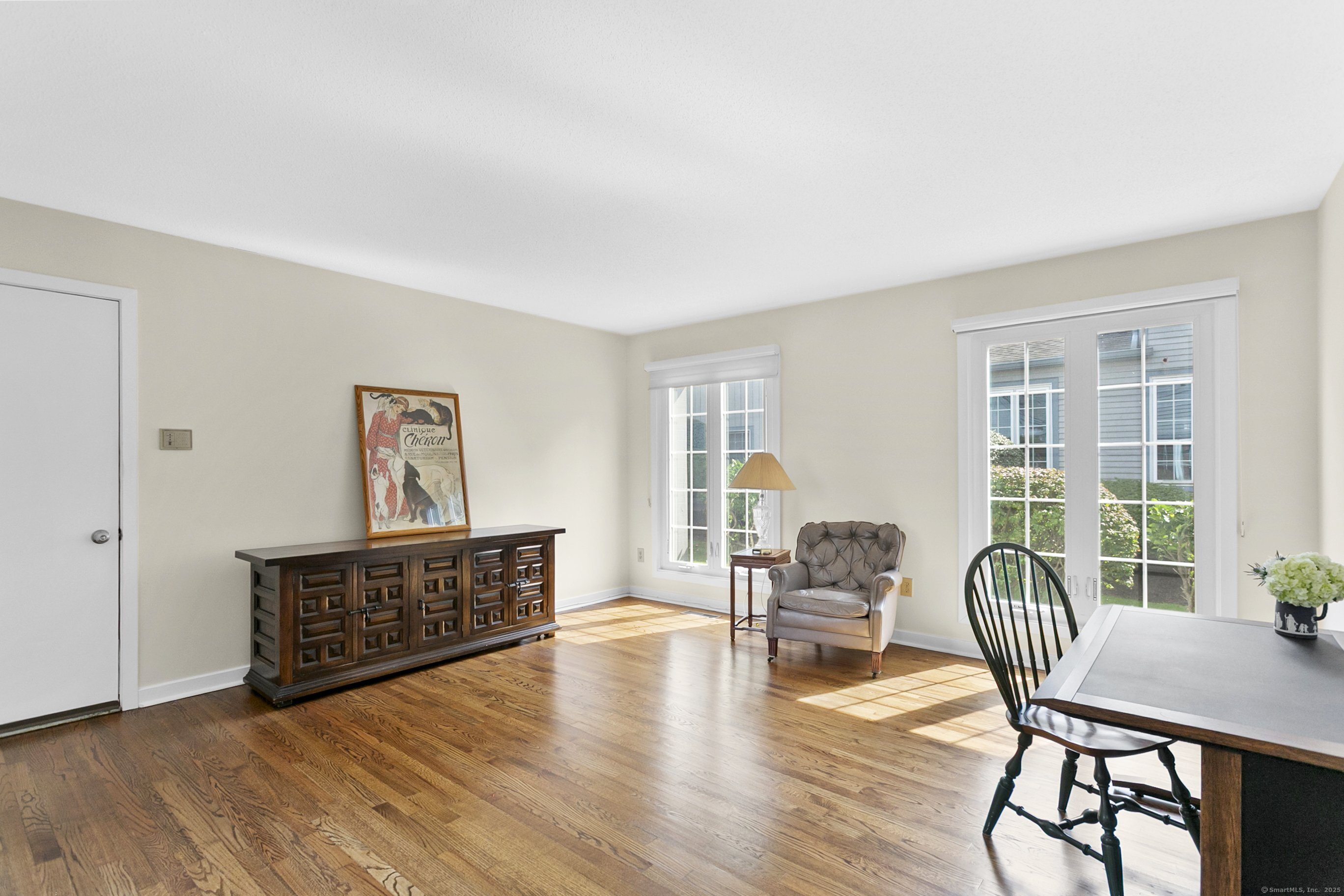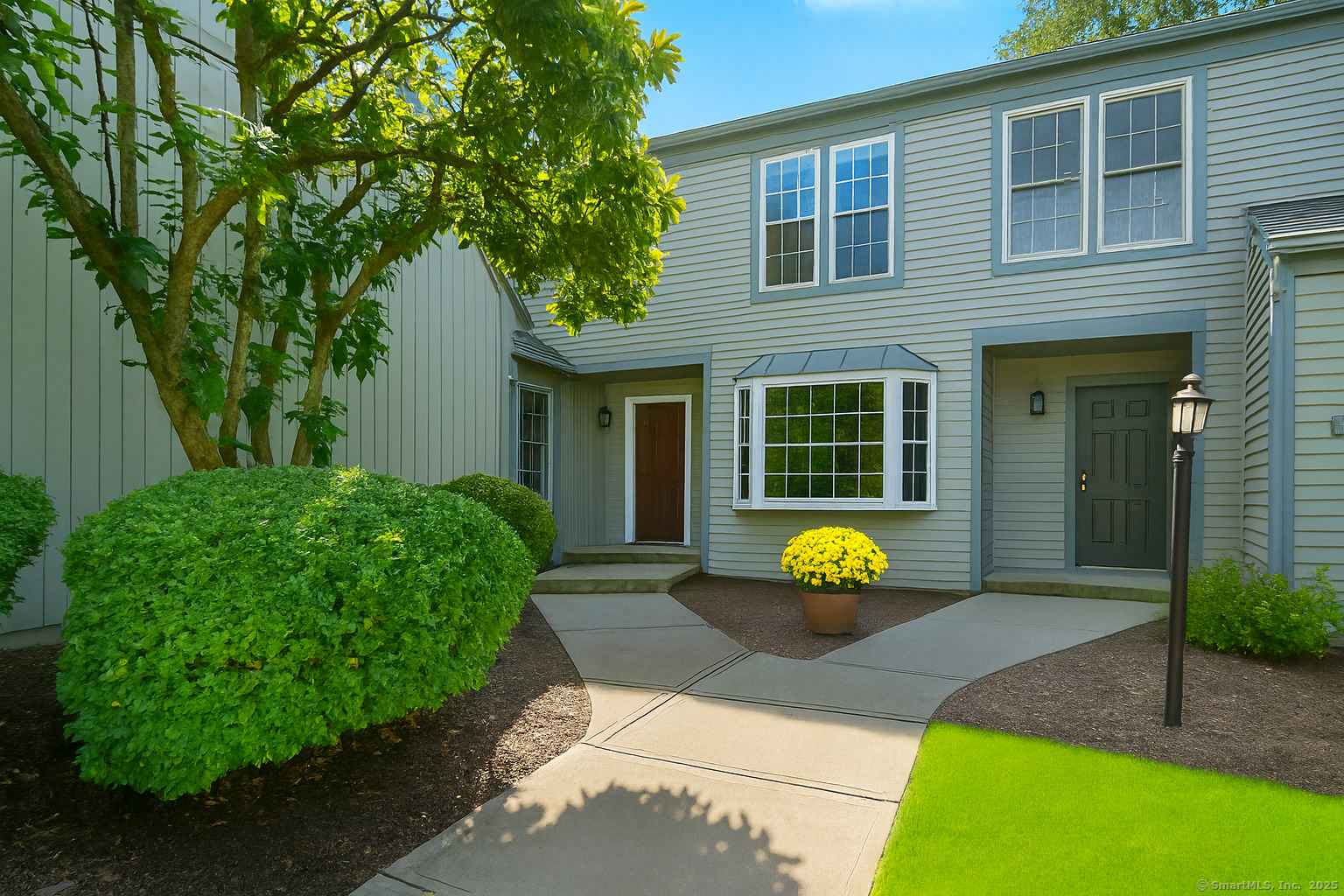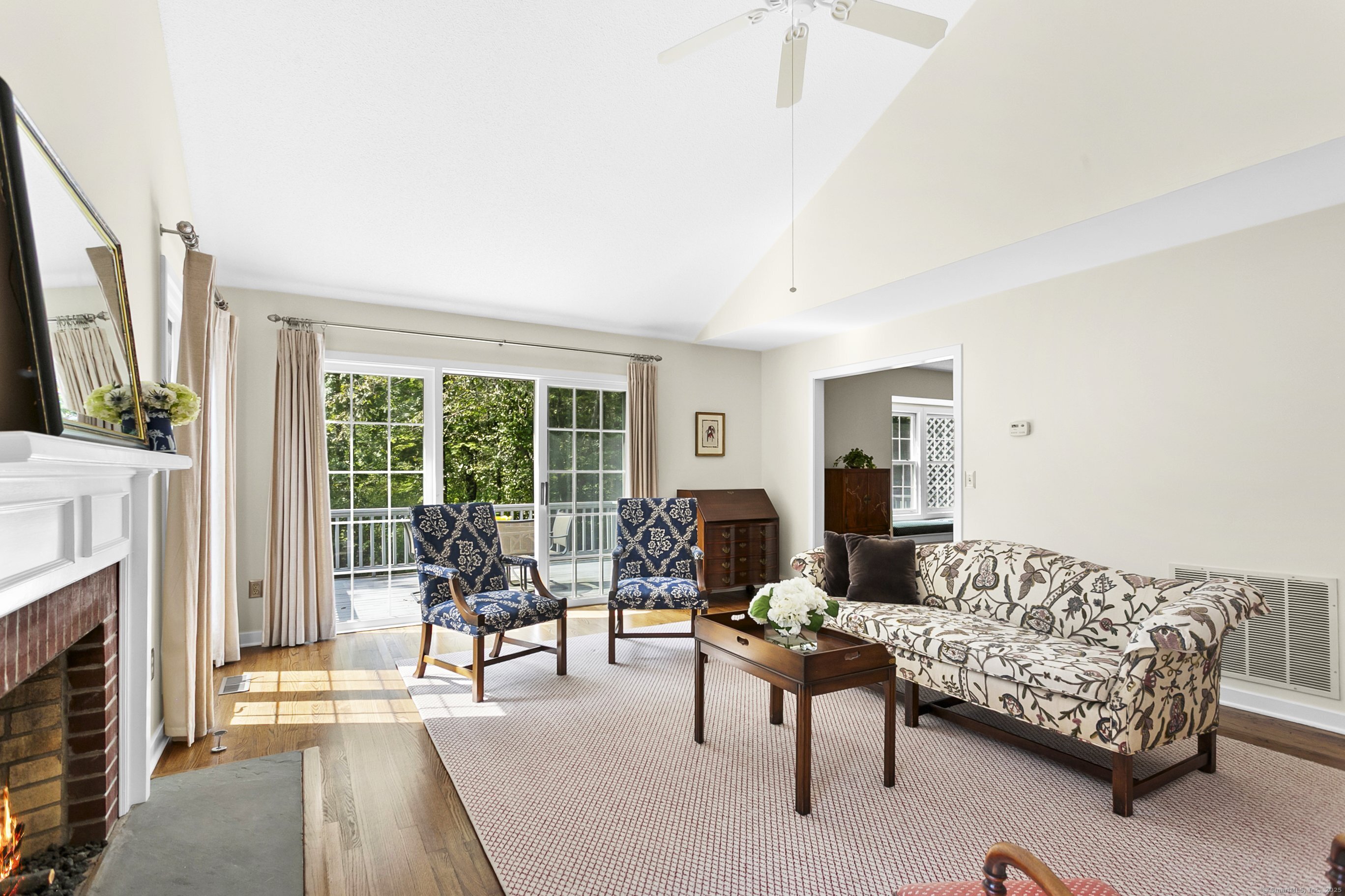 Gorgeous, remodeled end unit in sought-after Woodfield Village! 52 Gate Ridge Road offers an unbeatable location, sun-drenched rooms, hardwood floors throughout, great privacy and stylish updates. You will love the dramatic two-story family room featuring a warm gas fireplace, built-ins, oversized framed windows and sliding doors that open to a private deck-perfect for entertaining or relaxing while enjoying peaceful views of nature and local wildlife. The bright and spacious eat-in kitchen flows effortlessly into the dining room showcasing a built-in window seat, while a versatile main-level room serves as an ideal home office, den, or potential third bedroom. Upstairs, the primary en-suite is a true retreat with two walk-in closets and a luxurious spa-style bath with sky light, double vanity, soaking tub and shower stall. A second large bedroom, a fully updated hall bath, and a conveniently located laundry area complete the upper level. Additional highlights that make this town house home a standout include fully remodeled bathrooms, rare two-car attached garage and a lower level offering flexible space for storage or future expansion. Enjoy carefree living in this move-in ready home PLUS access to amazing community amenities including a heated pool, walking trails and tennis courts. Close to town, train, schools, parks and shopping. This home will exceed your expectations, a beautiful home and lifestyle await.