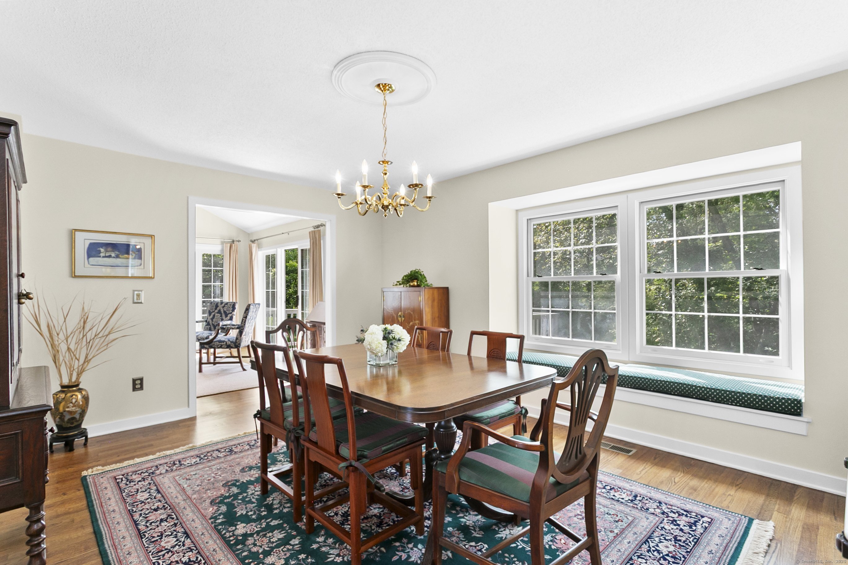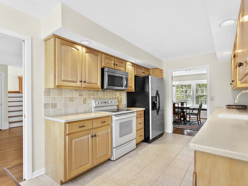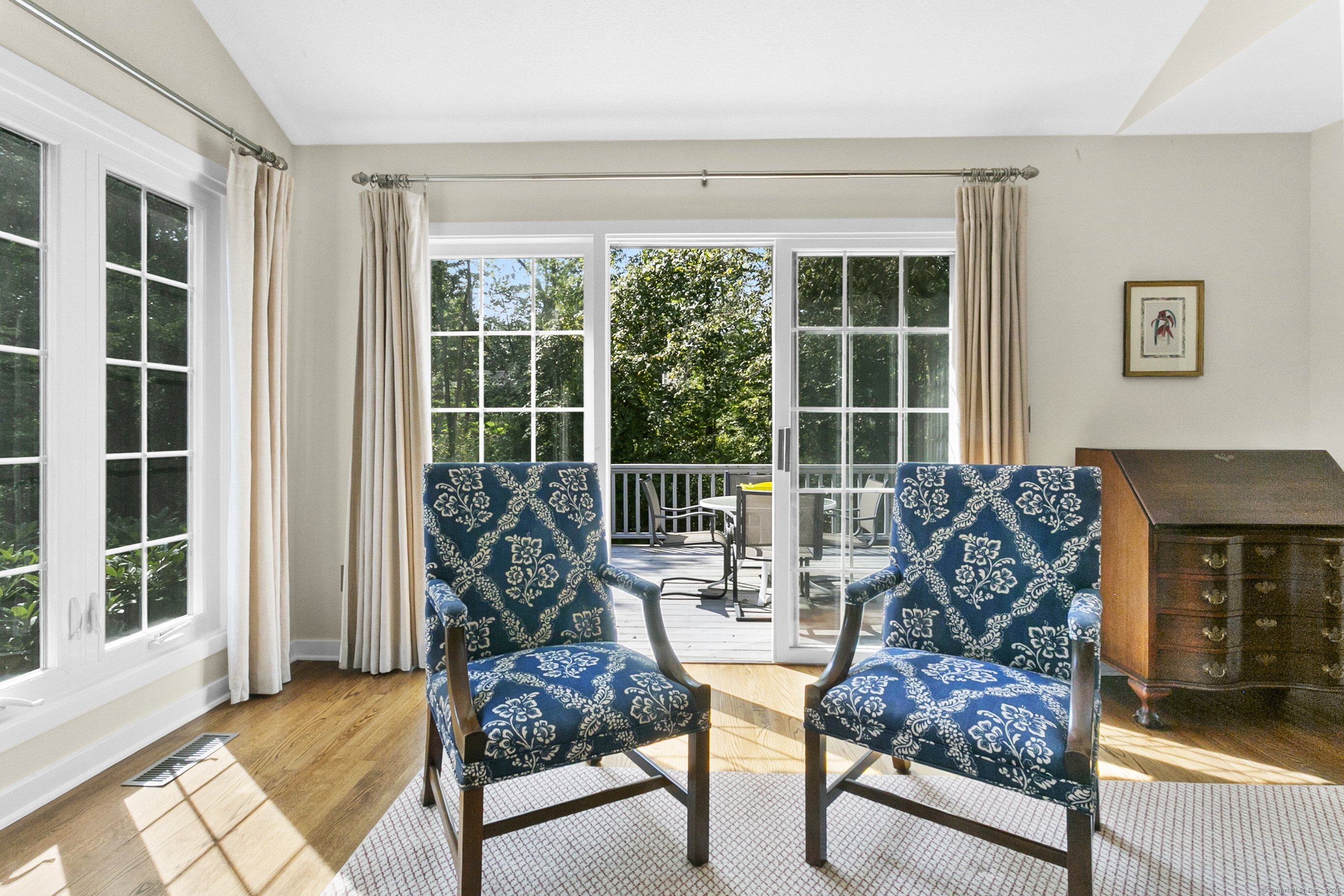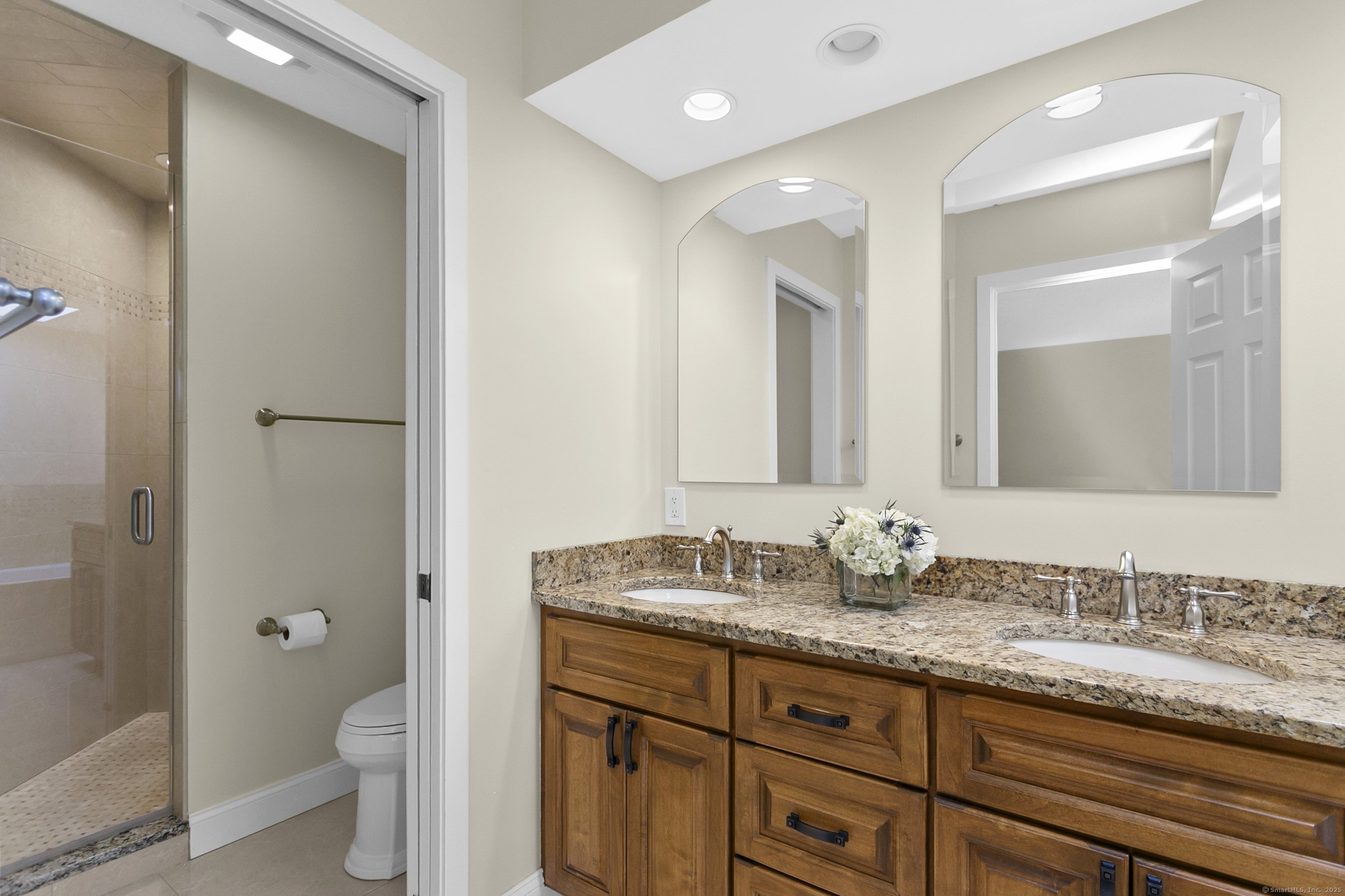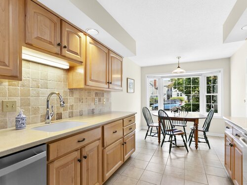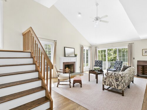 Gorgeous, remodeled end unit in sought-after Woodfield Village! 52 Gate Ridge Road offers an unbeatable location, sun-drenched rooms, hardwood floors throughout, great privacy and stylish updates. You will love the dramatic two-story family room featuring a warm gas fireplace, built-ins, oversized framed windows and sliding doors that open to a private deck-perfect for entertaining or relaxing while enjoying peaceful views of nature and local wildlife. The bright and spacious eat-in kitchen flows effortlessly into the dining room showcasing a built-in window seat, while a versatile main-level room serves as an ideal home office, den, or potential third bedroom. Upstairs, the primary en-suite is a true retreat with two walk-in closets and a luxurious spa-style bath with sky light, double vanity, soaking tub and shower stall. A second large bedroom, a fully updated hall bath, and a conveniently located laundry area complete the upper level. Additional highlights that make this town house home a standout include fully remodeled bathrooms, rare two-car attached garage and a lower level offering flexible space for storage or future expansion. Enjoy carefree living in this move-in ready home PLUS access to amazing community amenities including a heated pool, walking trails and tennis courts. Close to town, train, schools, parks and shopping. This home will exceed your expectations, a beautiful home and lifestyle await.